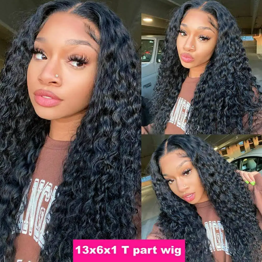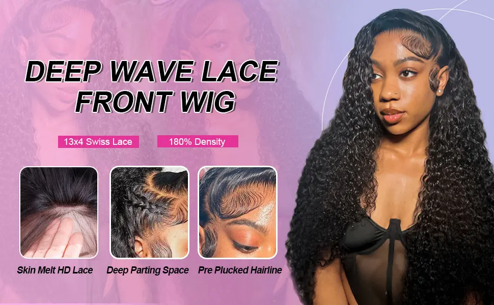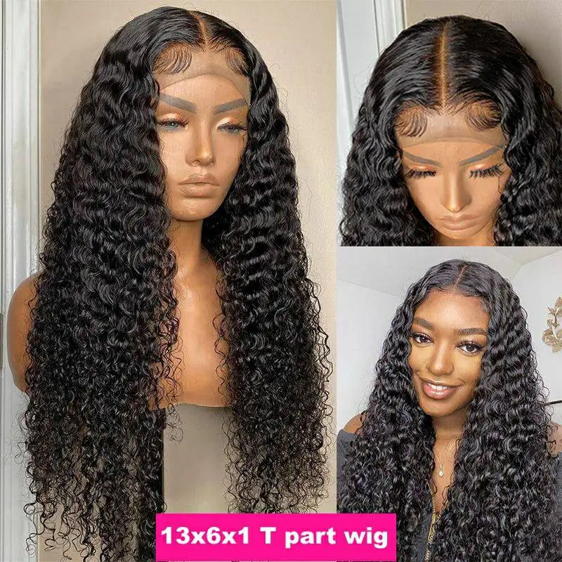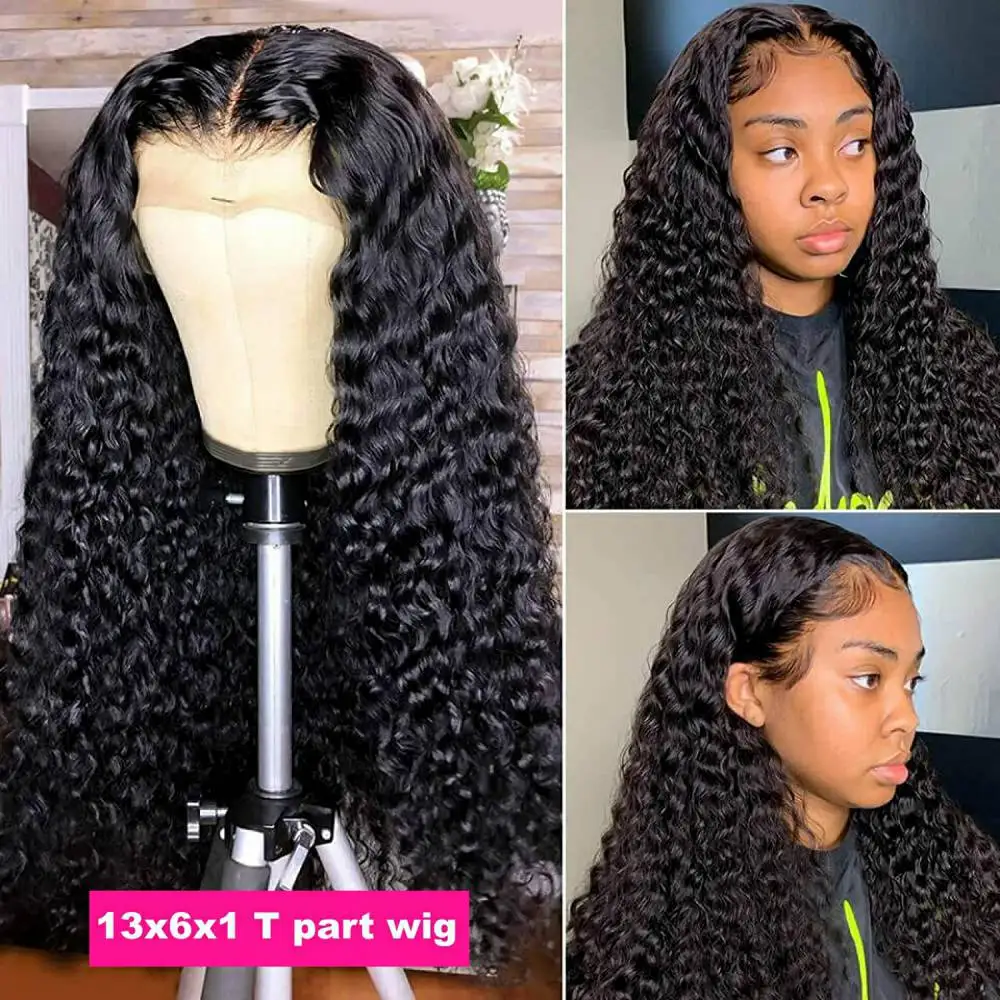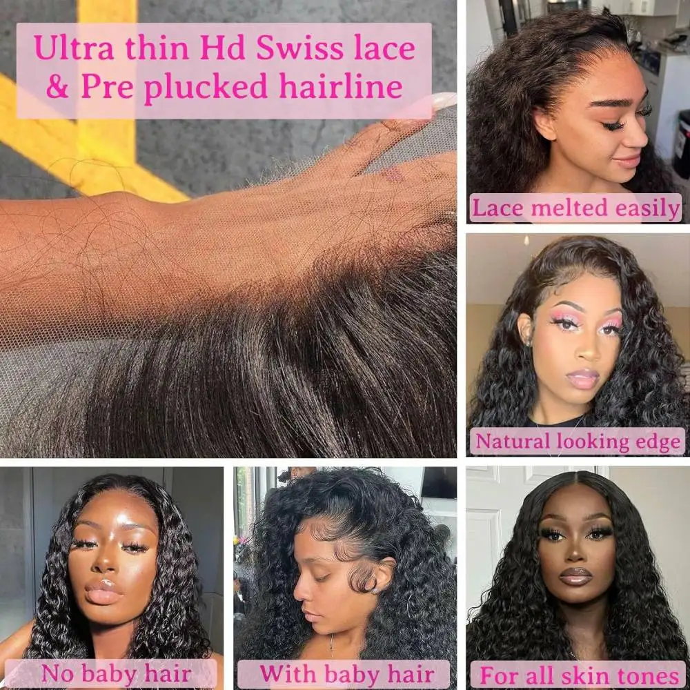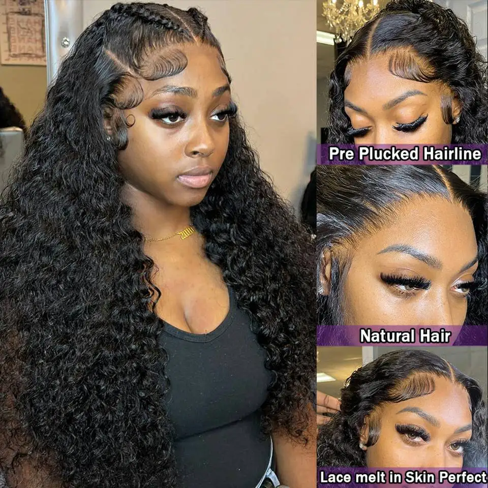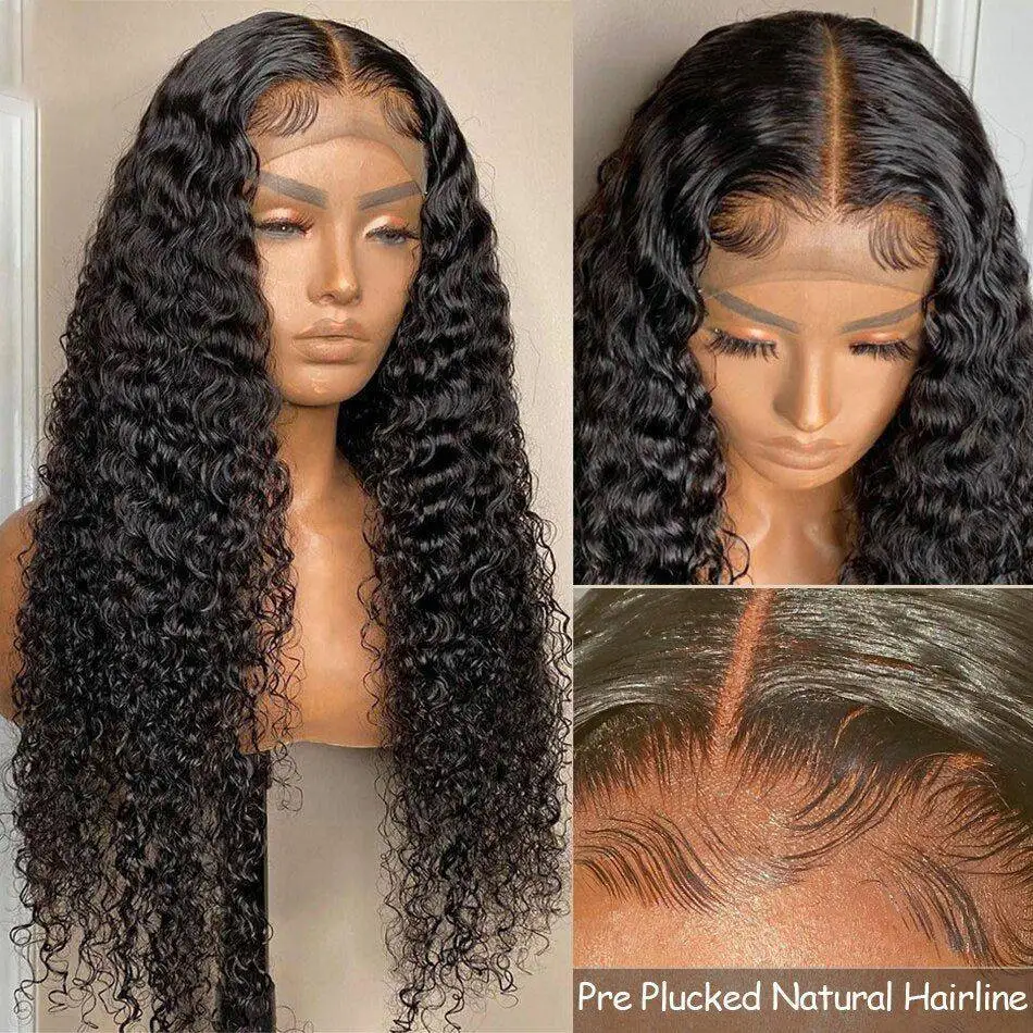 Deep Wave Lace Front Wig Human Hair Pre Plucked Transparent Deep Curly Lace Frontal Human Hair Wig For Women Natural Hairline