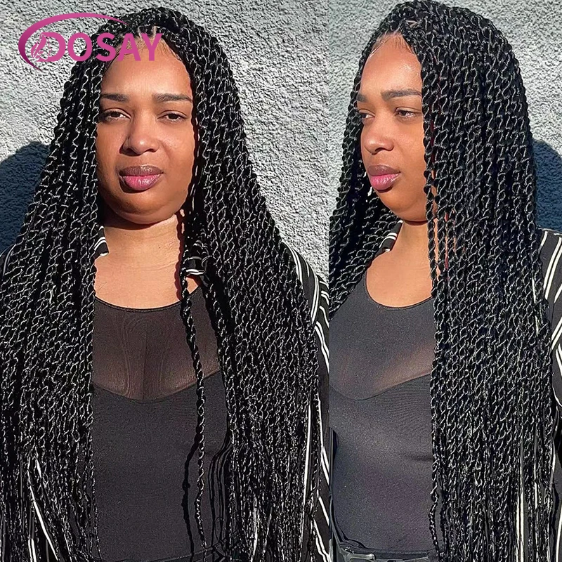 Dosay 26" Synthetic Lace Front Wig Twist Braids Full Lace African Hair Braided Wigs On Sale Twisted Braid Goddess Twist Wig