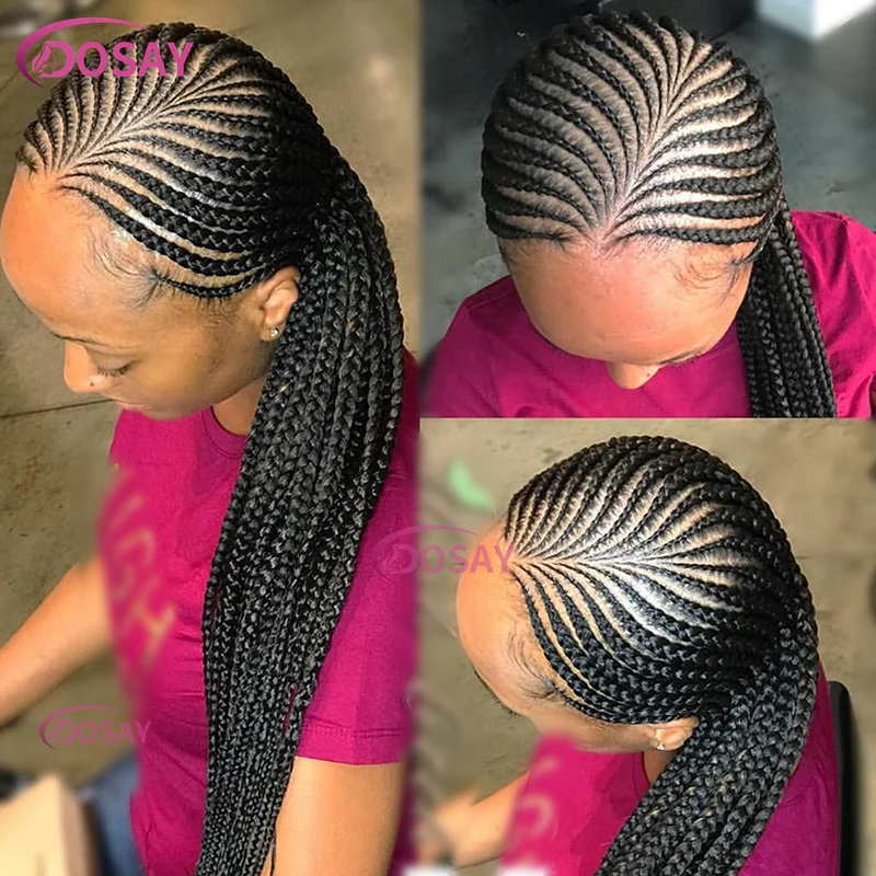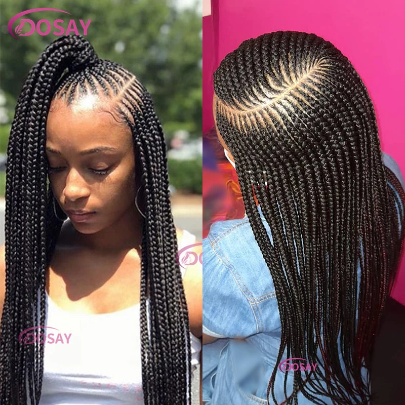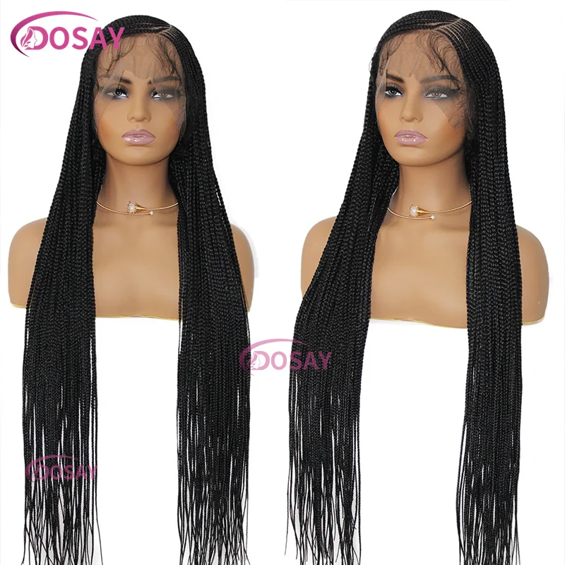 Dosay Synthetic 360 Full Lace Goddess Knotless Braided Wig 36 Inch Pre-plucked Baby Hair Afro Side Part Braid Lace Frontal Wigs