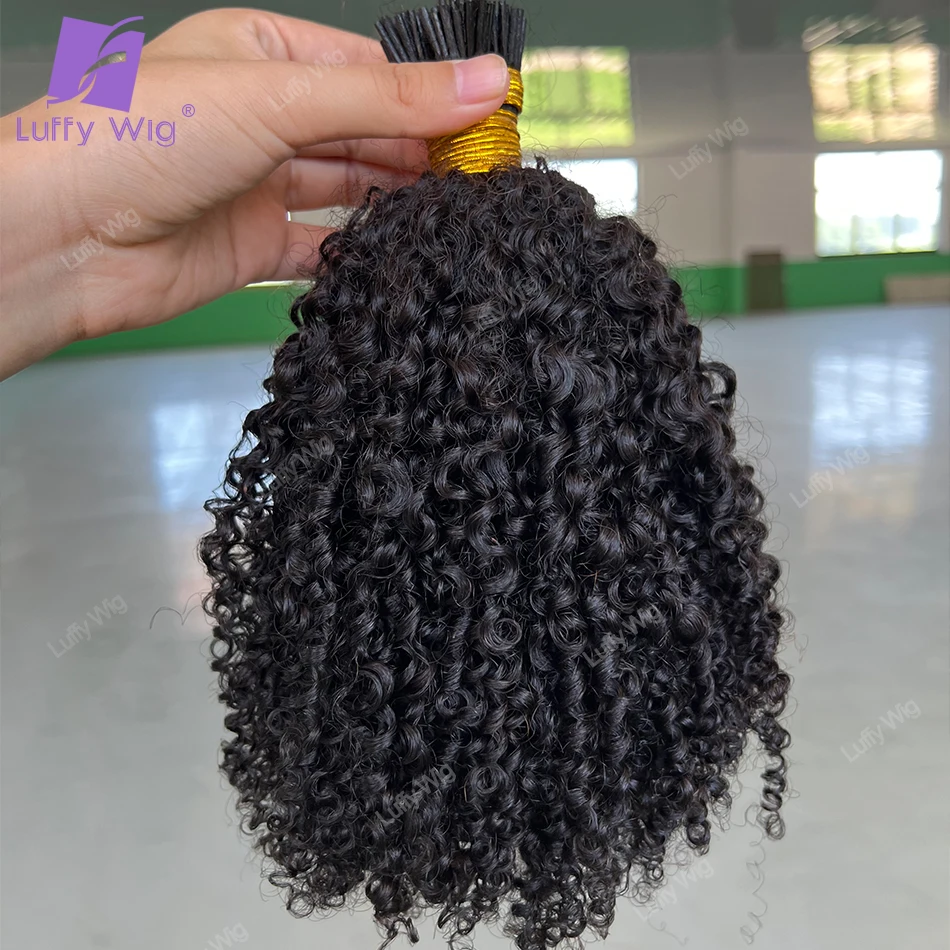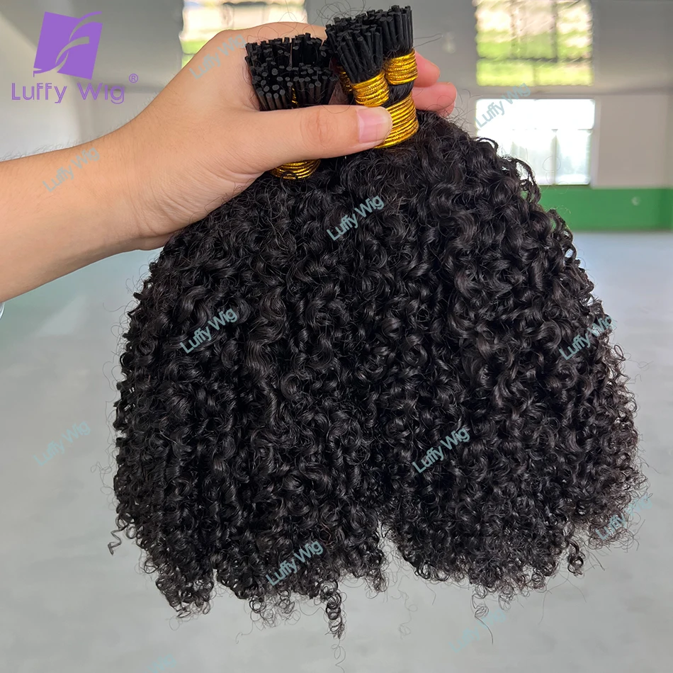 Double Drawn I Tip Hair Extensions Real Itip Human Hair Raw Remy Mongolian 3c 4a Afro Kinky Curly Fusion Hair Bundles Luffy