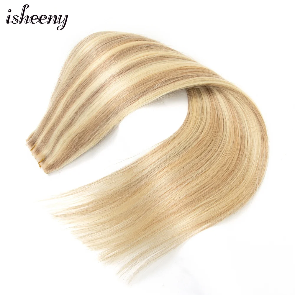 Double Inject XO Hole Weft Human Hair Extensions 16"-24" Invisible Twin Tab Weft Hair Natural Straight Pull Through Micro Hair