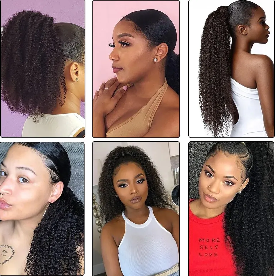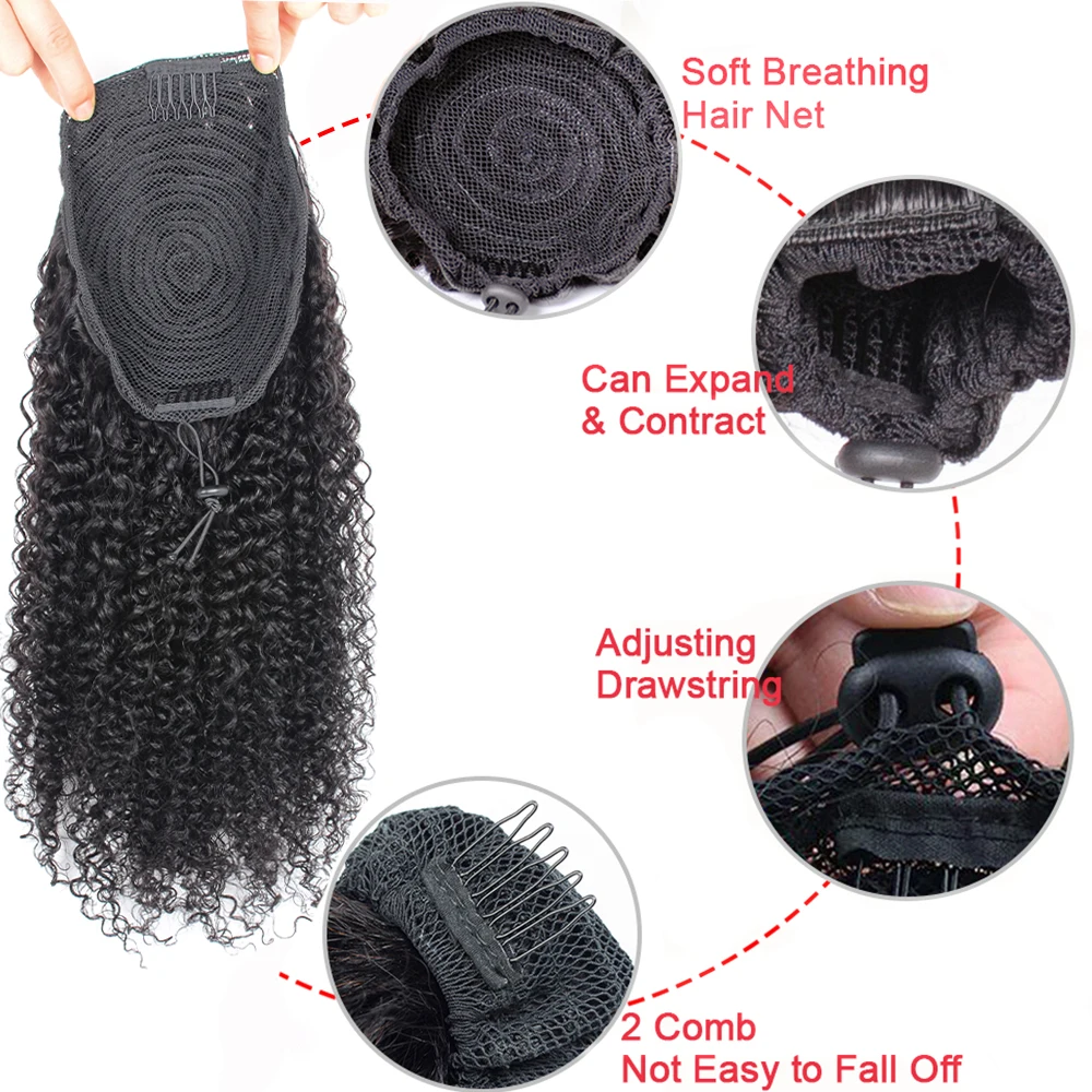 Drawstring Kinky Curly Ponytail With Brazilian Clips Human Hair Remy Indian Hair Extensions Pony Tail For Black Women
