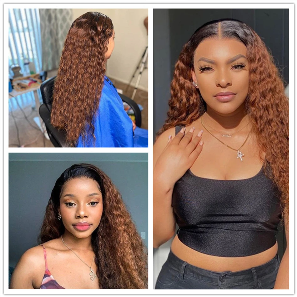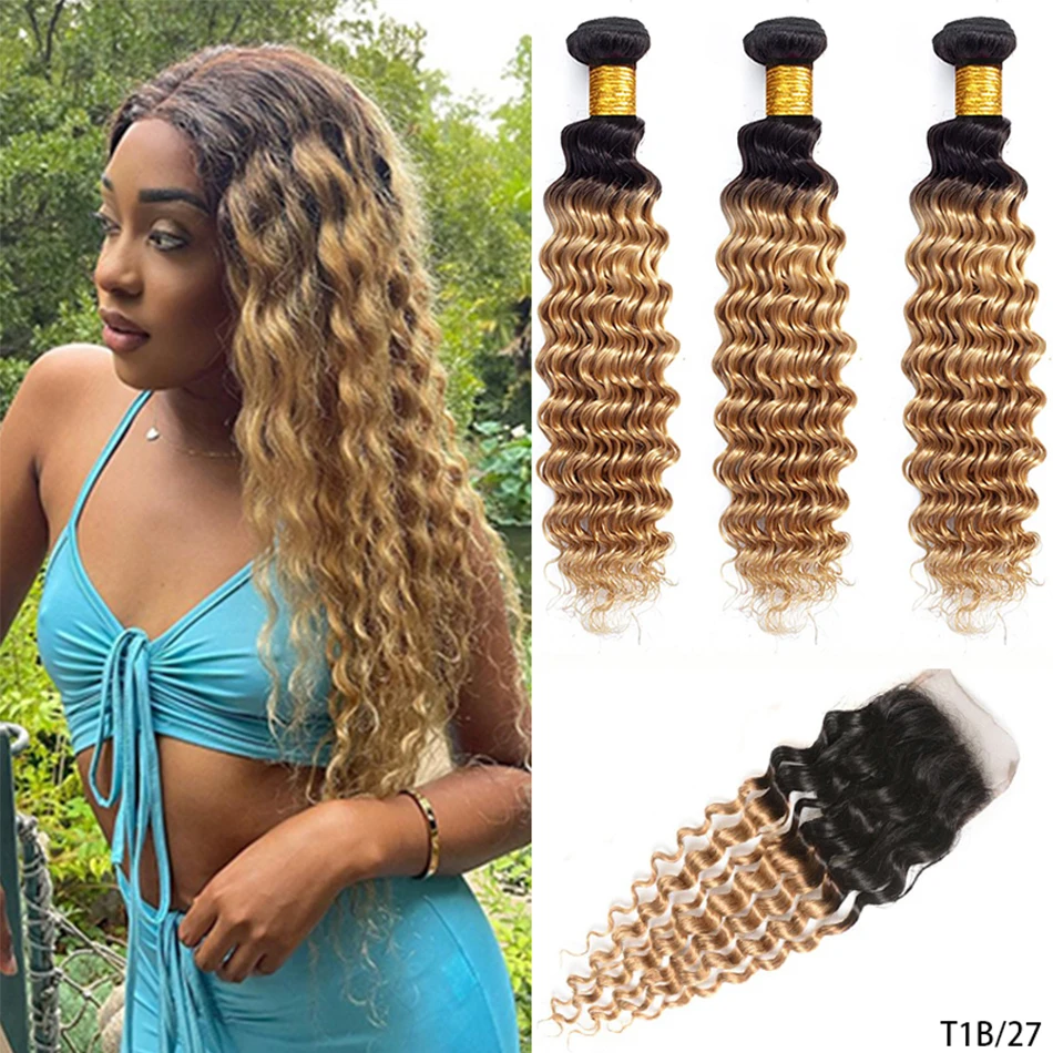 DreamDiana 10A Brazilian Virgin Hair Deep Wave 3 Bundles with Closure 100% Ombre 1B Brown Human Hair Bundles With Lace Closure