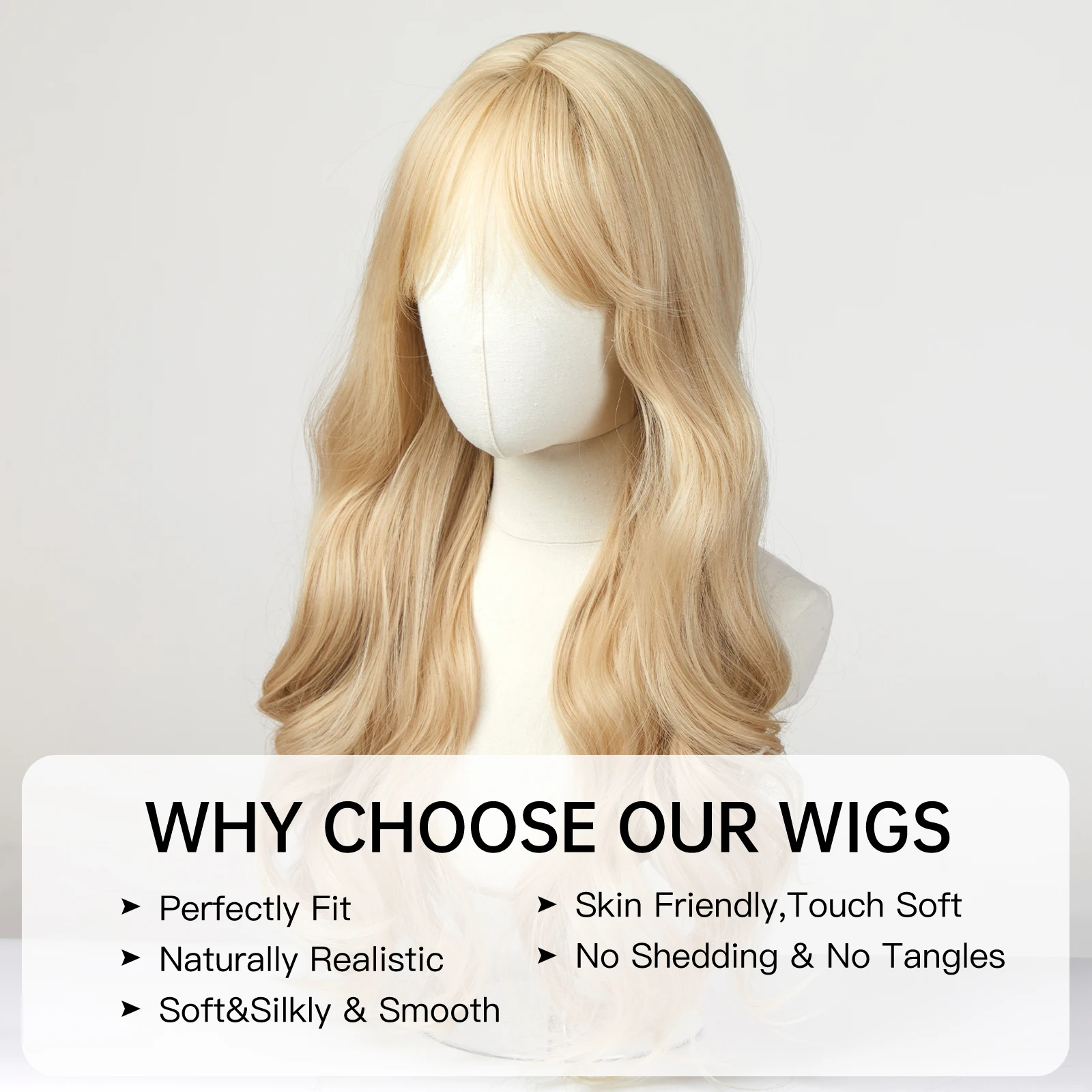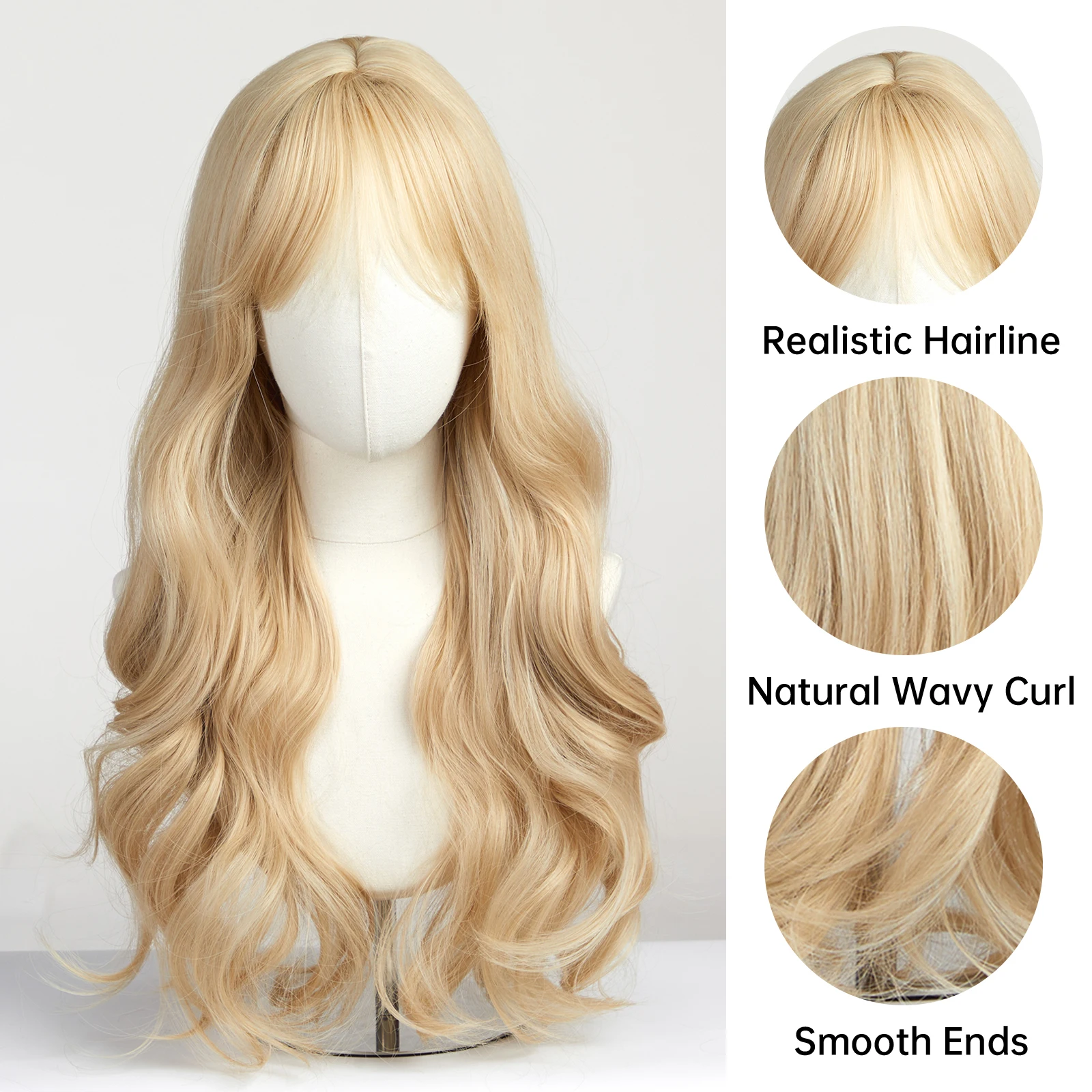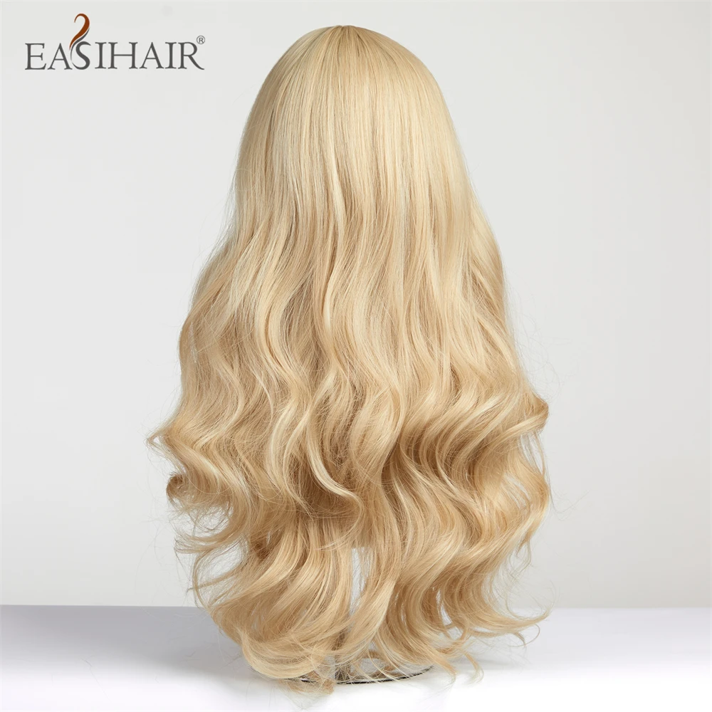 EASIHAIR Sandy Blonde Golden Wavy Synthetic Wigs with Long Bangs Cosplay Lolita Party Hair Wigs for Women Natural Heat Resistant