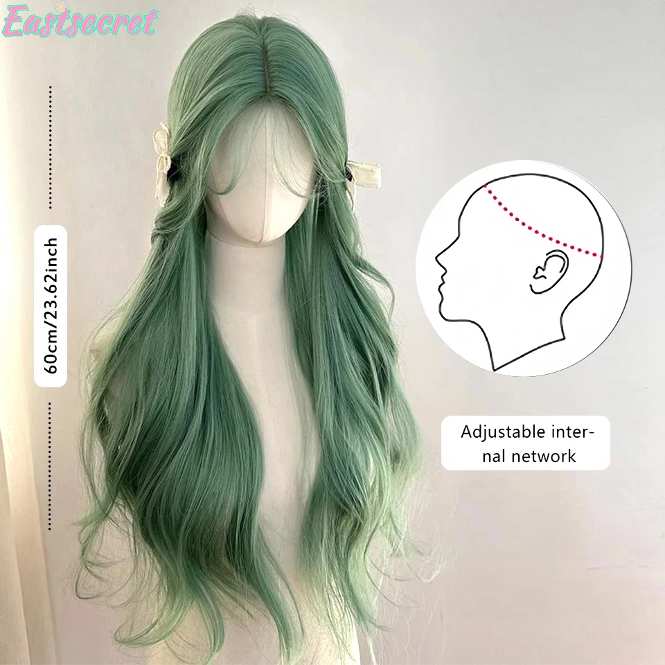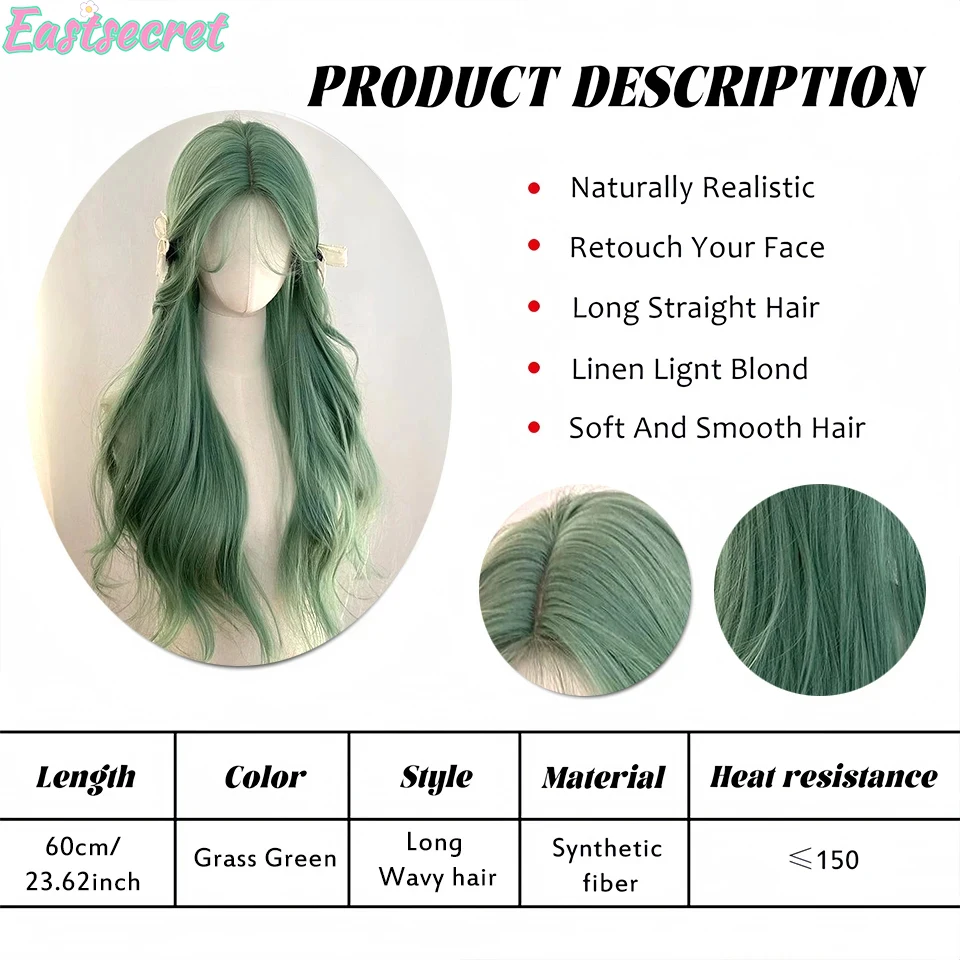 EASTSECRETLong Grass Green Wavy Synthetic Wigs with Bangs for Women Body Wave Wigs Cosplay Daily Natural Use Hair Heat Resistant