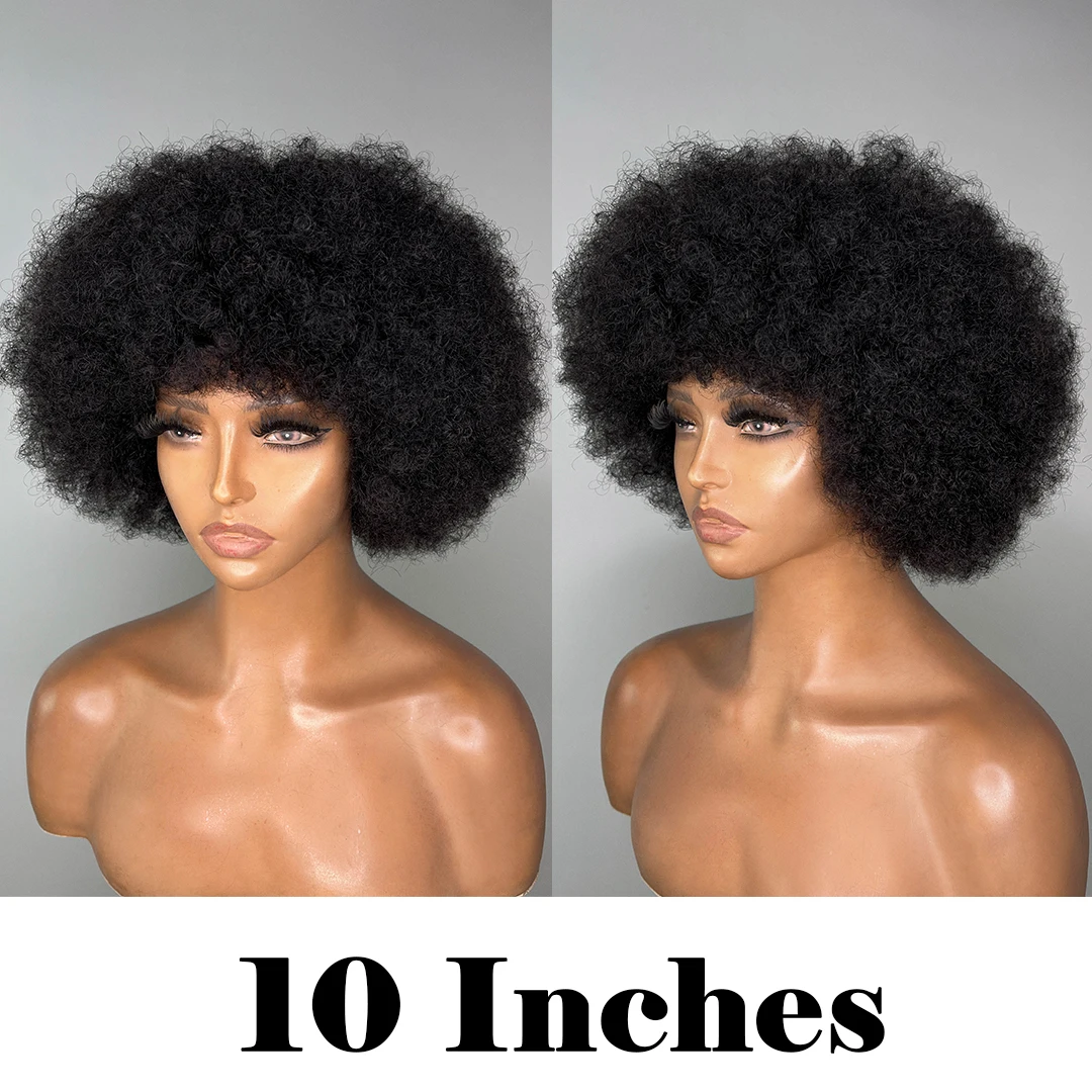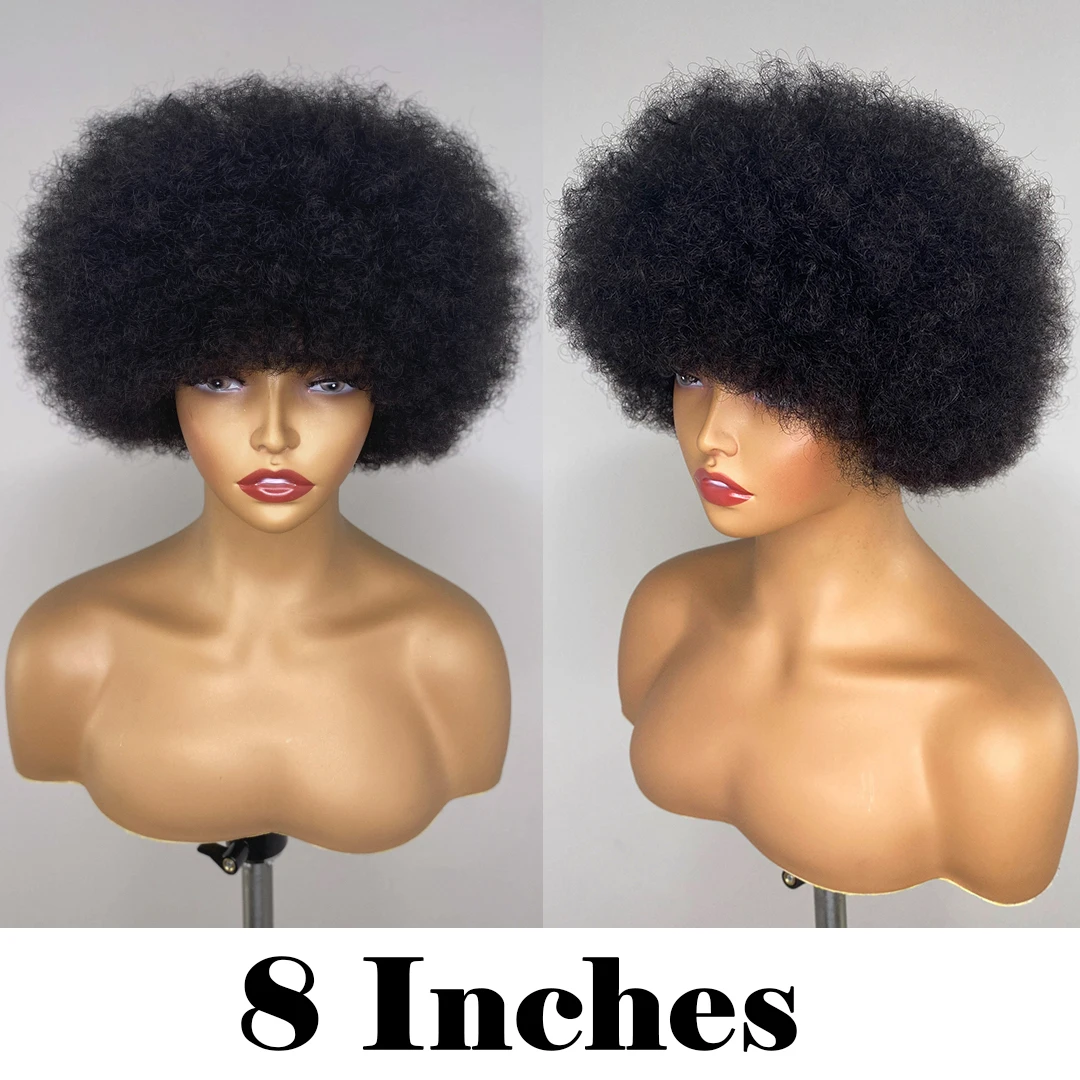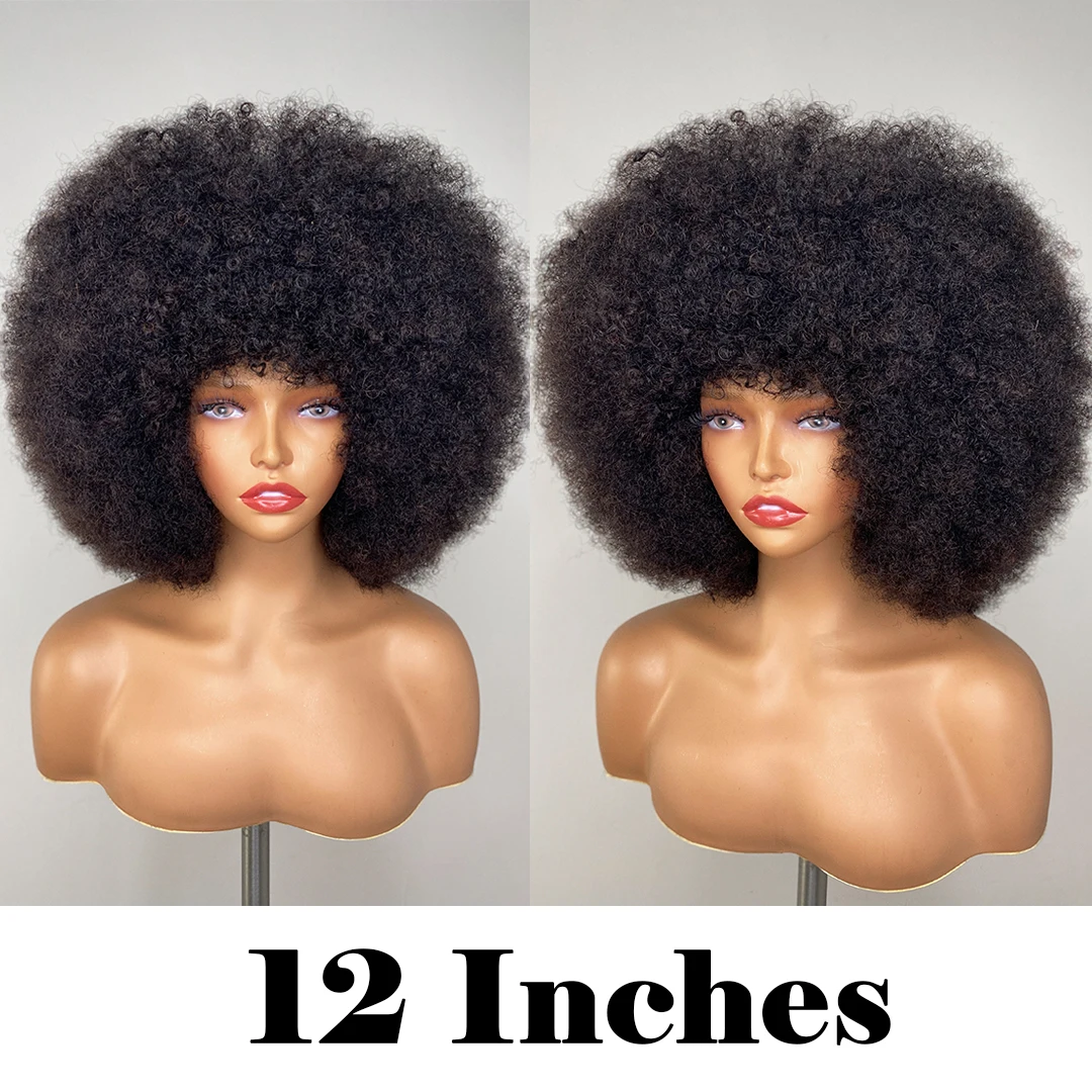 Fluffy Afro Kinky Curly Human Hair Wig With Thick Bangs Natural Short Bob Wigs For Black Women 180% Density Full Machine Hair