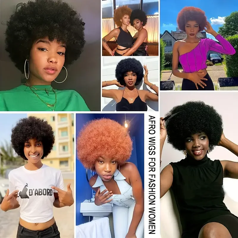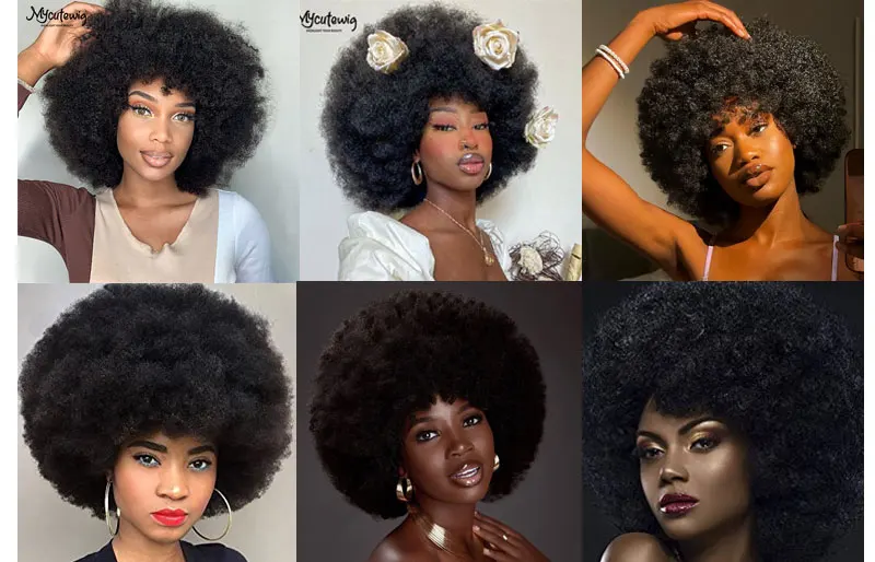 European Flag Fluffy Afro Kinky Curly Human Hair Wig With Thick Bang Natural Wigs For Black Women 180% Density Full Machine Hair