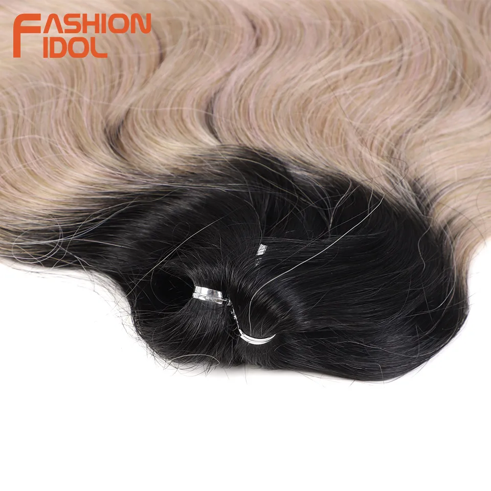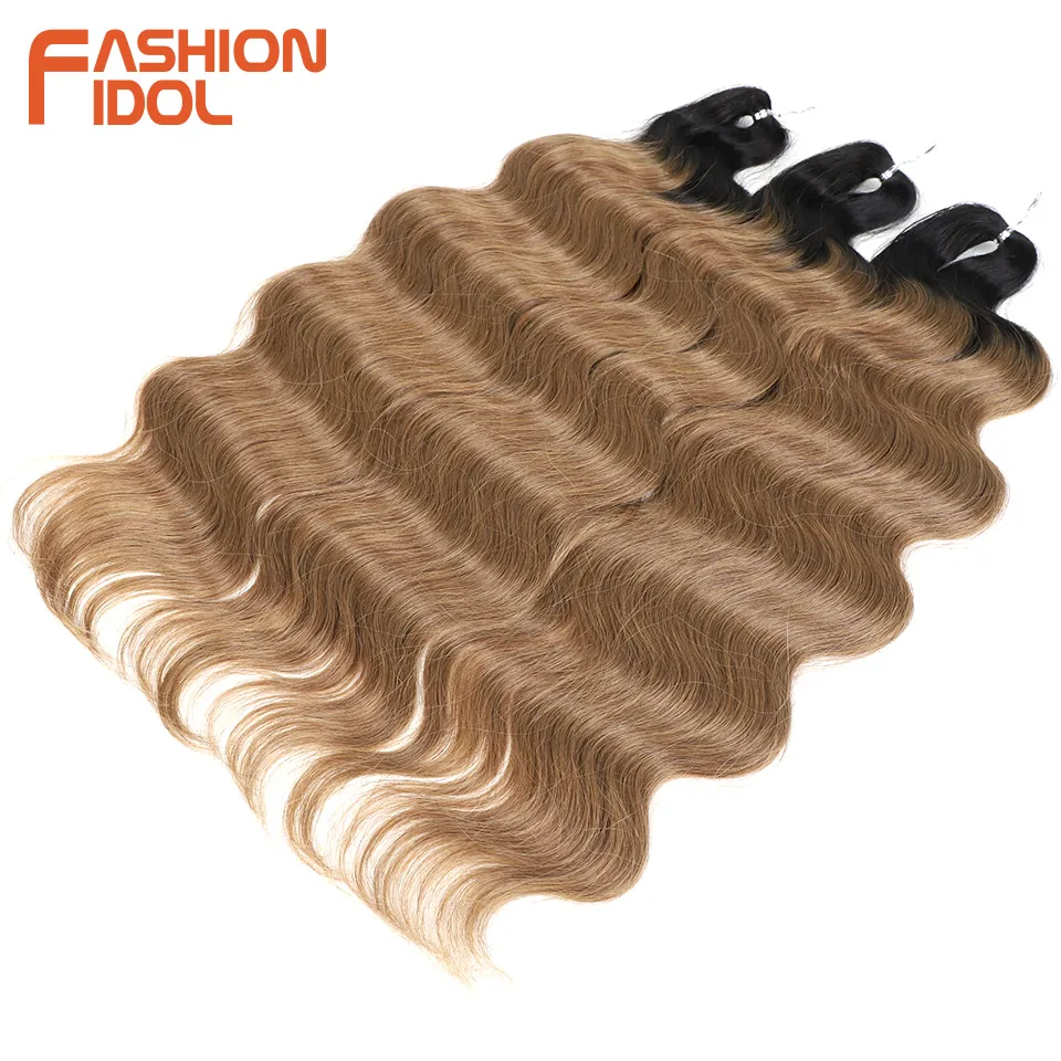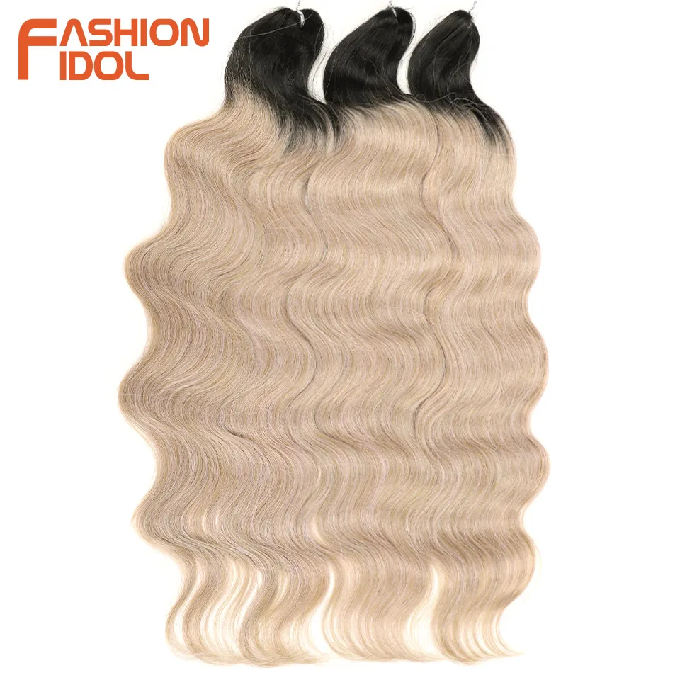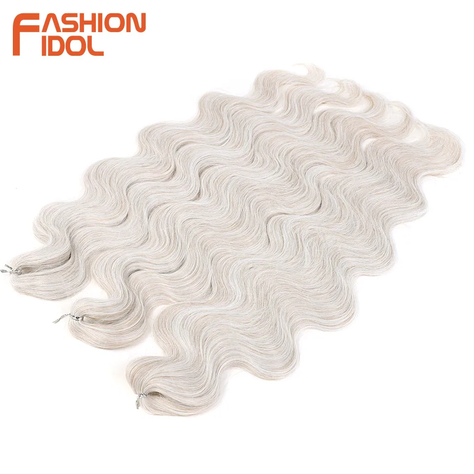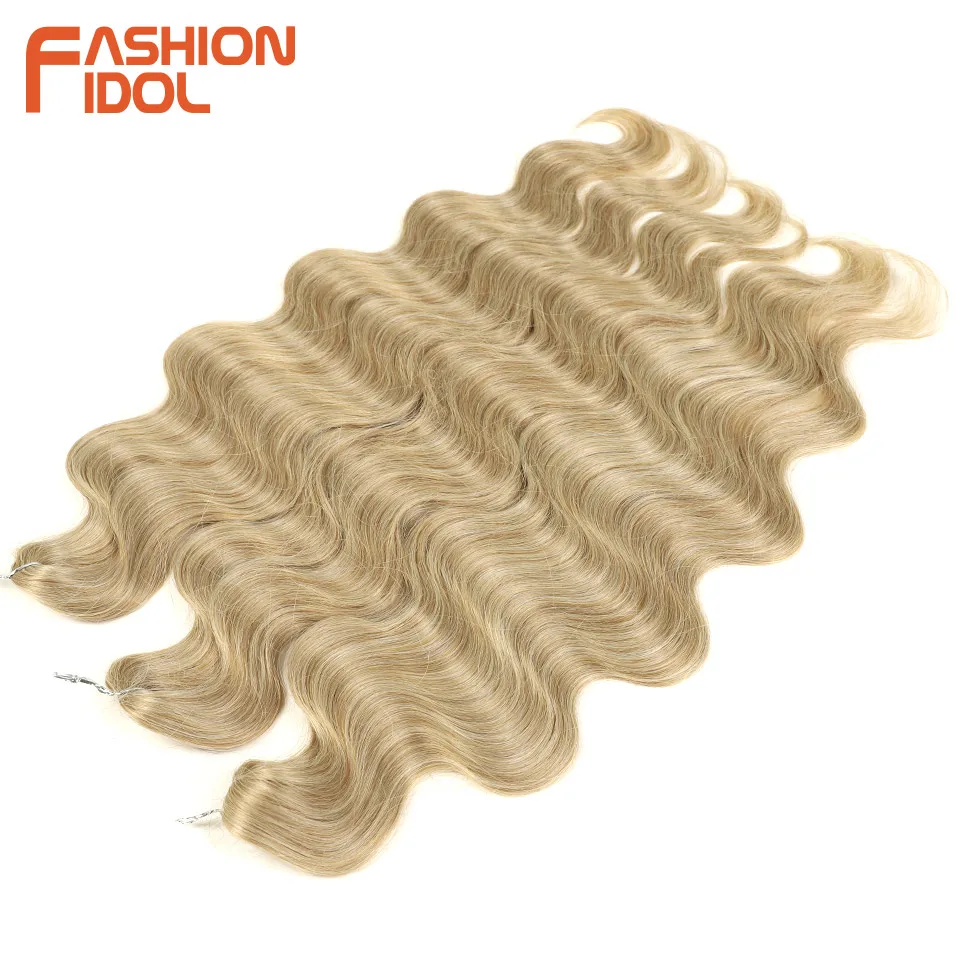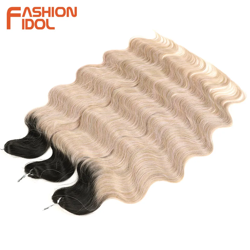 FASHION IDOL Body Wave Crochet Hair 24 Inch Soft Long Synthetic Hair Braids Ponytail Extensions Ombre Blue Green Hair Extensions
