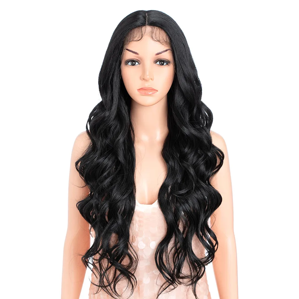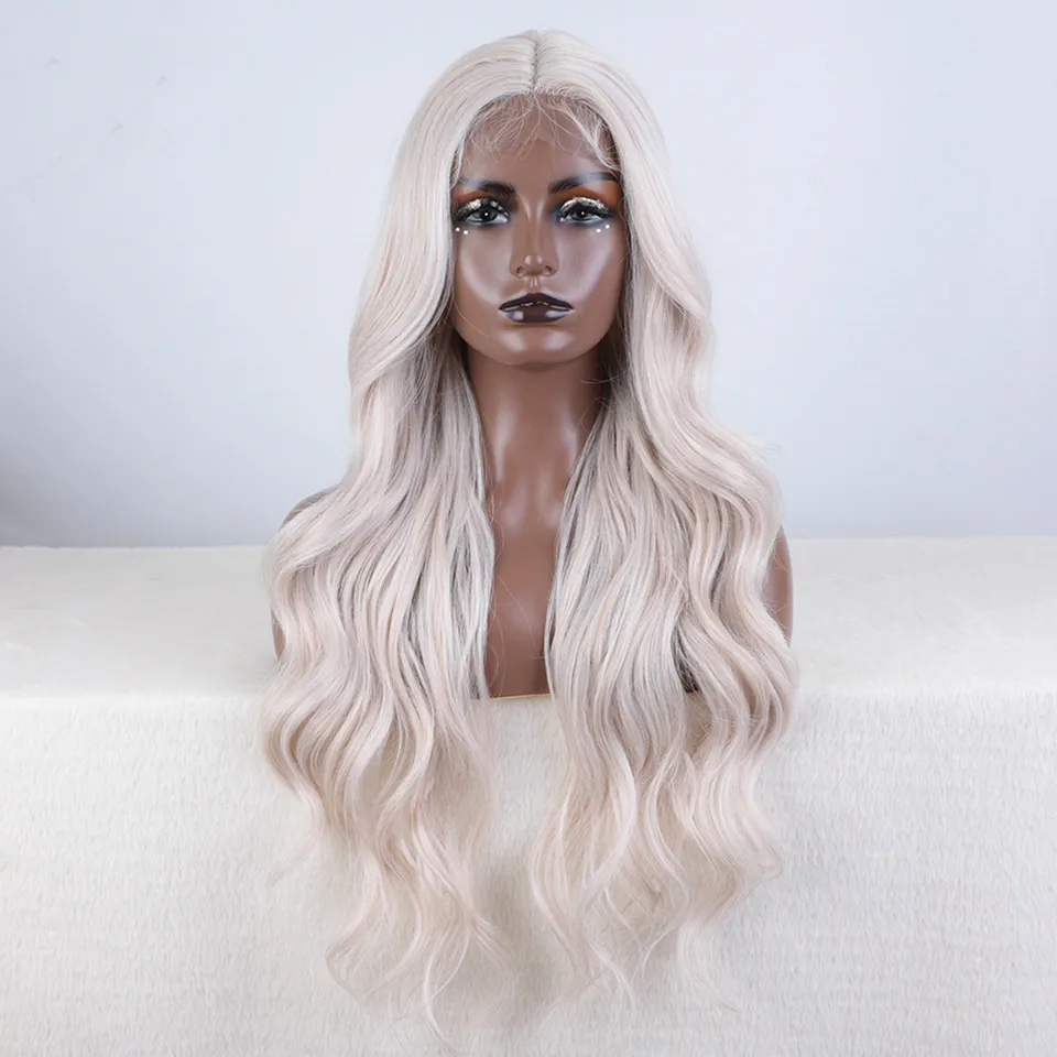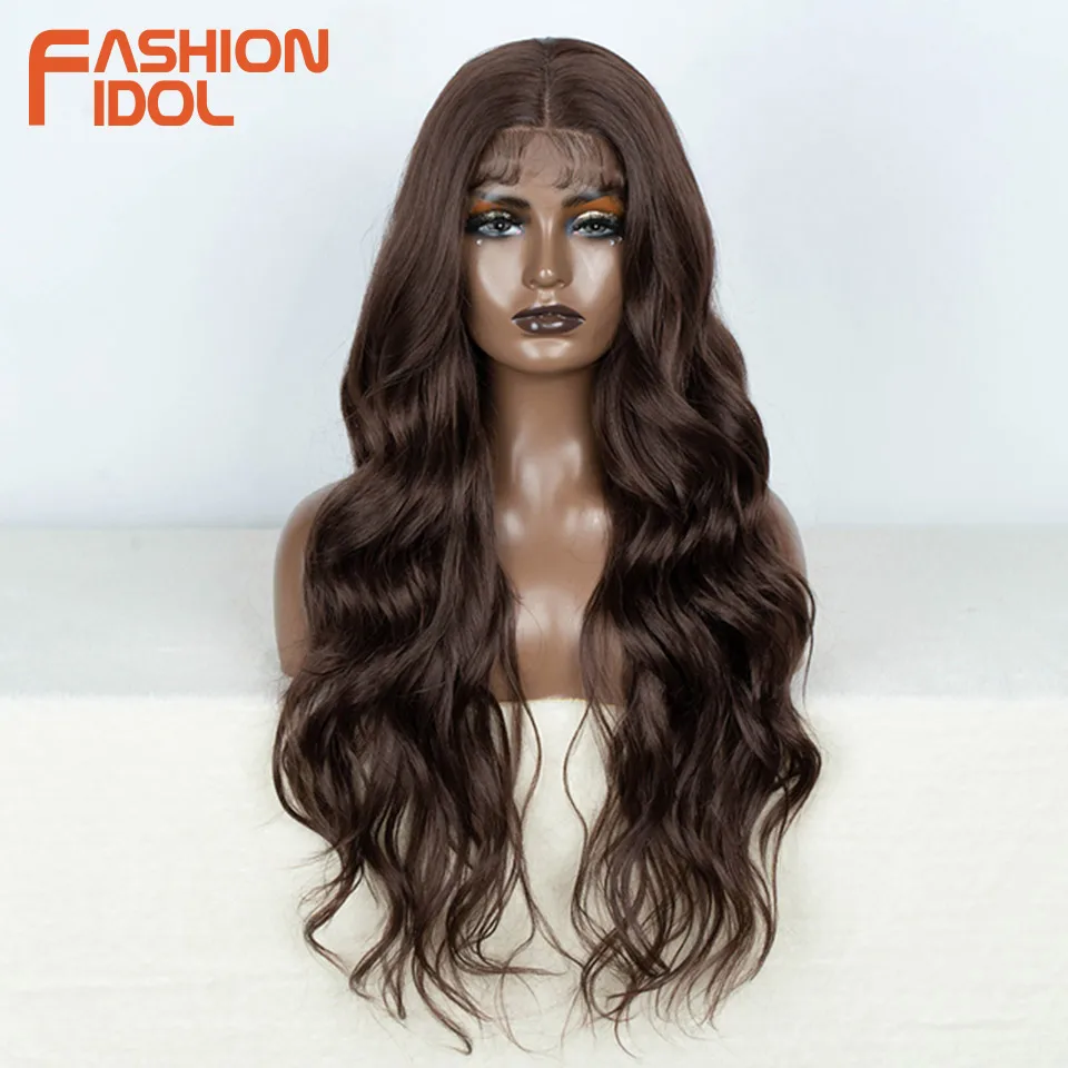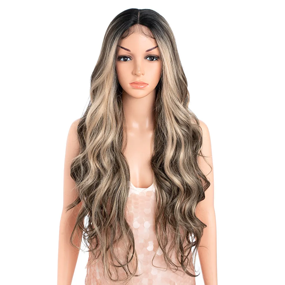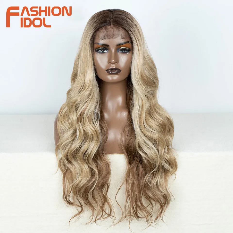 FASHION IDOL Body Wave Lace Front Wigs Synthetic With Baby Hair Wigs For Women 28 Inch Ombre Blonde Higlight Lace Wigs Cosplay