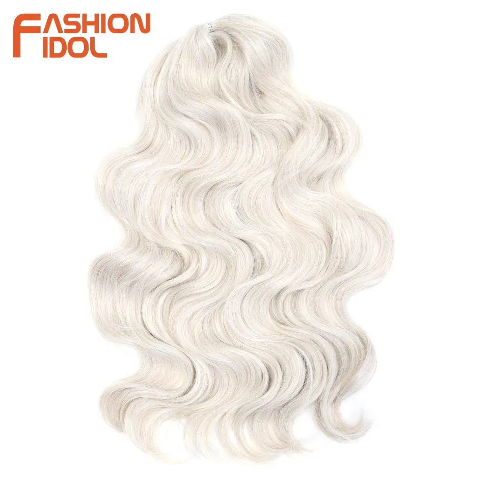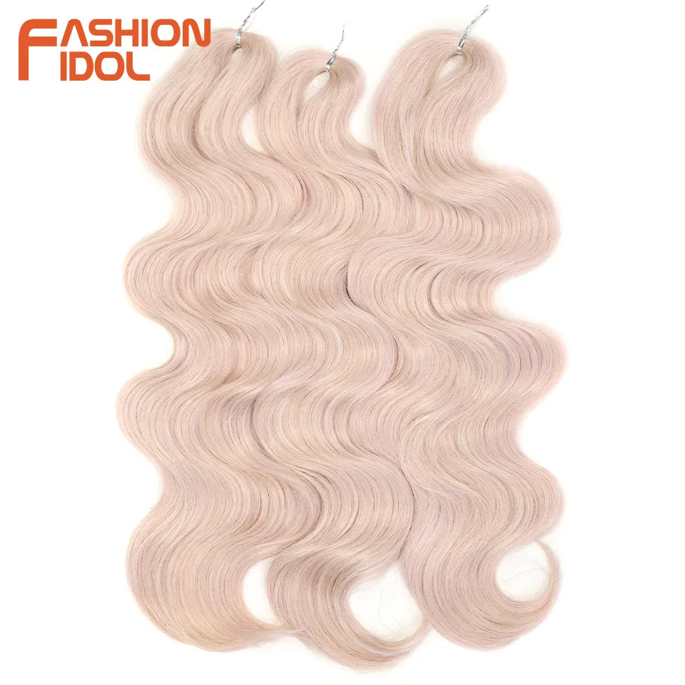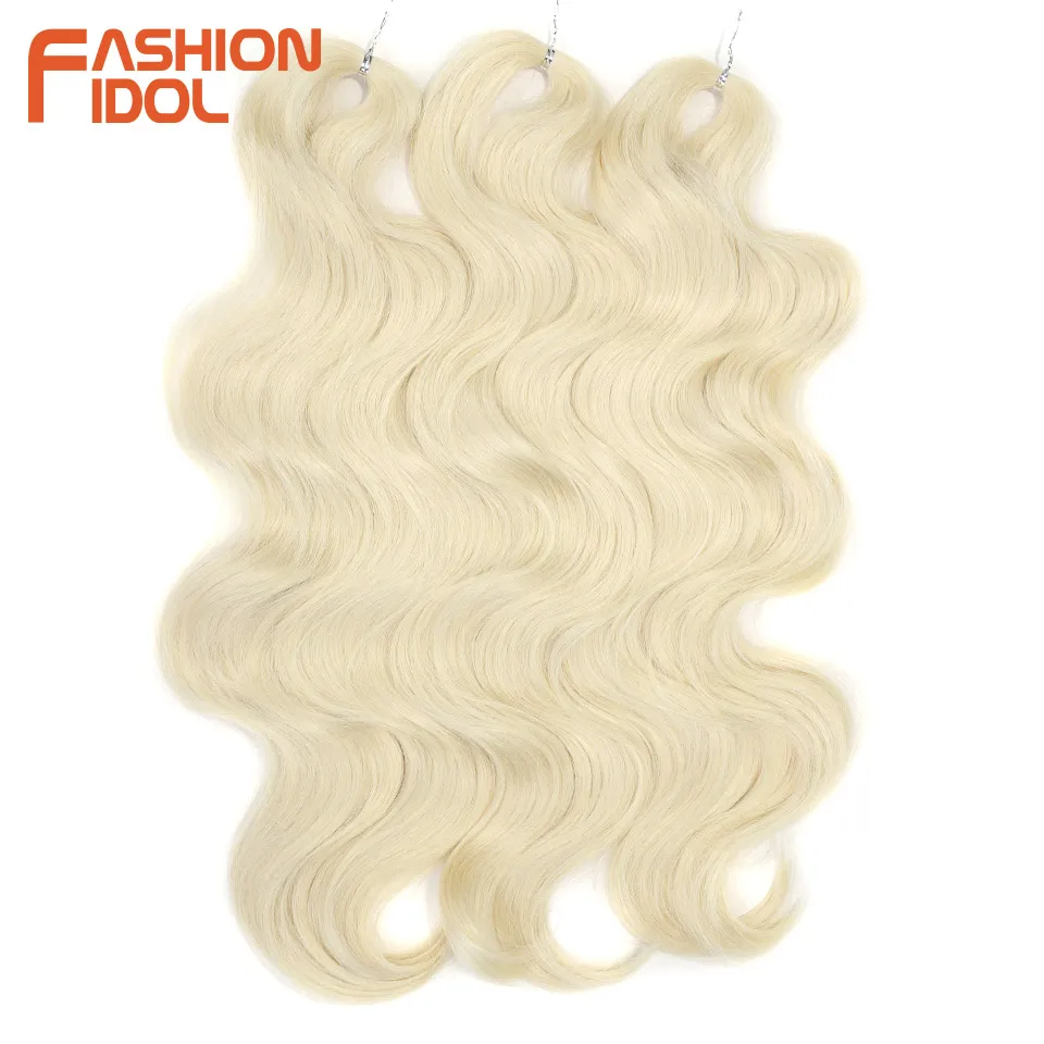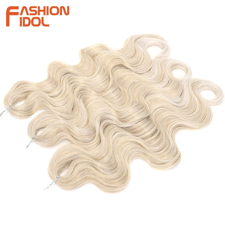 FASHION IDOL Soft Body Wave Crochet Hair 24Inch 3PCS Synthetic Hair Braids Ponytail Fake Hair Wavy Ombre Blonde Hair Extensions