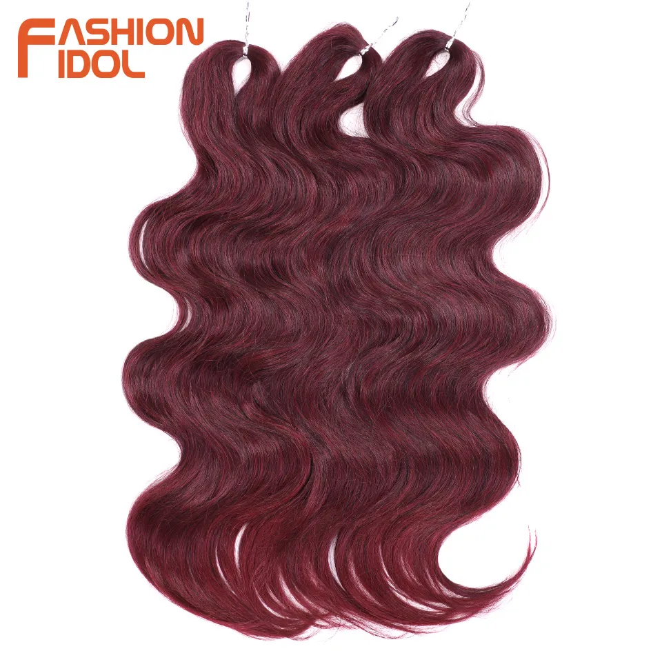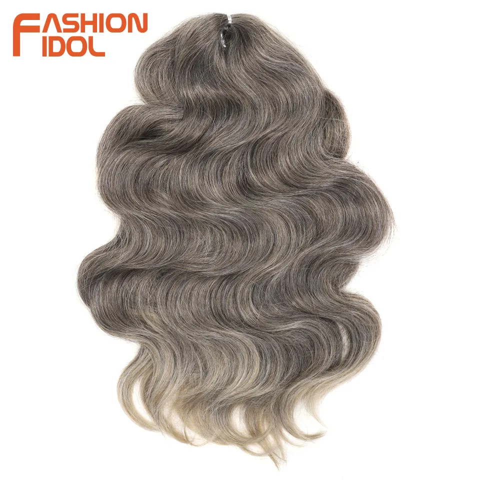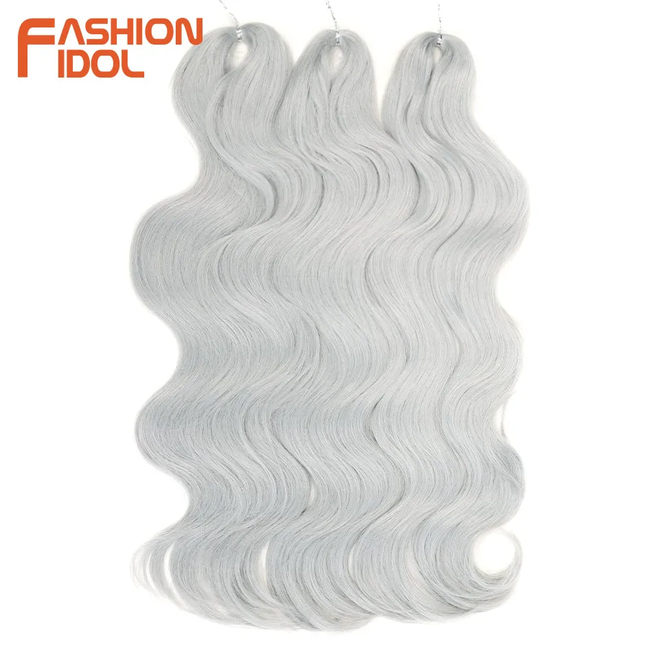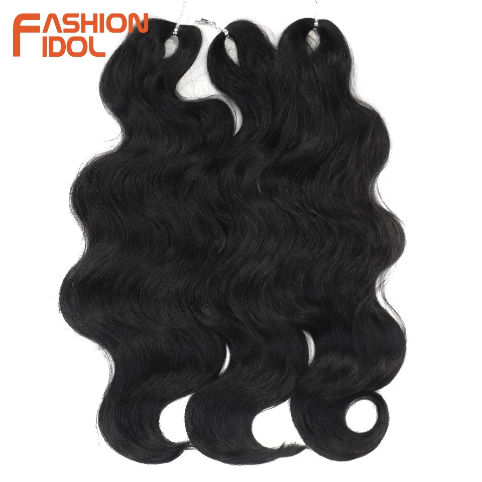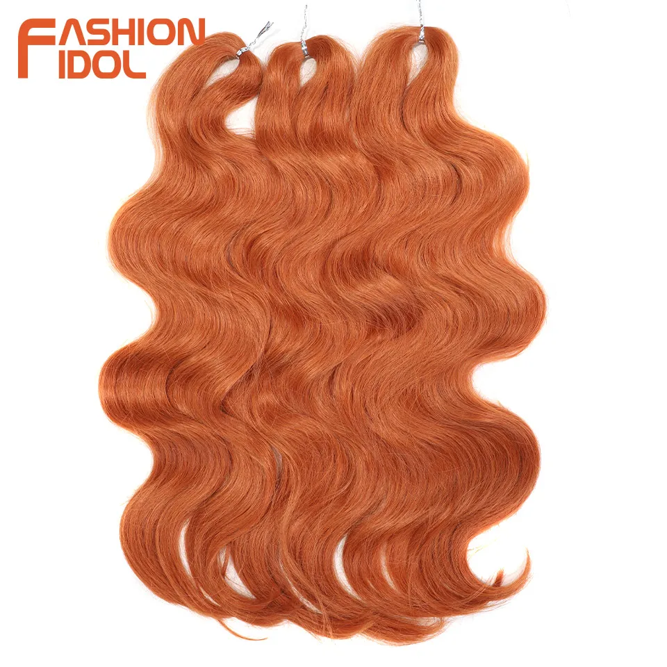 FASHION IDOL Soft Body Wave Crochet Hair 24Inch 3PCS Synthetic Hair Braids Ponytail Fake Hair Wavy Ombre Blonde Hair Extensions