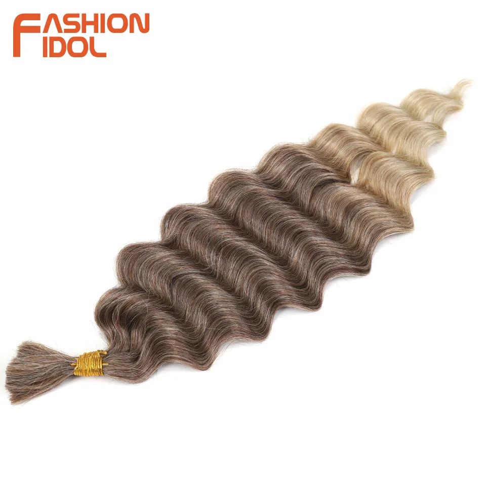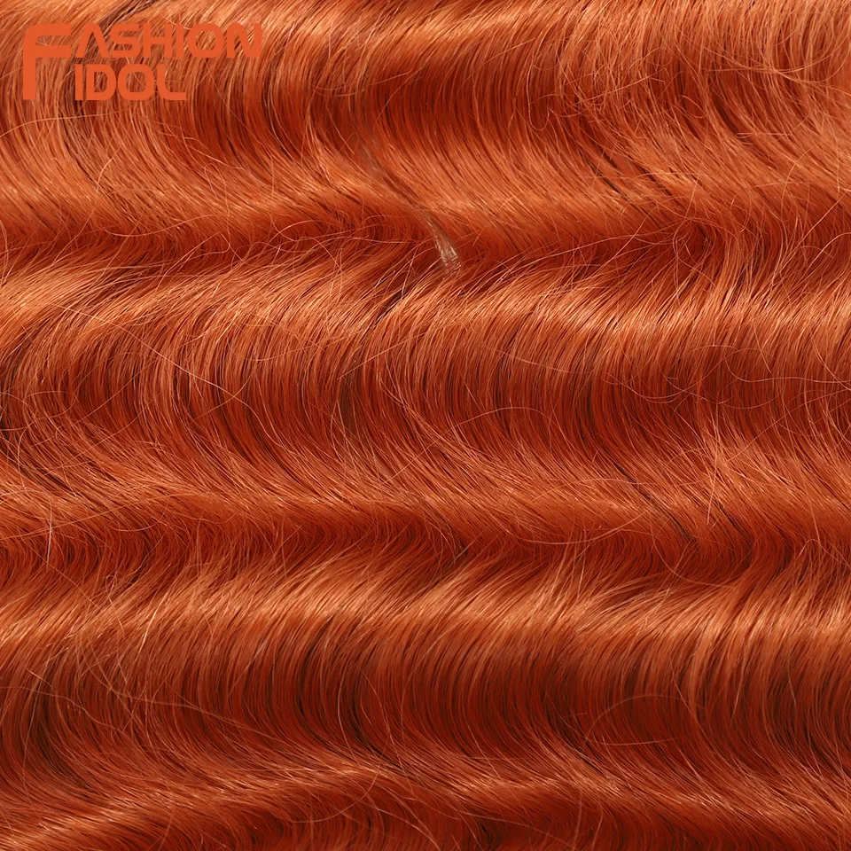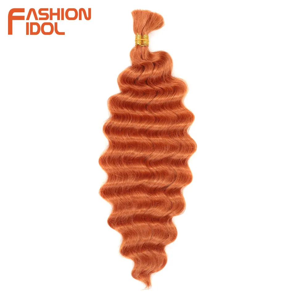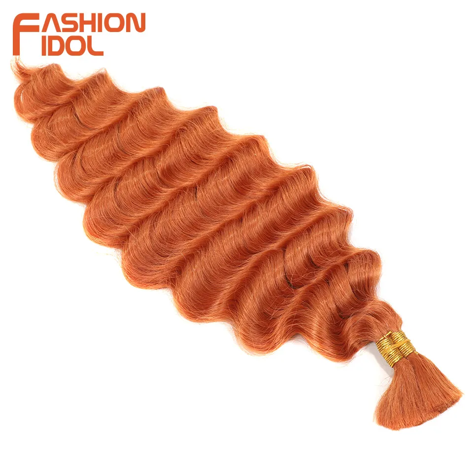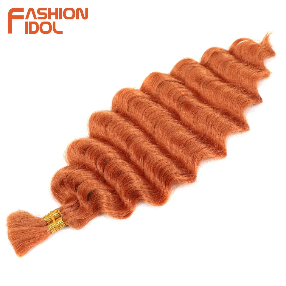 FASHION IDOL Soft Deep Wave Bulk Hair 24 Inch 2PCS Synthetic Hair Braids Ponytail Crochet Hair Wavy Ombre Orange Hair Extensions