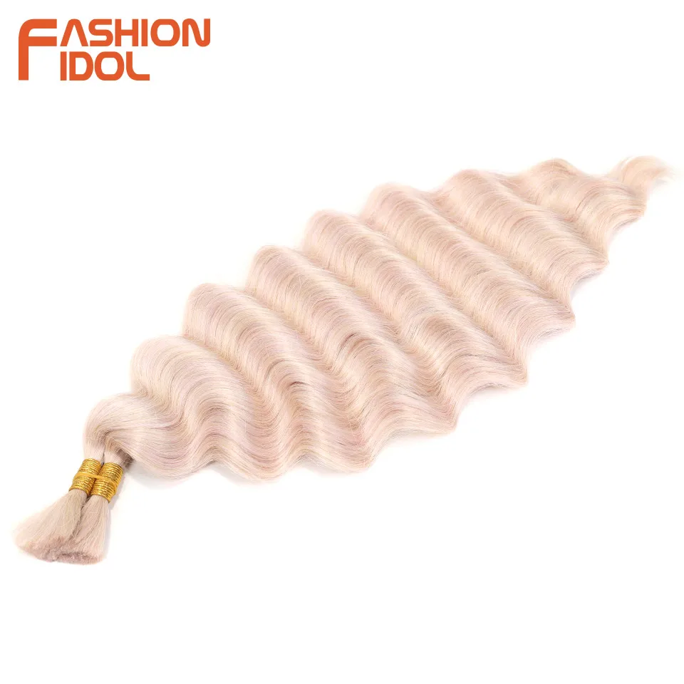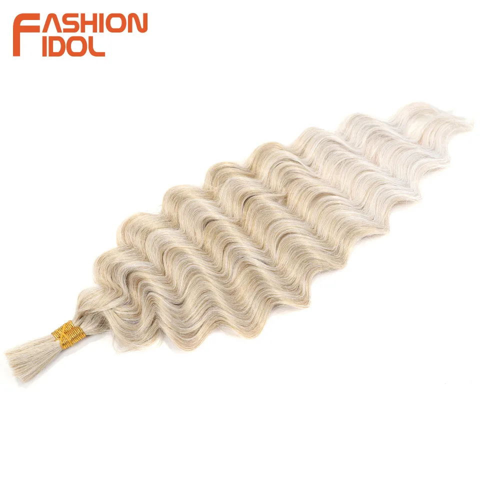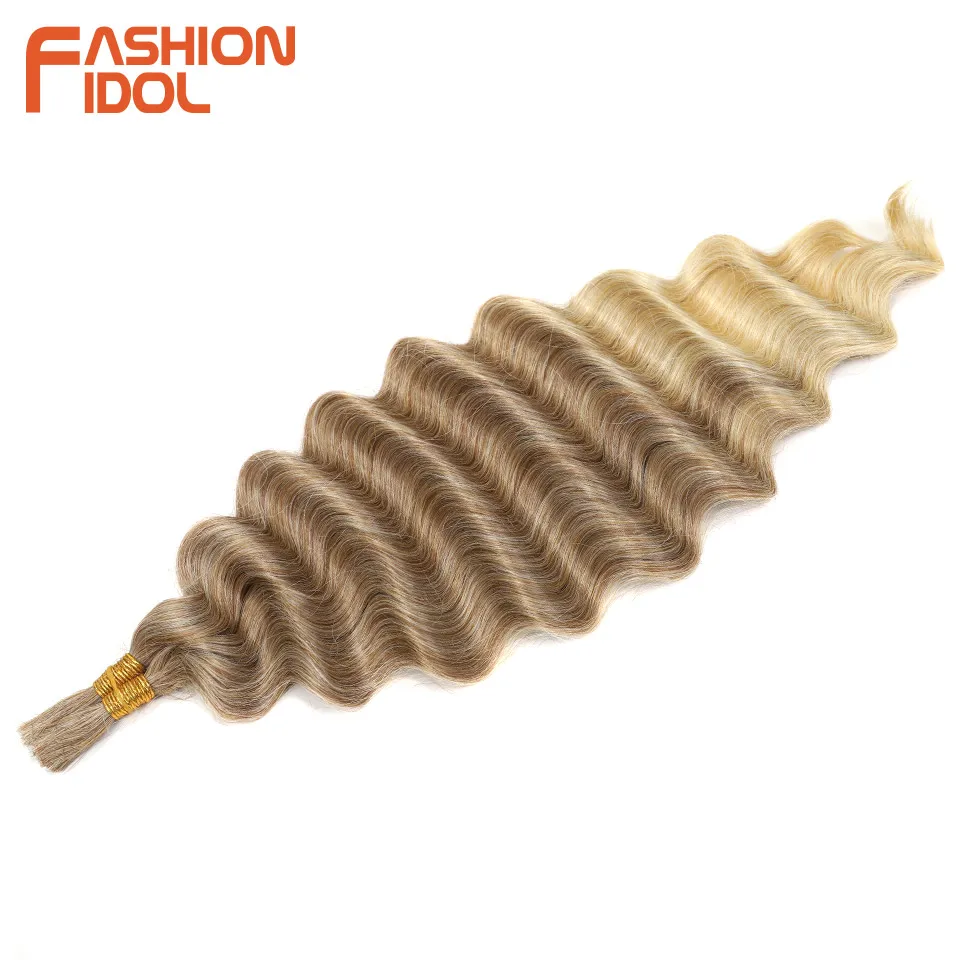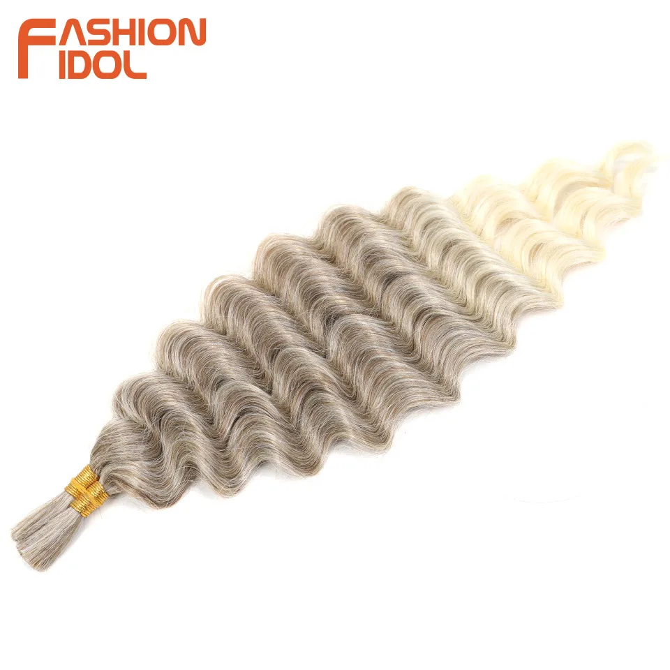 FASHION IDOL Soft Deep Wave Bulk Hair 24 Inch 2PCS Synthetic Hair Braids Ponytail Crochet Hair Wavy Ombre Orange Hair Extensions