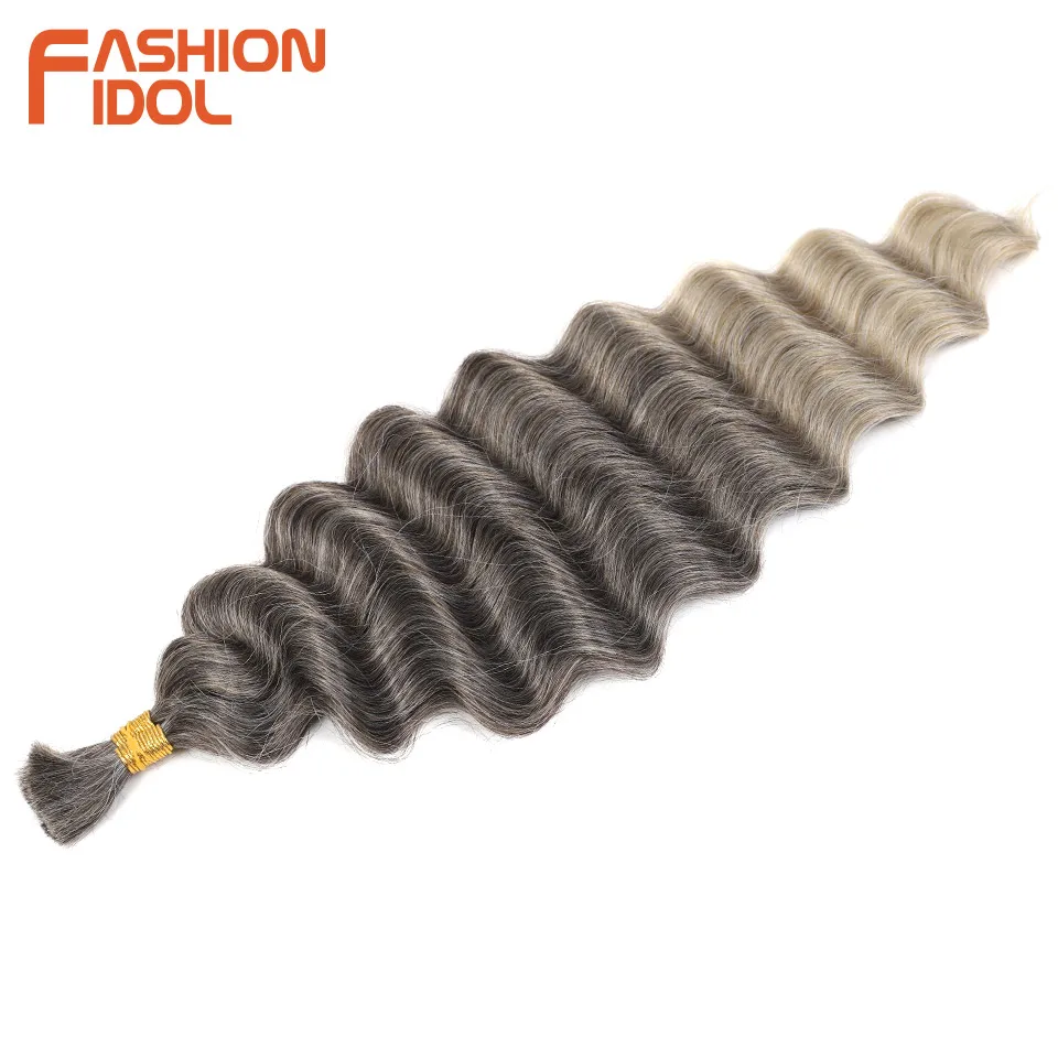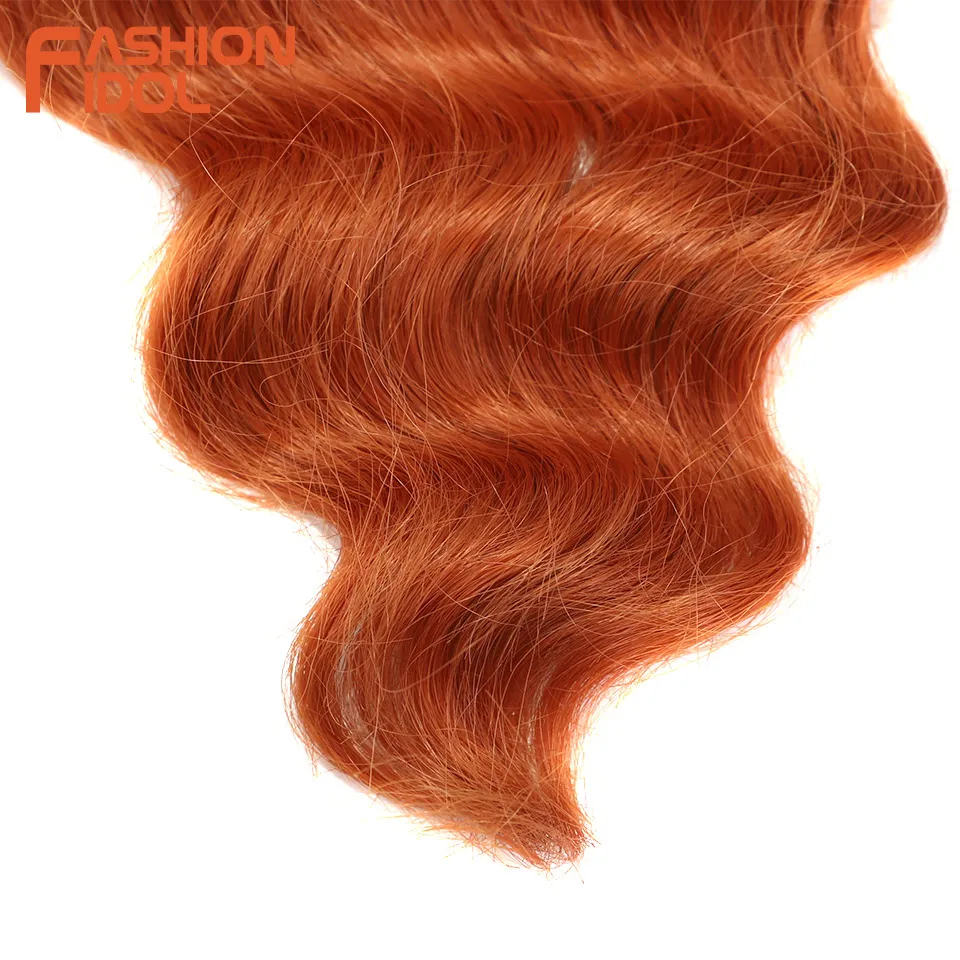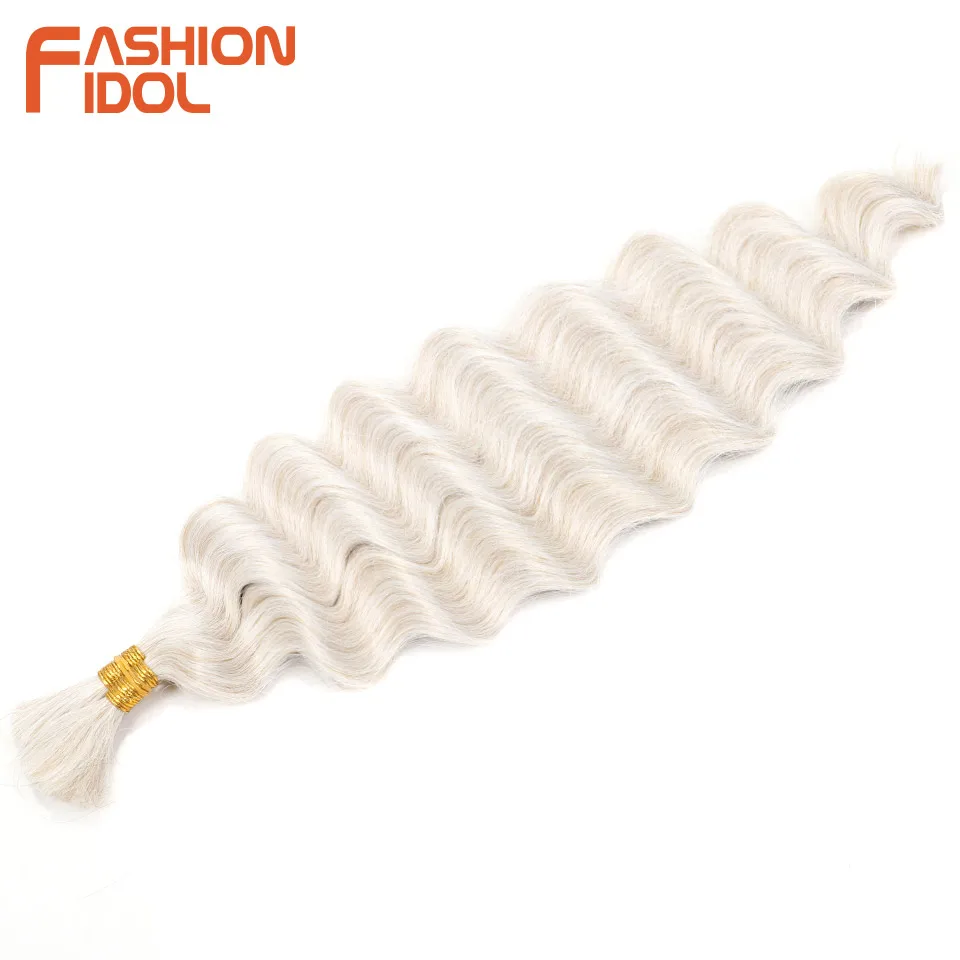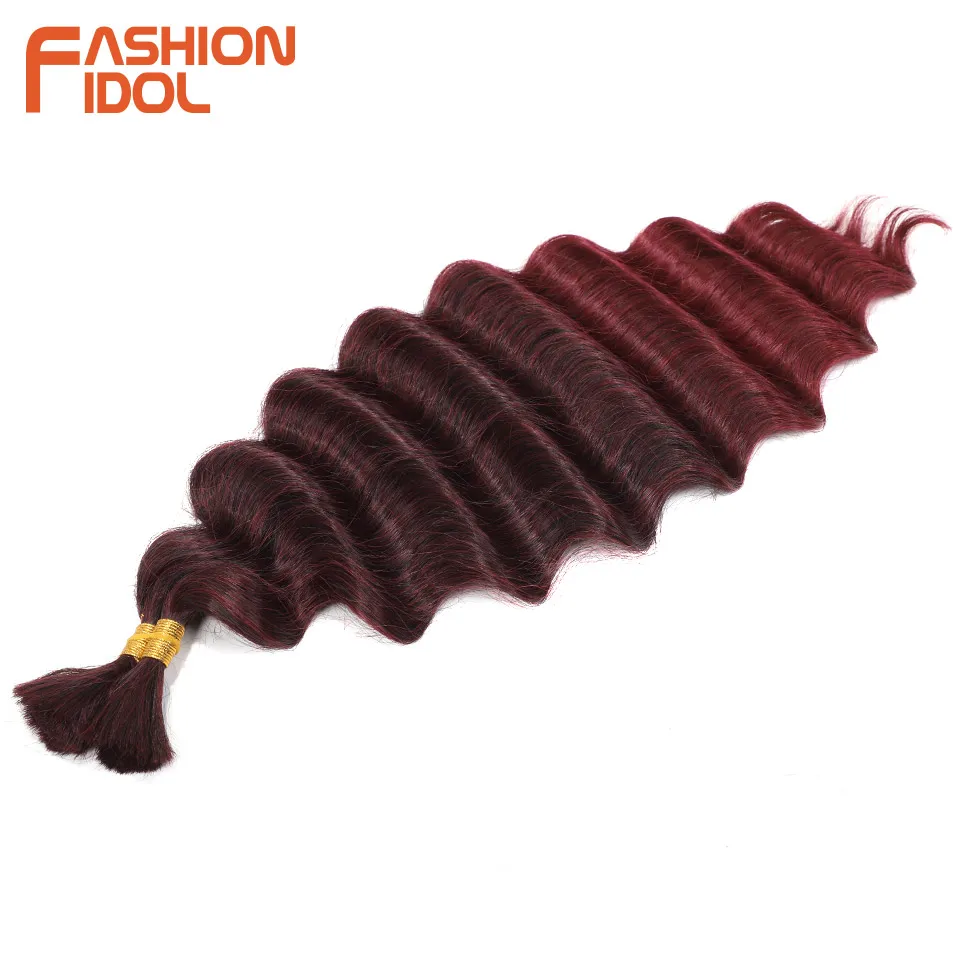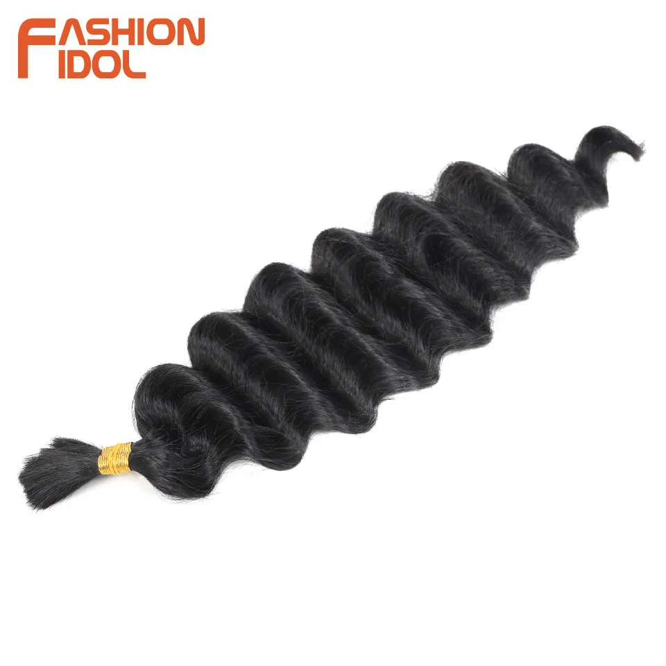 FASHION IDOL Soft Deep Wave Bulk Hair 24 Inch 2PCS Synthetic Hair Braids Ponytail Crochet Hair Wavy Ombre Orange Hair Extensions