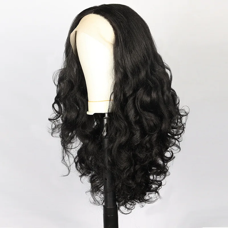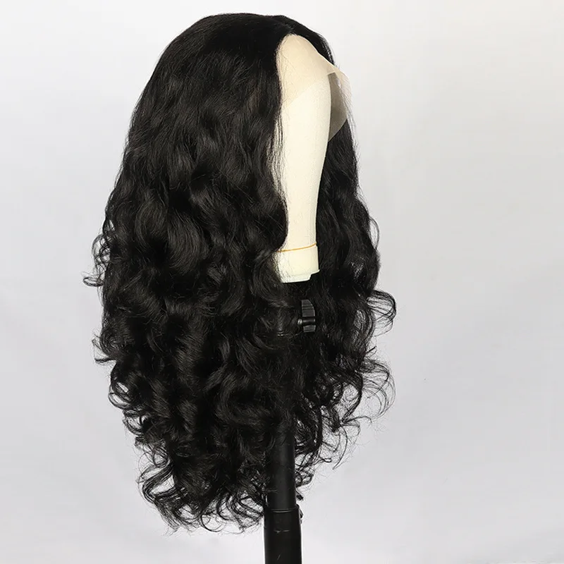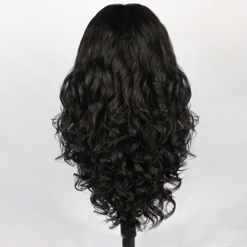 Fashion Long Black curly front lace Wavy Hair Wigs For Women’s yaki black fluffy chemical fiber hair Wig