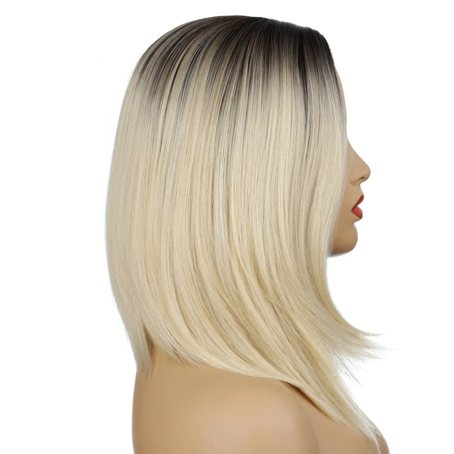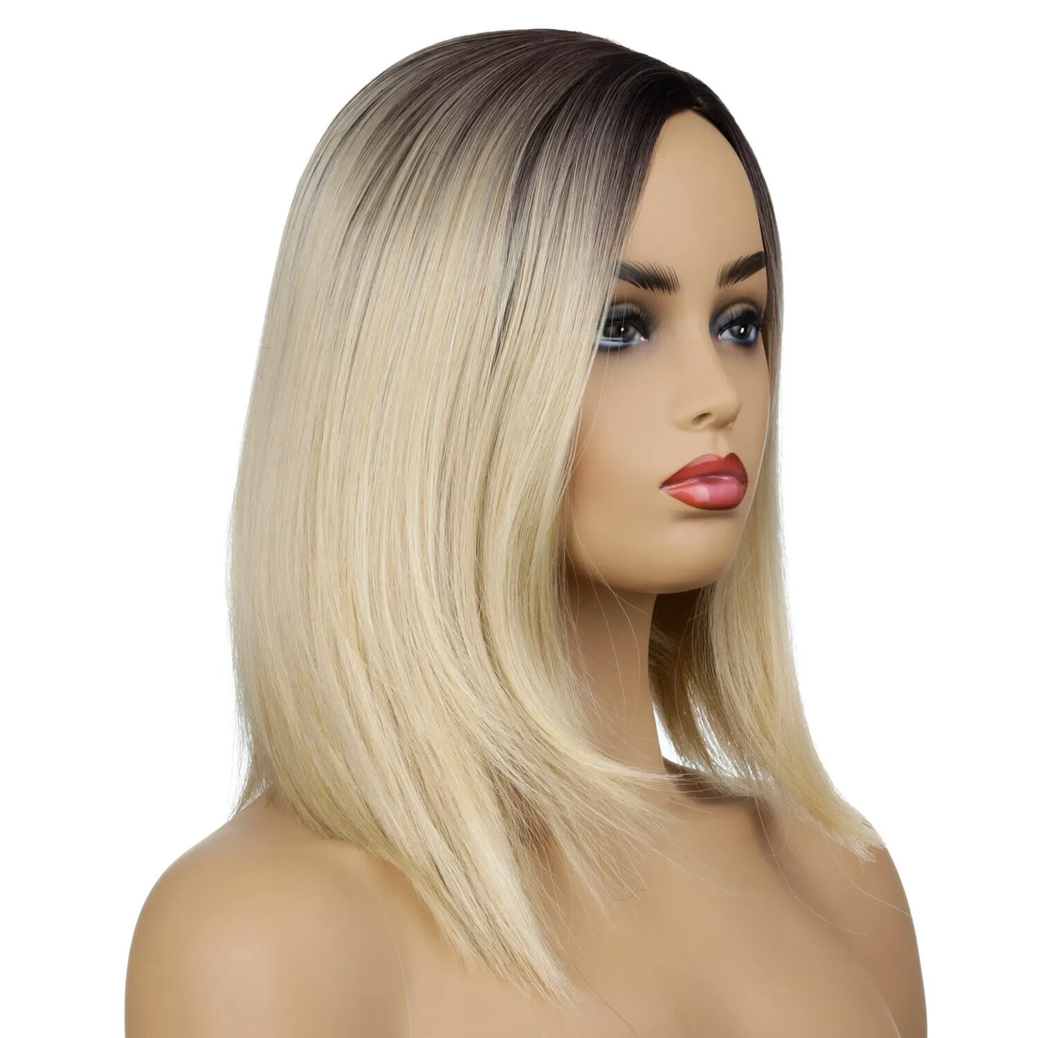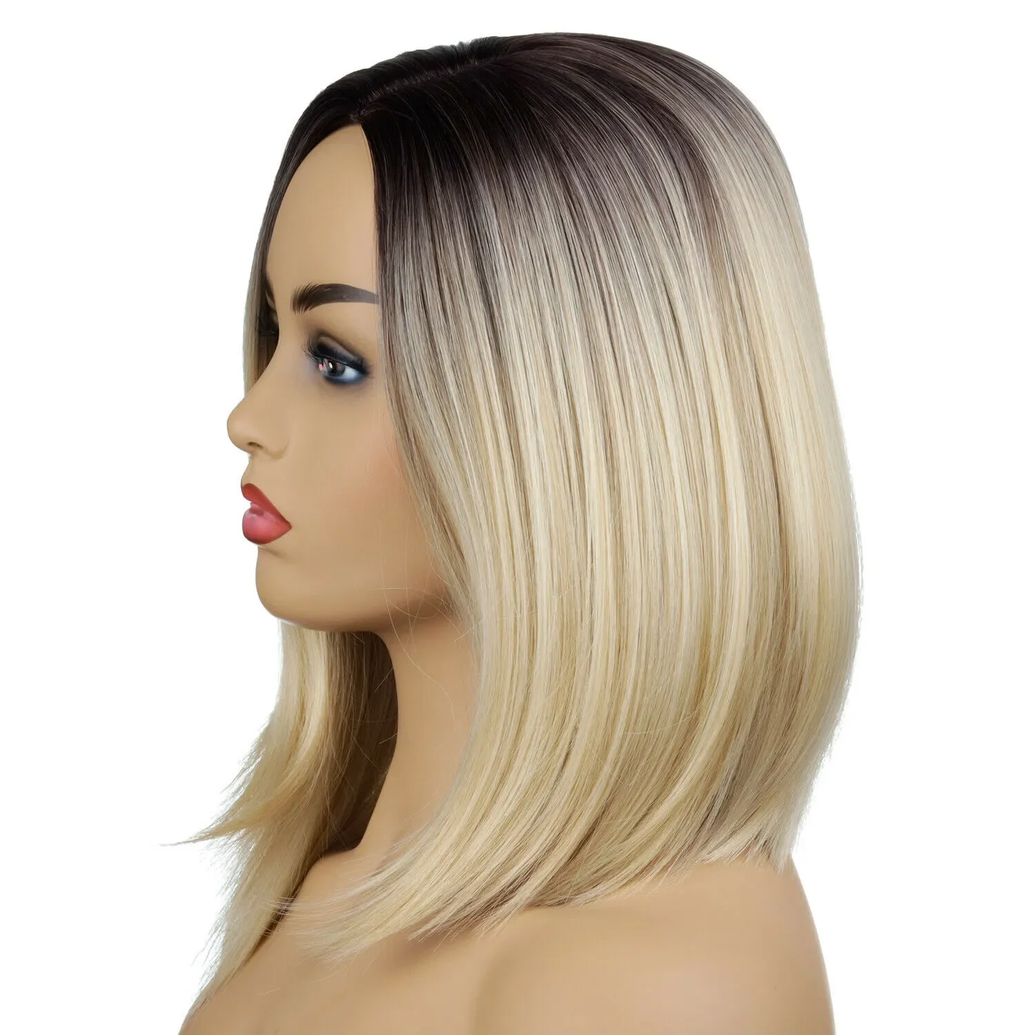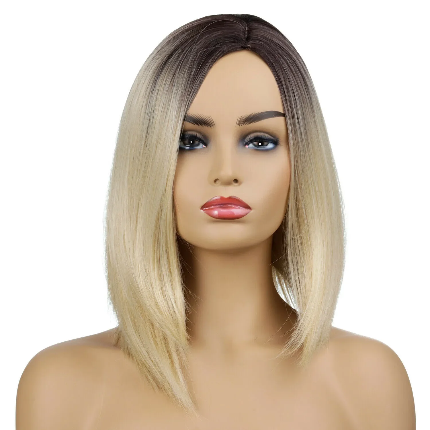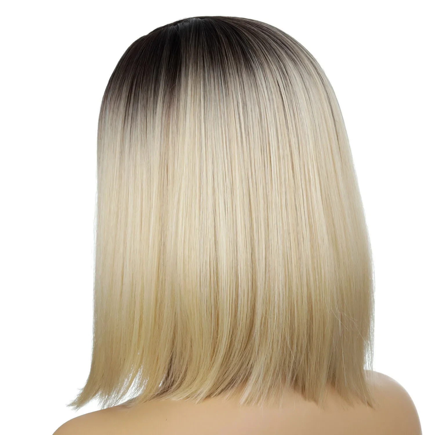 Fashion Womens mix Golden Blonde & brown Gradient Short Straight Cosplay Hair Wigs