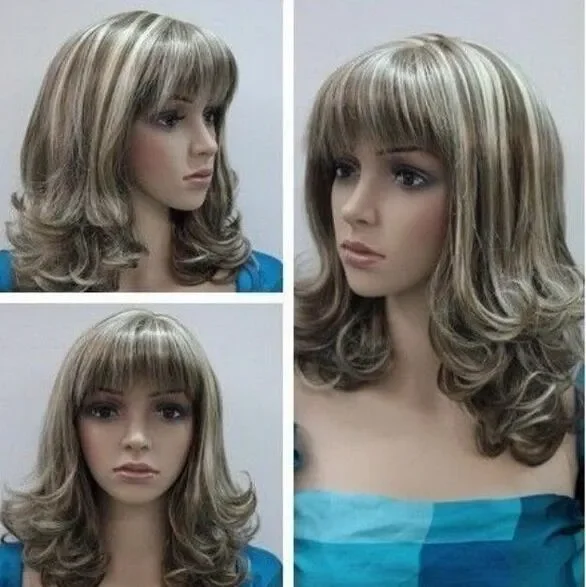 Fashionable Short brown mixed Blonde curly women's Cosplay hair wig