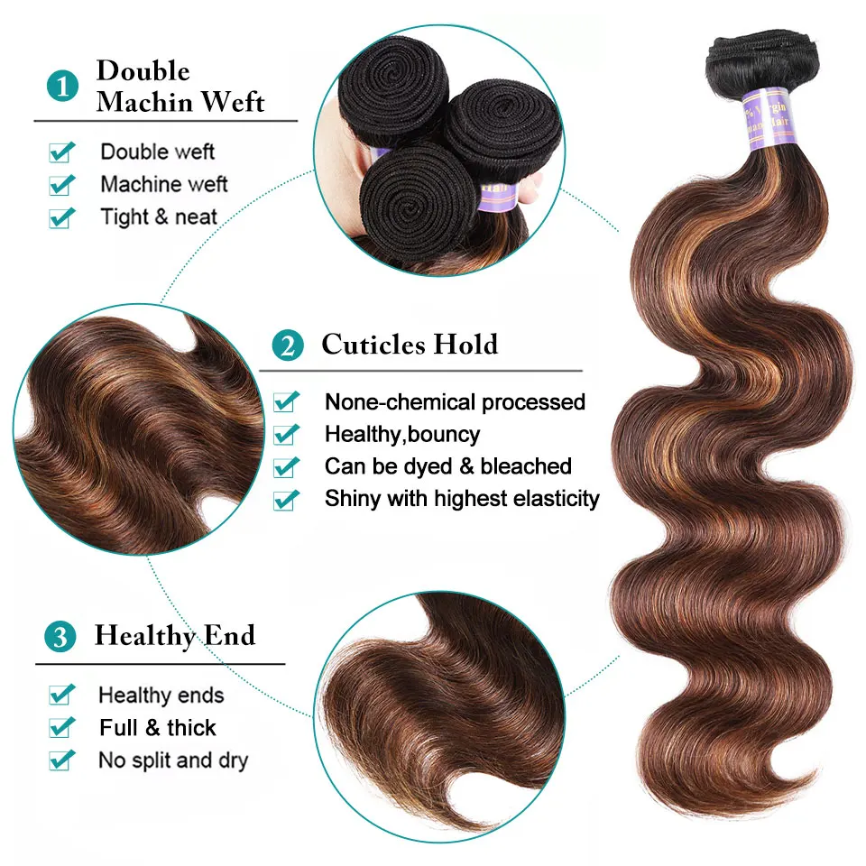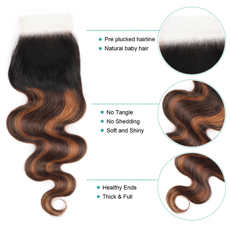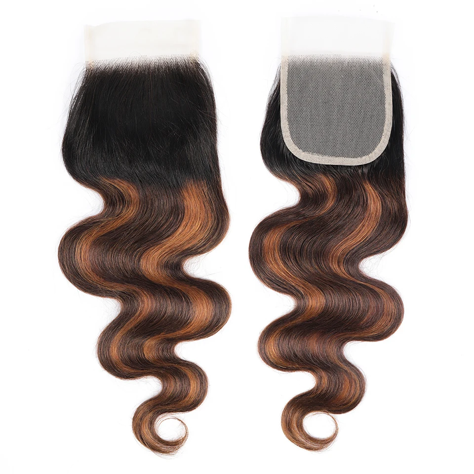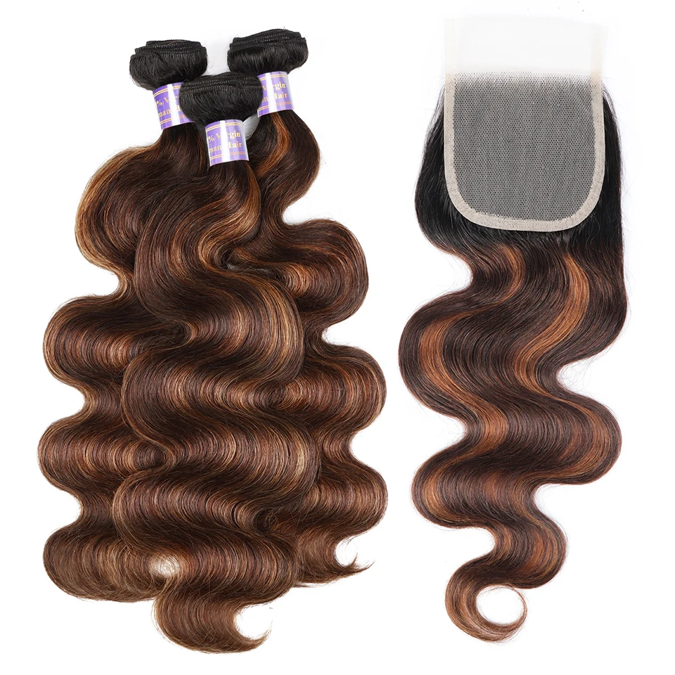 FB 30 Brown Highlight Body Wave Bundles With Closure 3 Bundles With 5x5 4x4 Lace Closure Brazilian Remy Colored Hair Extensions