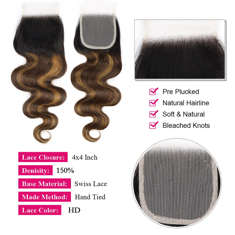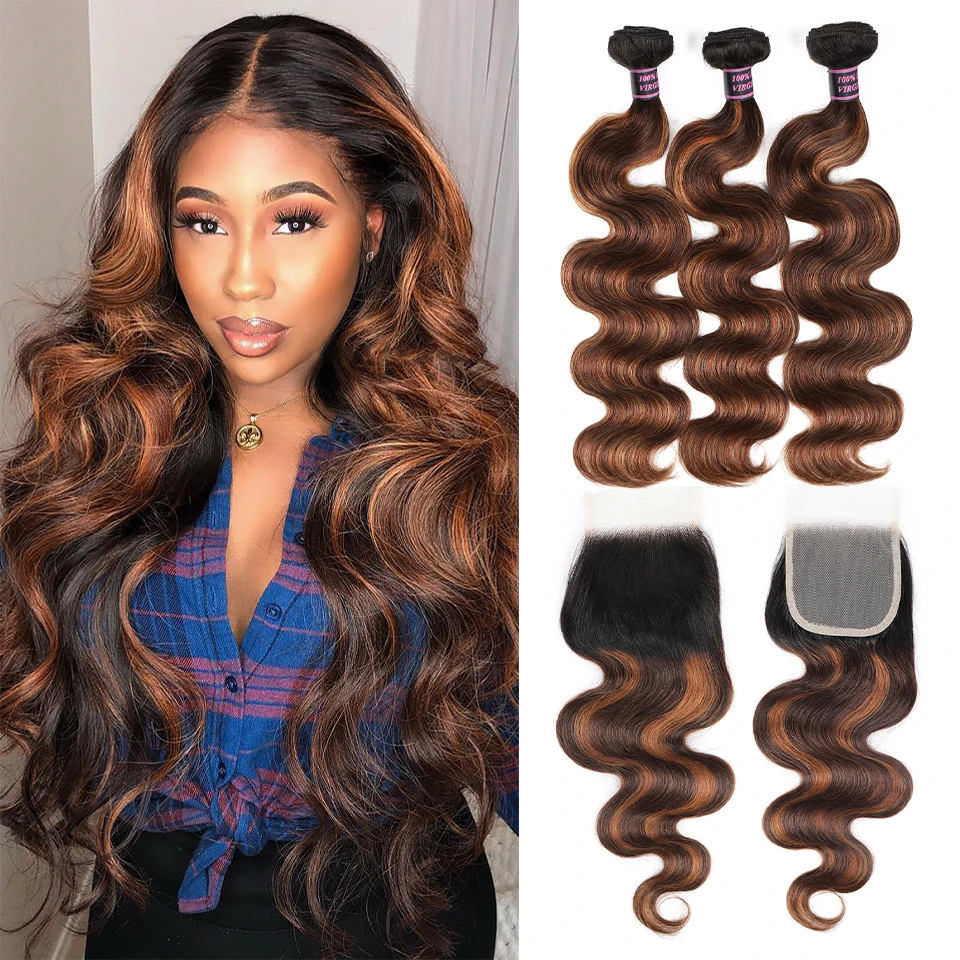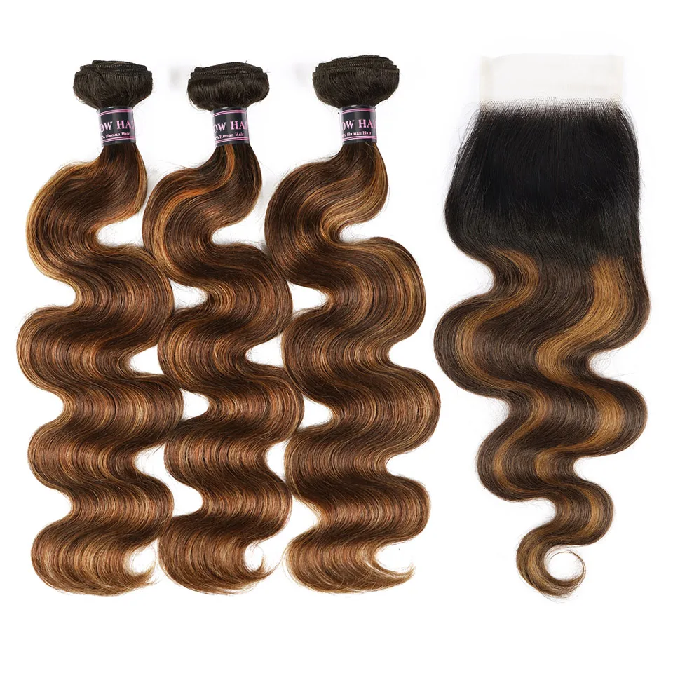 FB 30 Highlight Bundles With Closure 30 Inch Body Wave Bundles With 4x4 Transparent Closure Brazilian Remy Hair Weave For Women
