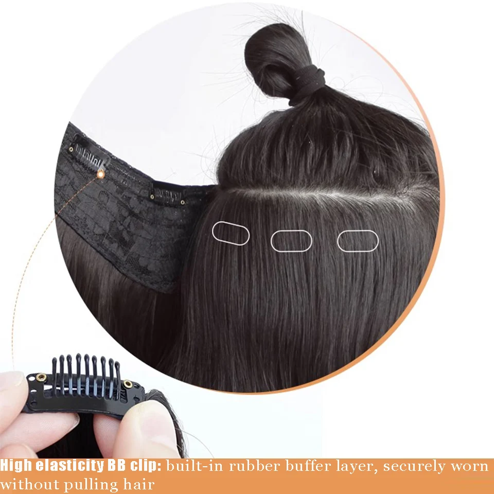 Material:Premium Quality Synthetic Hair, feels silky and soft like real human hair. Fit to all head sizes. Attached by a claw/crocodile clip with drawstring which will make you comfortable for all day Weight: 80G, Length:6"-8" Multiple Colors available in your choice as shown in