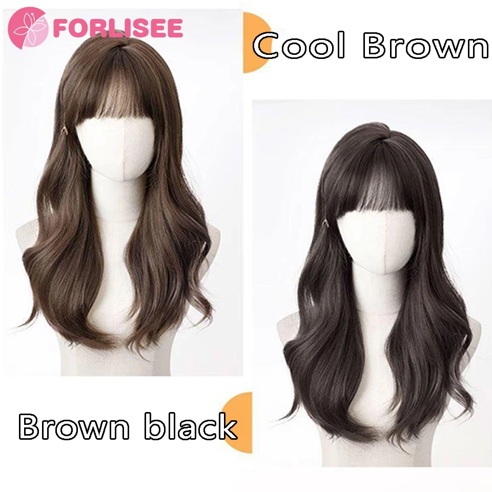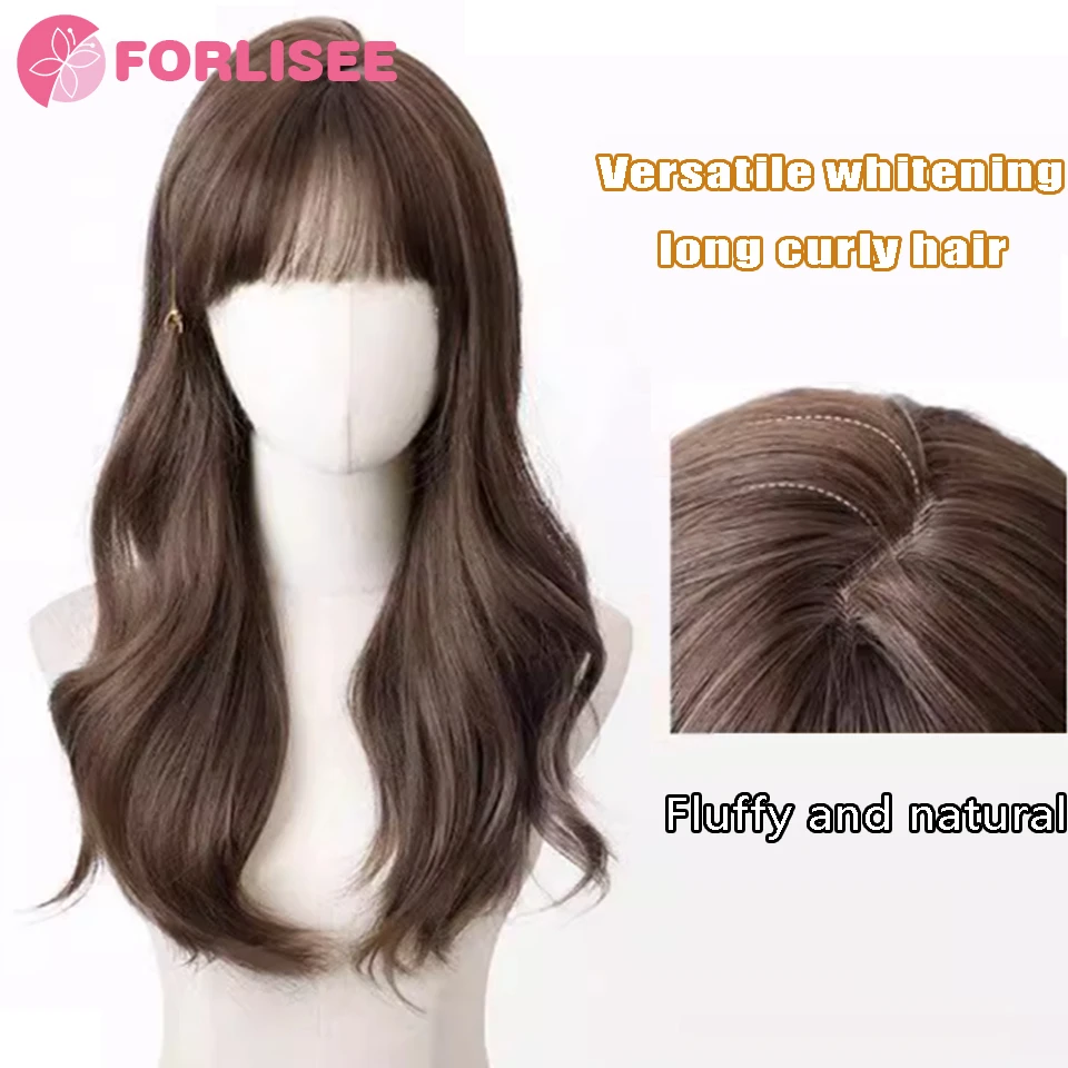 FORLISEE 23-inch Long Curly Hair Synthetic Fluffy Atmosphere Natural Full Bangs Long Curly Chemical Fiber Heat-resistant Wig