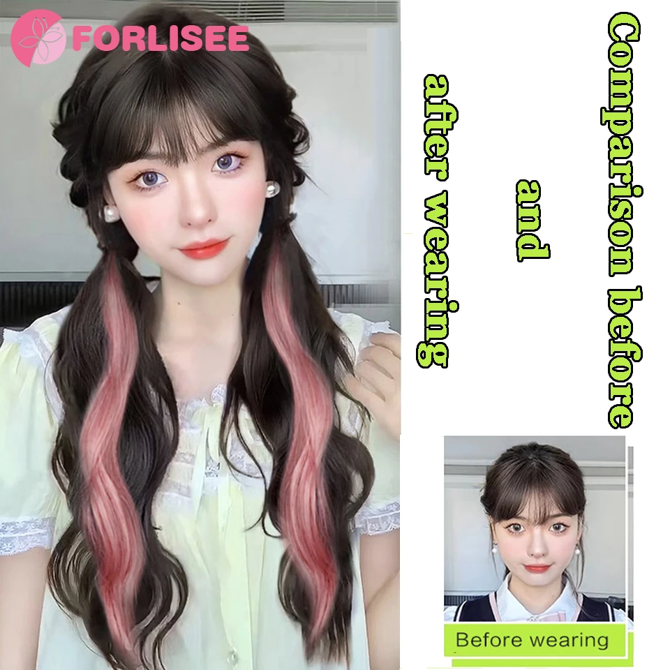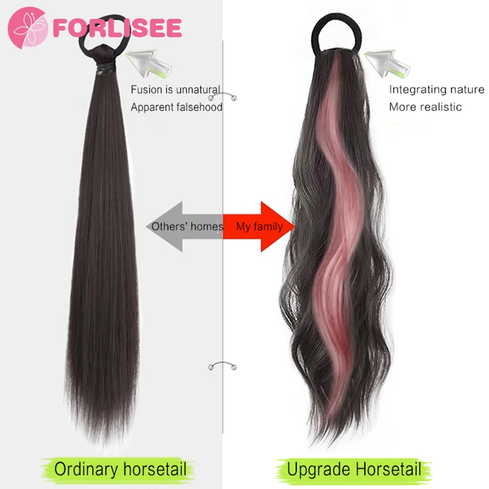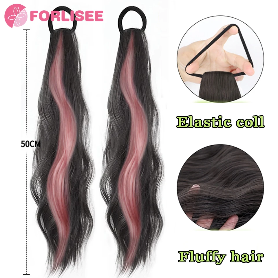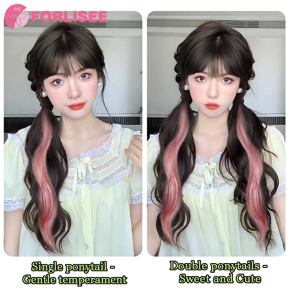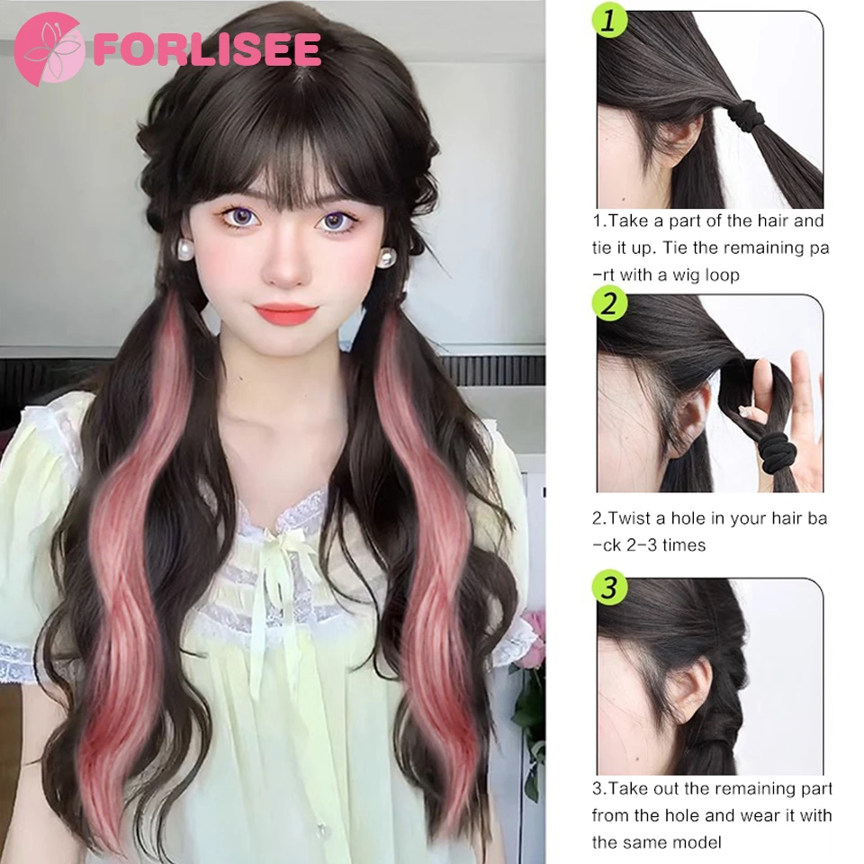 FORLISEE Synthetic Long Hair Strap Style Double Horsetail Vigorous Girl Fluffy And Binding Hair Wig Piece Double Horsetail