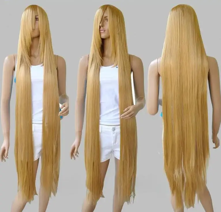 free shipping 130cm 51'' Long Rapunzel Tangled Light Golden Blonde Straight Cosplay Hair Wig