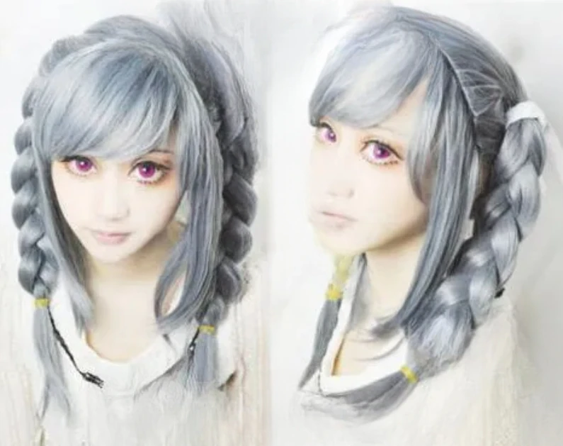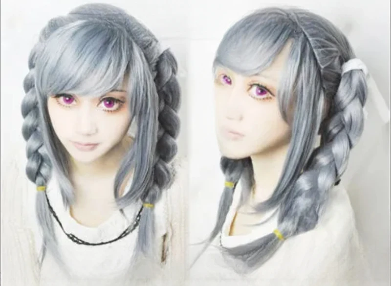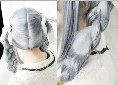 Free Shipping Fashion Gray Braid Danganronpa Dangan Ronpa Peko Pekoyama Cosplay Hair wig