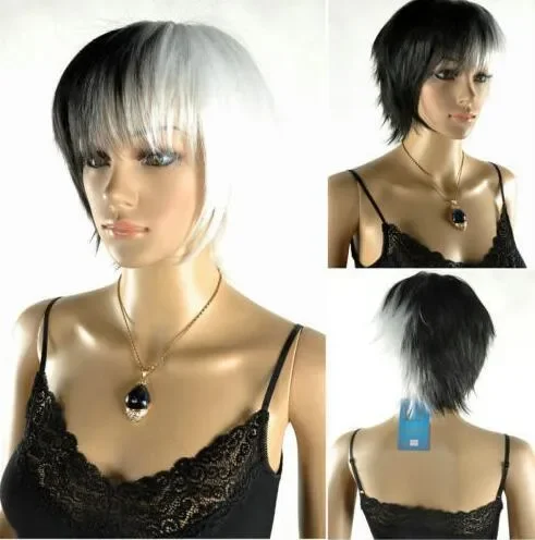 free shipping Latest New Short Black & White Woman Girl Like Cosplay hair Wig