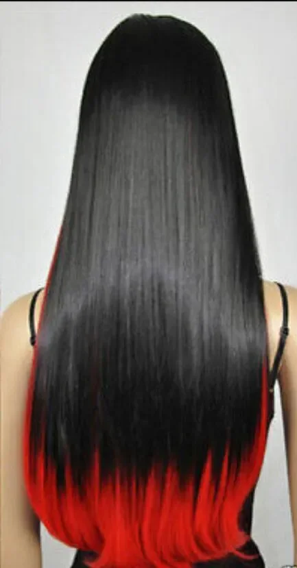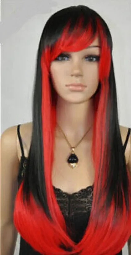 free shipping Women's Long Straight Black Red Mix Costume Party Cosplay Full Hair Wig