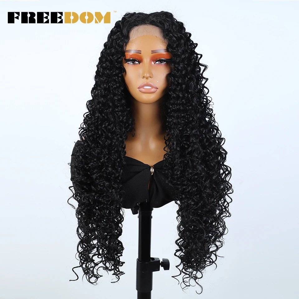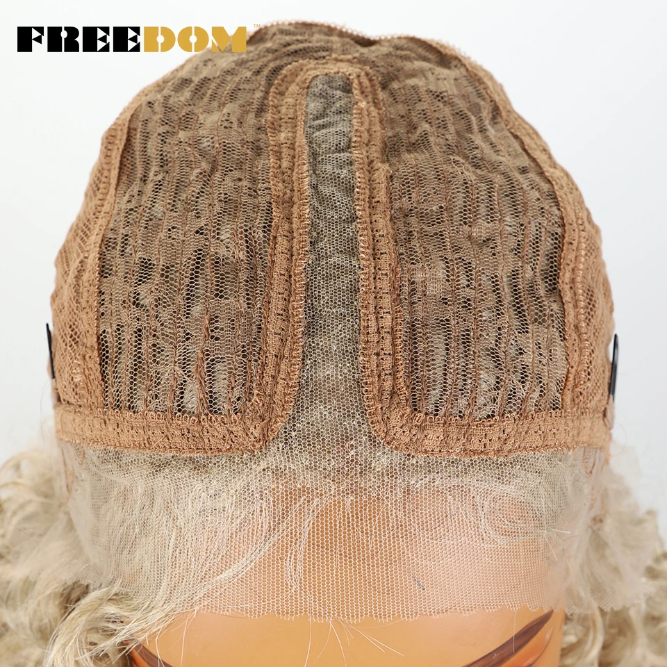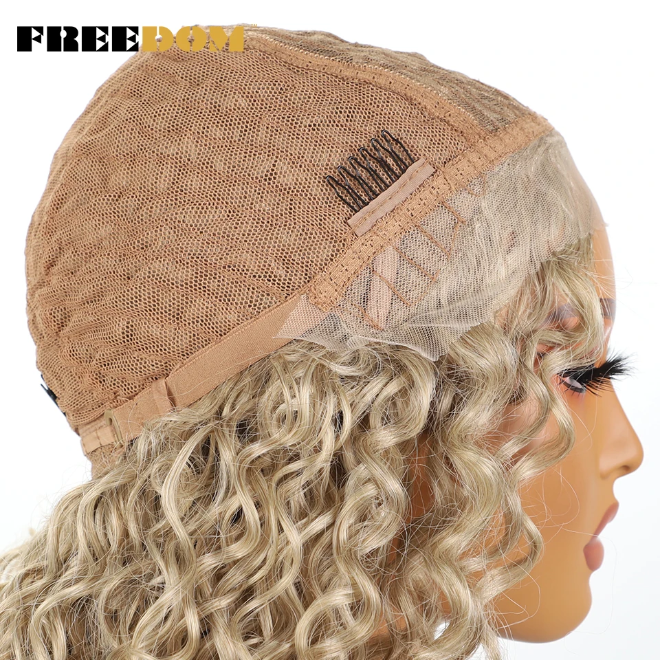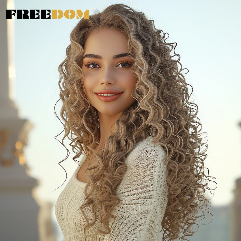 FREEDOM Curly Synthetic Lace Front Wigs For Women Ombre Brown Blonde Lace Wig BIO Hair 22 26 30 inch Curly Hair Cosplay Wigs