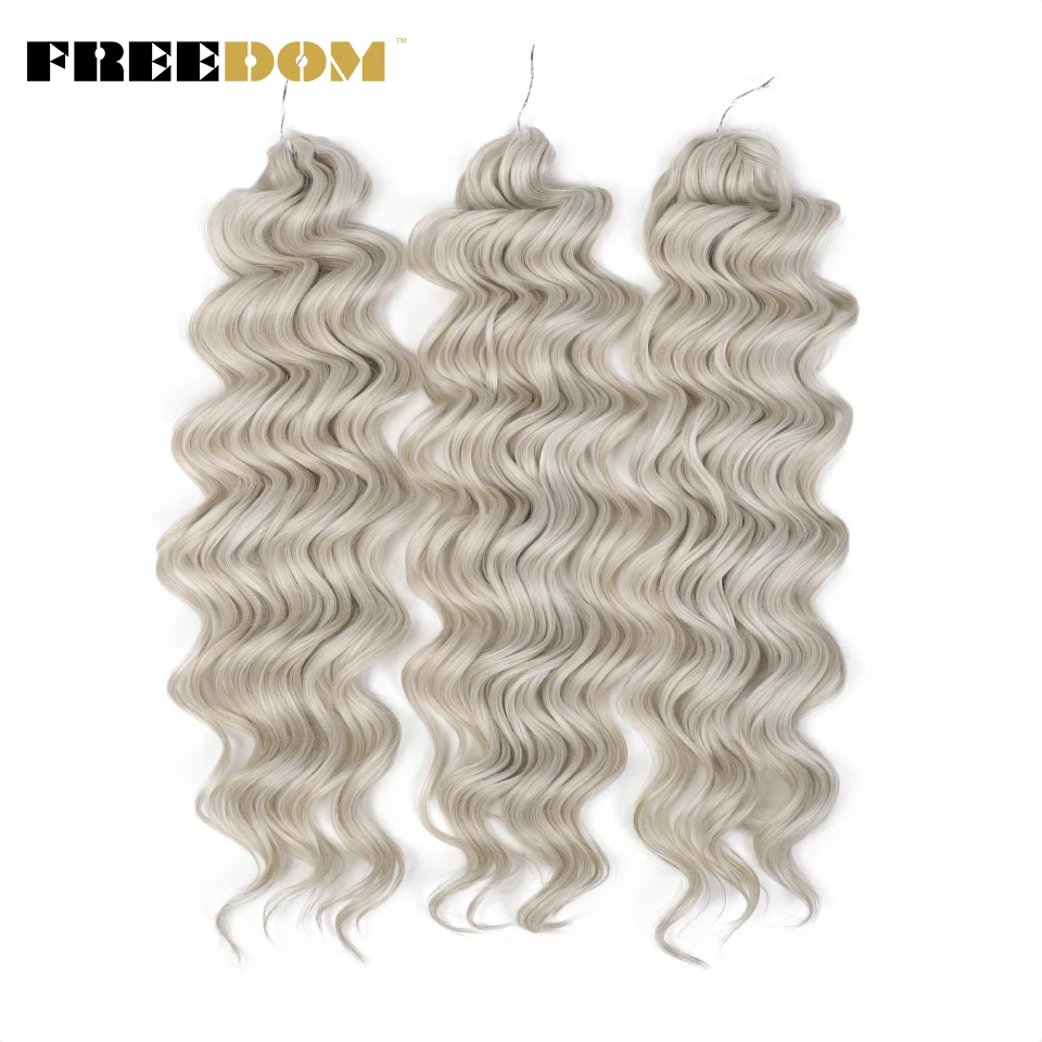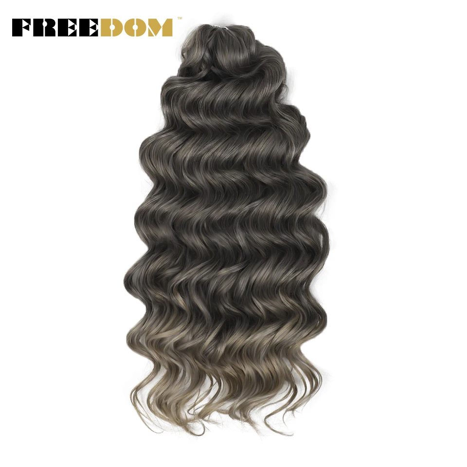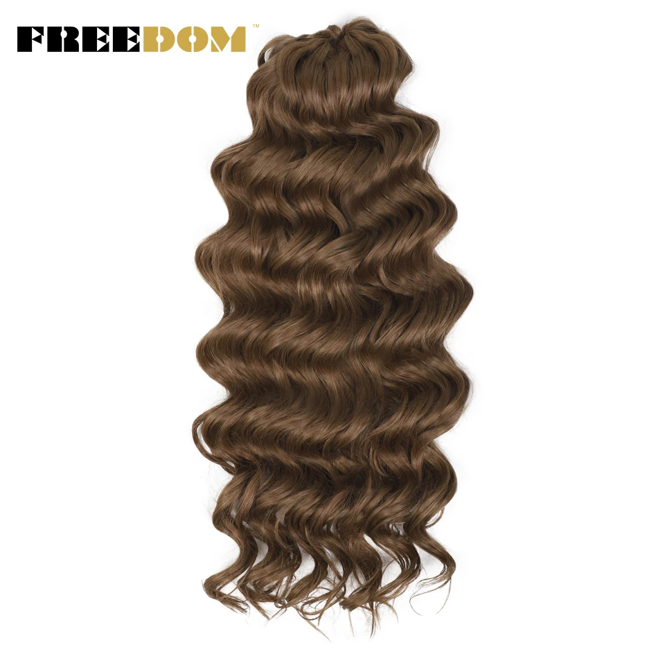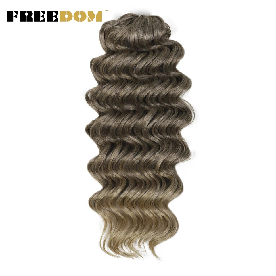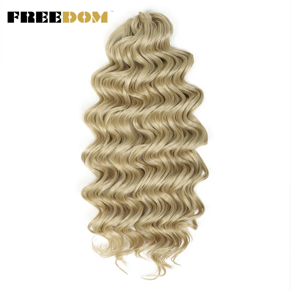 FREEDOM Synthetic Twist Crochet Curly Hair 24 Inch Deep Water Wave Braid Hair MANASI Ombre Blonde Brown Braiding Hair Extensions