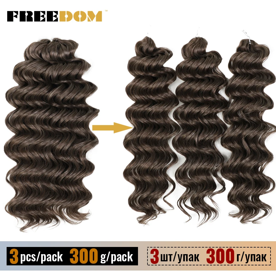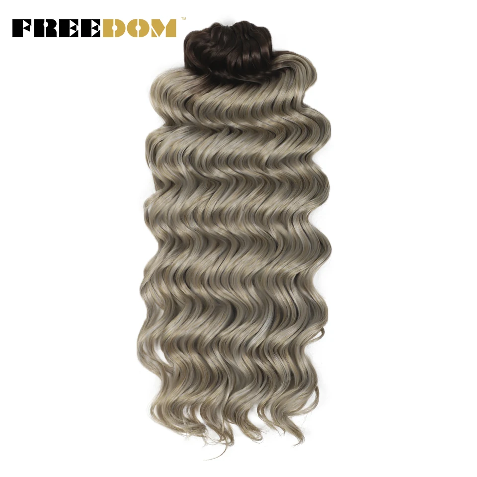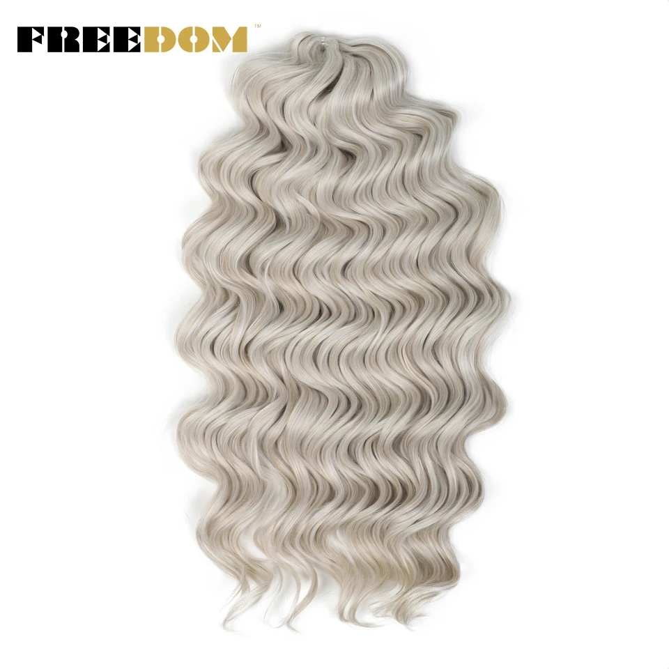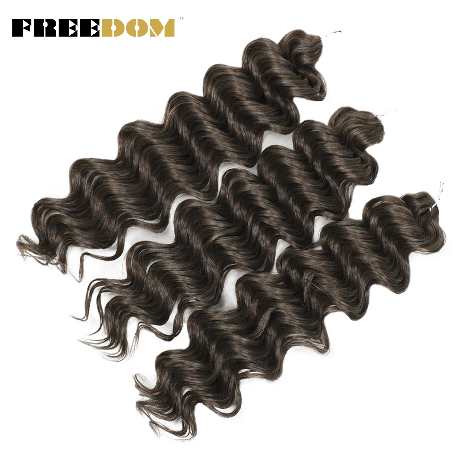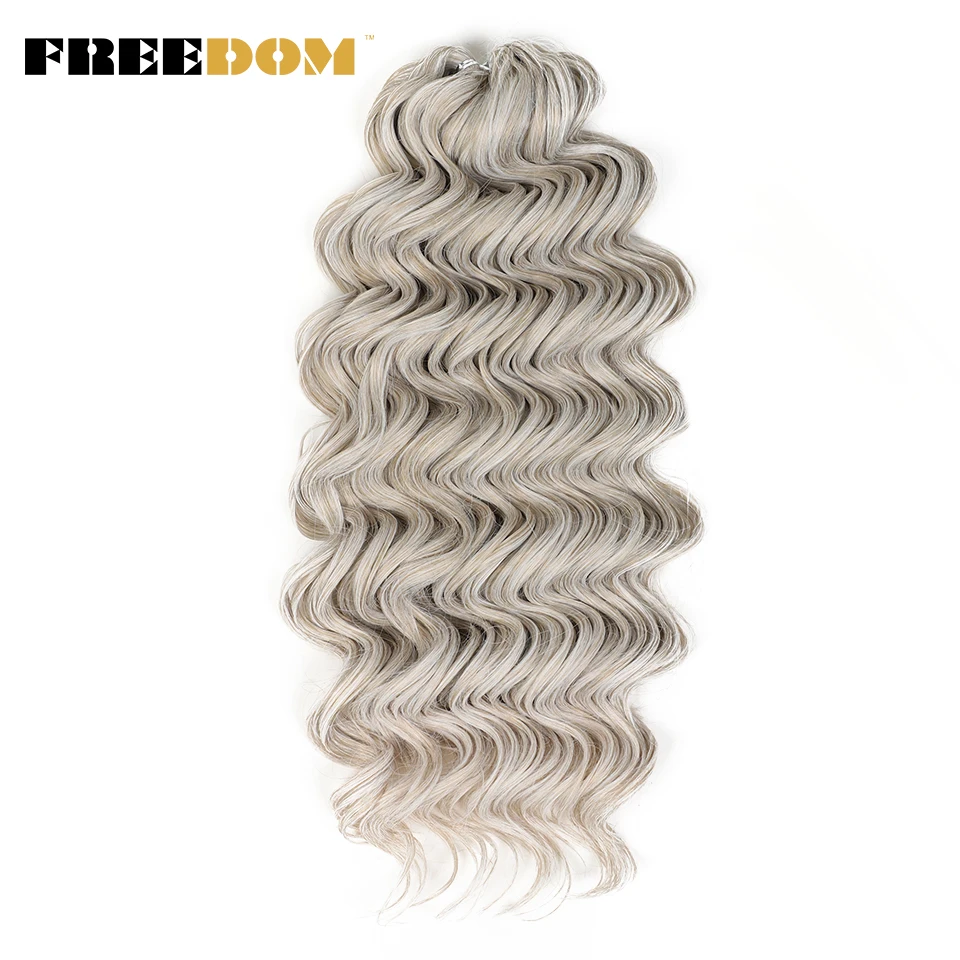 FREEDOM Synthetic Twist Crochet Curly Hair 24 Inch Deep Water Wave Braid Hair MANASI Ombre Blonde Brown Braiding Hair Extensions