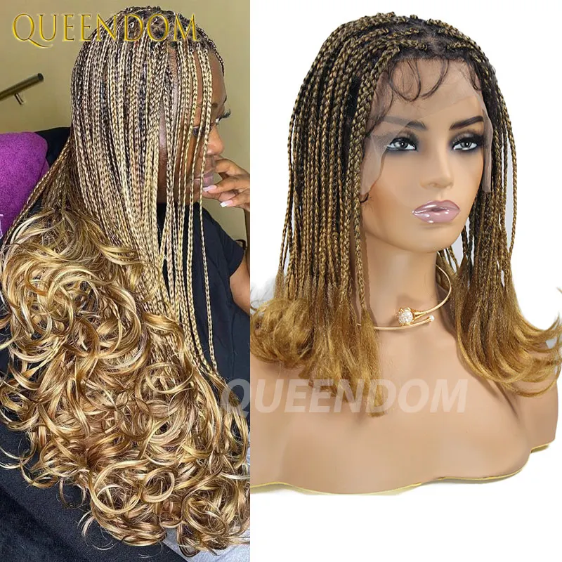 French Curl Braided Wig Box Braided Wigs For Black Women Crochet Hair Cornrow Ombre Blonde African Synthetic Short Braiding Wig