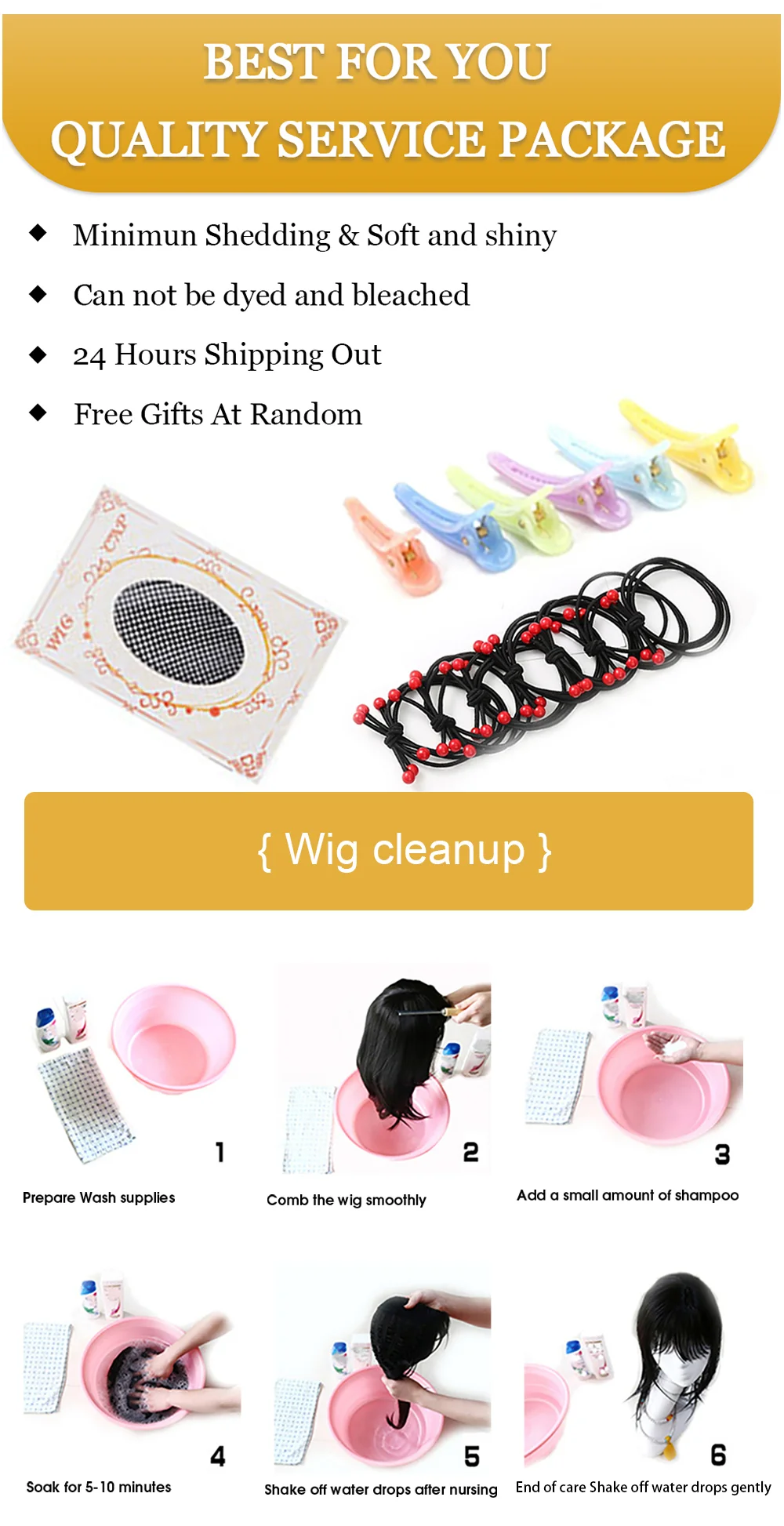 Material:Premium Quality Synthetic Hair, feels silky and soft like real human hair. Fit to all head sizes. Attached by a claw/crocodile clip with drawstring which will make you comfortable for all day Weight: 80G, Length:6"-8" Multiple Colors available in your choice as shown in