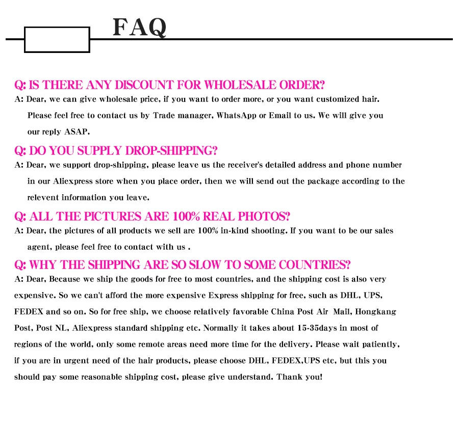 Welcome to Our Store,We are devoted to offer High Quality Products with Reasonable Wholesale Price.If you have any questions about the product, please contact customer service before placing an order.Generally, we need about 3 days to prepare the goods. Please pay more attention to local logistics information