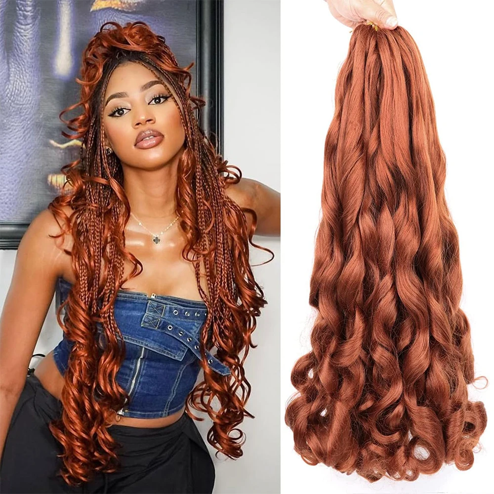 French Curly Crochet Braiding Hair Synthetic Loose Wave Spiral Curl Braiding Hair Ombre Pre Stretched Hair Extensions For Women
