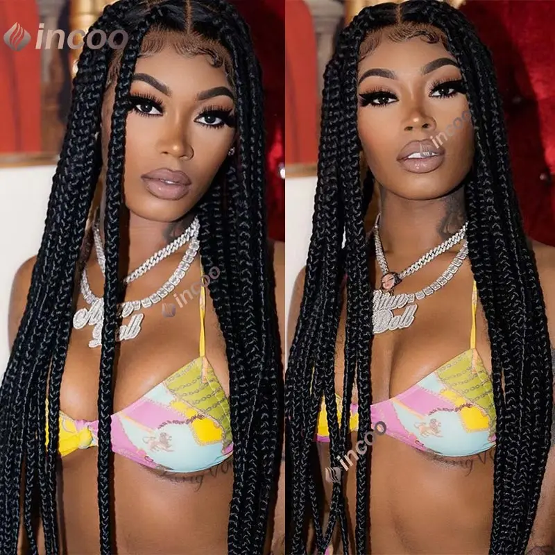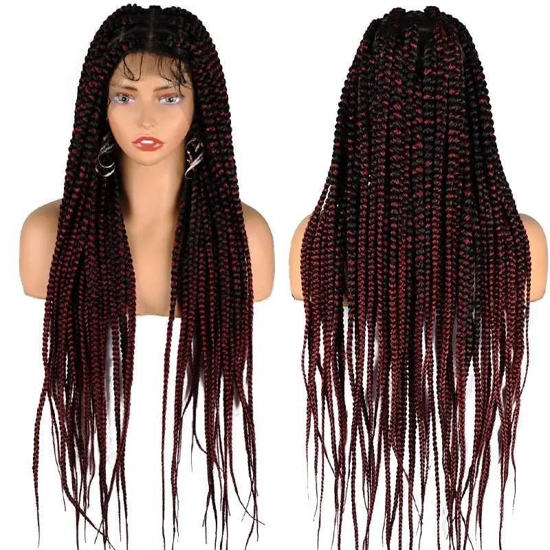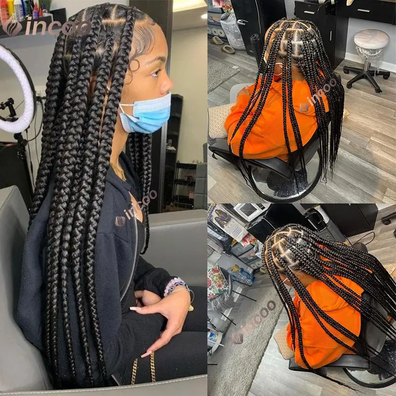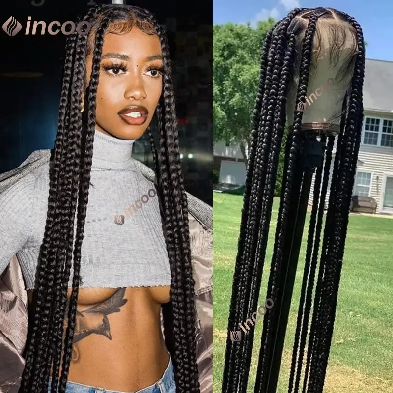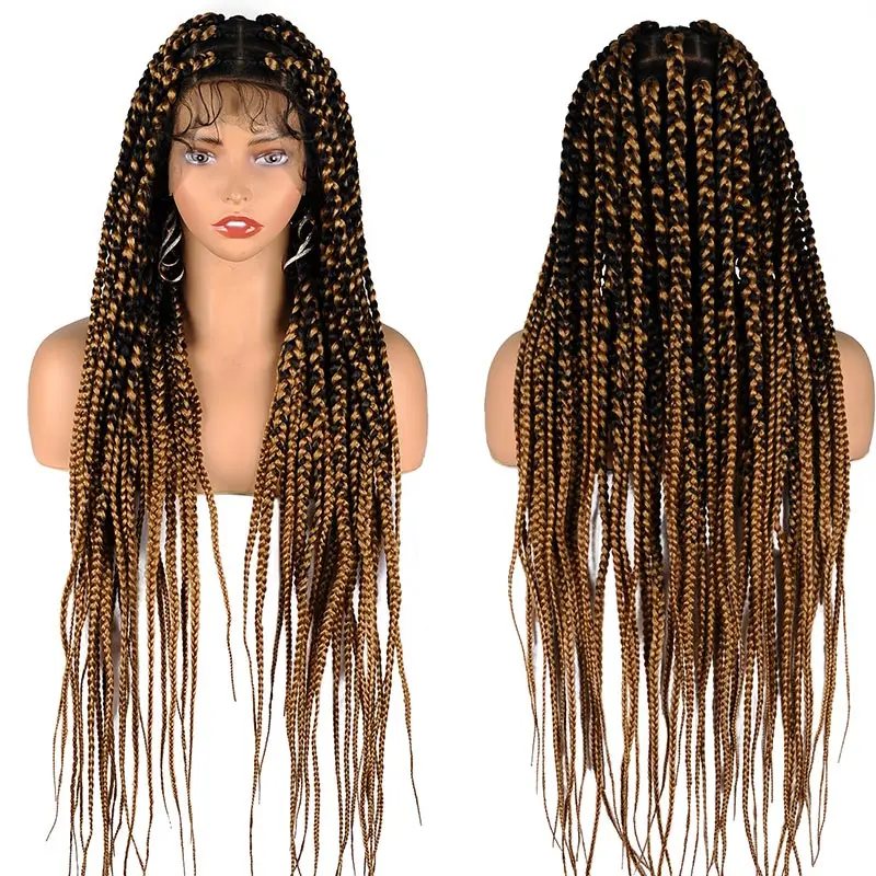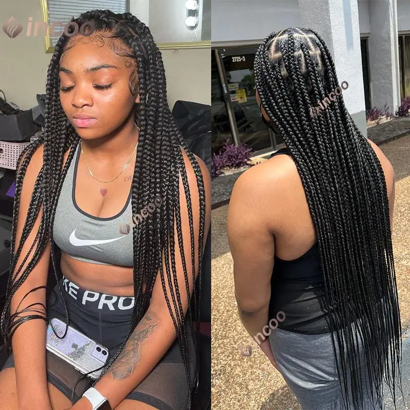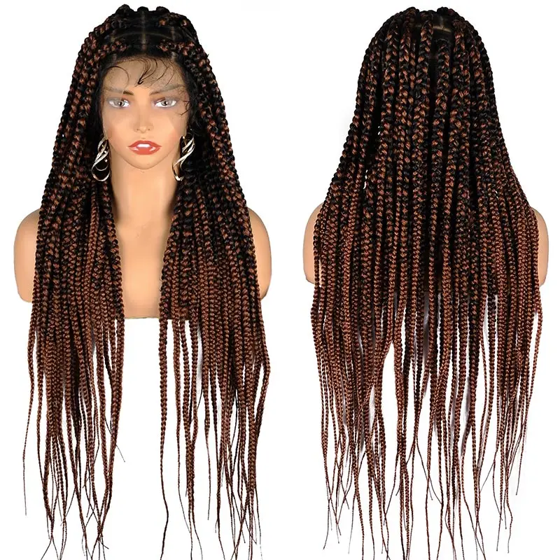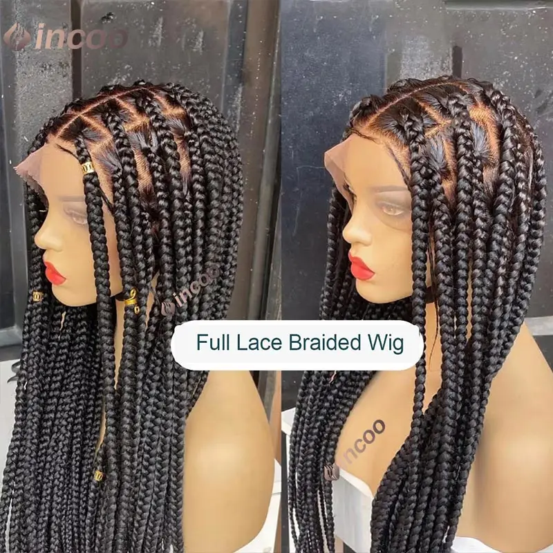Full Lace Braided Wigs Synthetic for Black Women Cornrow Braids Lace Front Wig Big Square Knotless Box Braids With Baby Hair 36