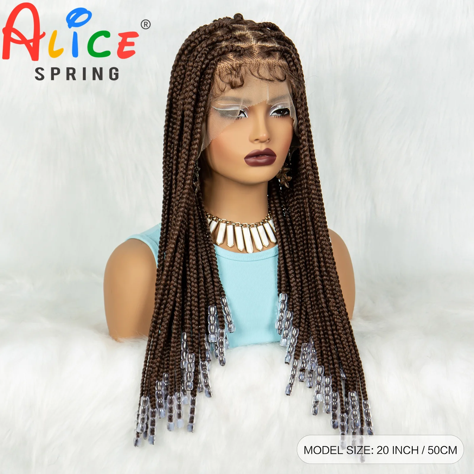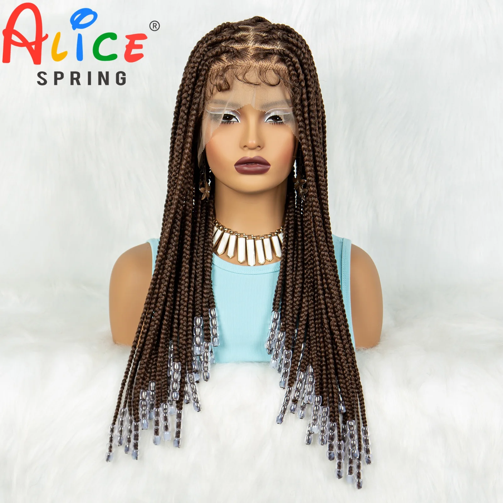 Full Lace Braided Wigs Synthetic Lace Front Braided Wigs with Beads Knotless Cornrow Twist Braids Wigs with Baby Hair for Women