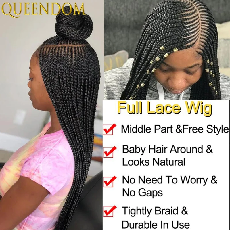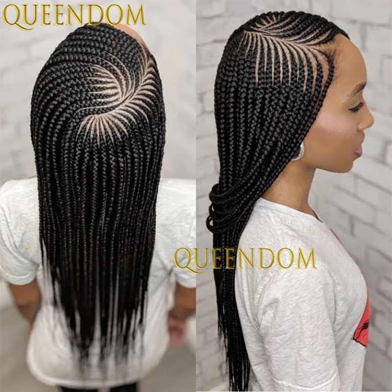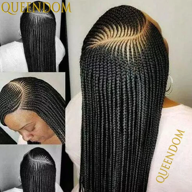 Full Lace Frontal Synthetic Cornrow Braided Lace Wigs 36 Inch Afro Goddess Knotless Braid Wig New Arrival Prepluck Baby Hair
