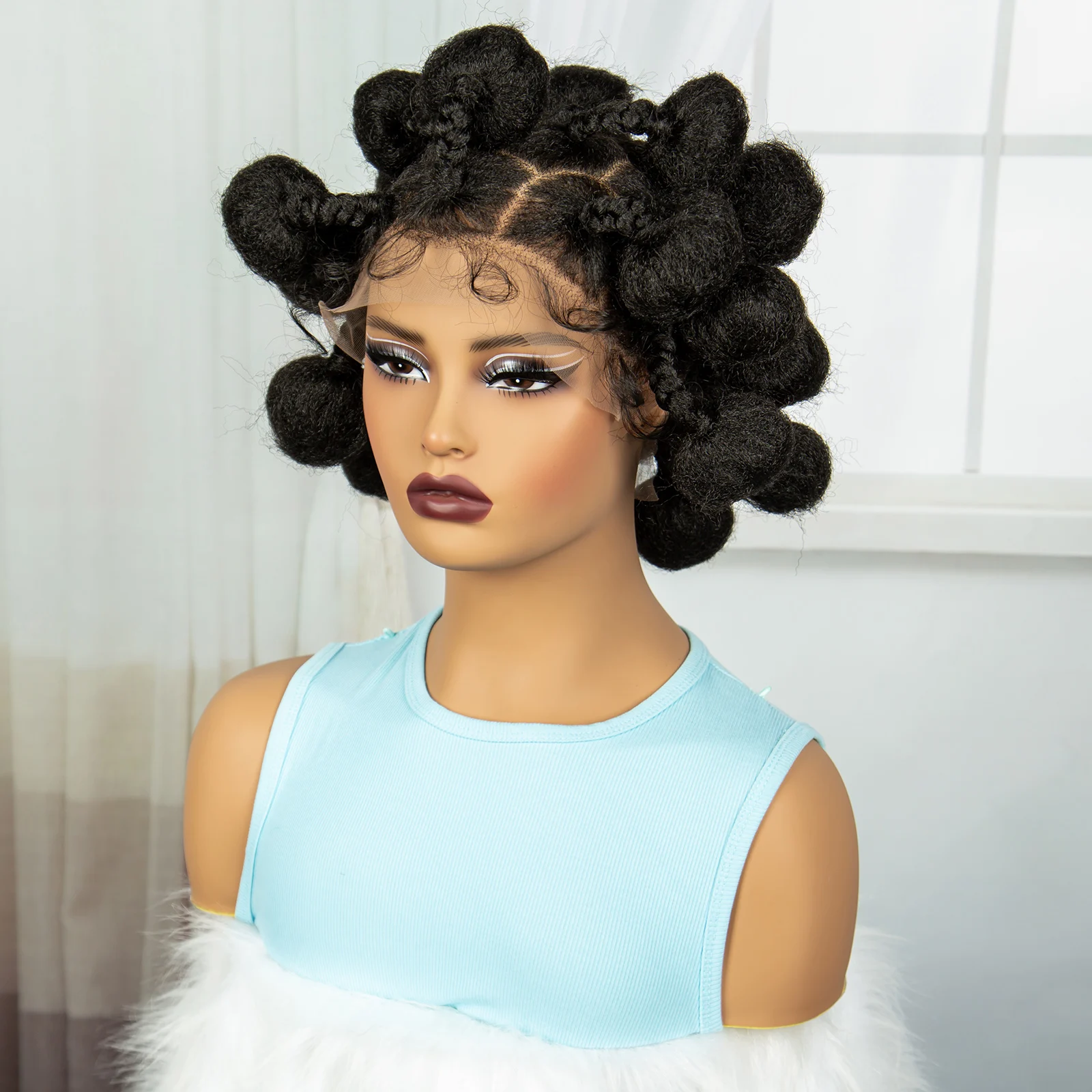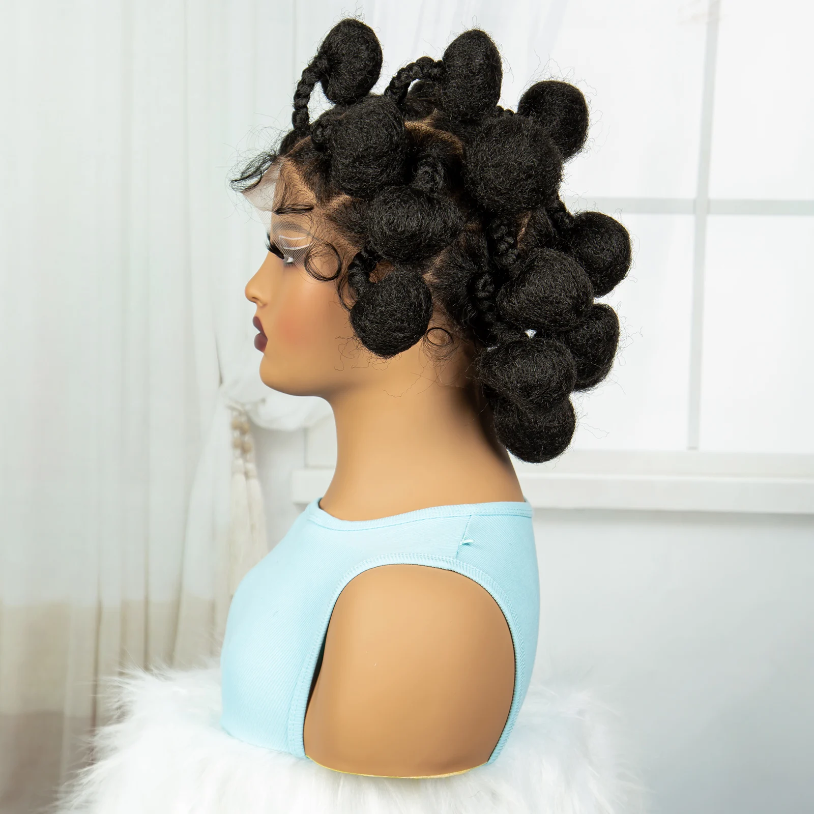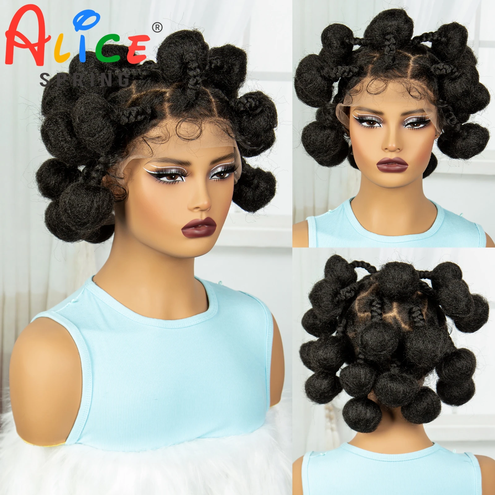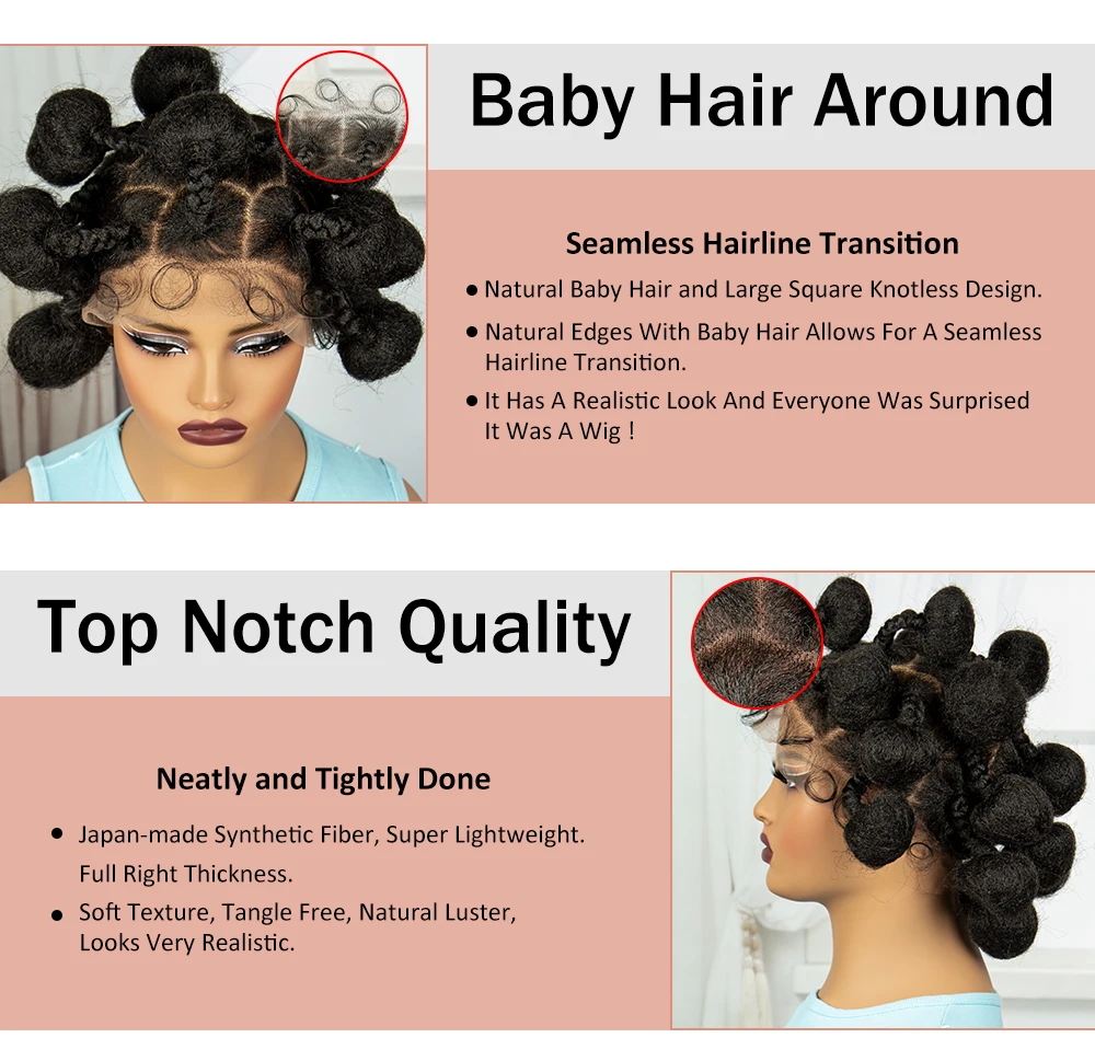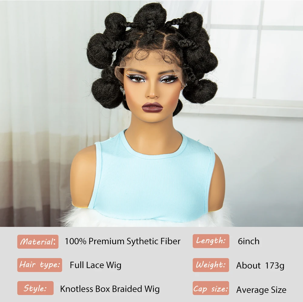 Full Lace Handmade Bantu Braided Wigs Synthetic knotless Braided Lace Wig for Black Women Short Braiding Hair Wig with Baby Hair