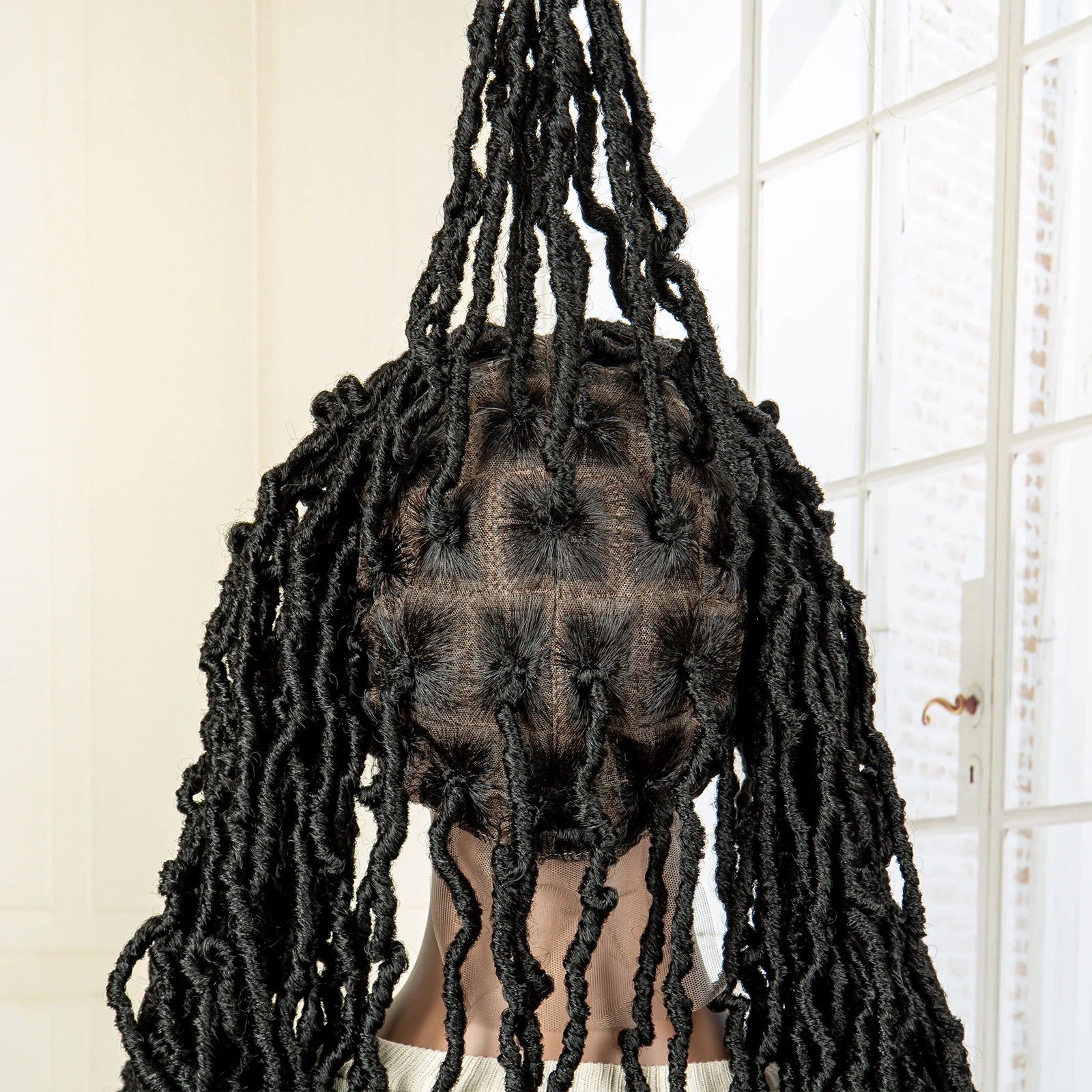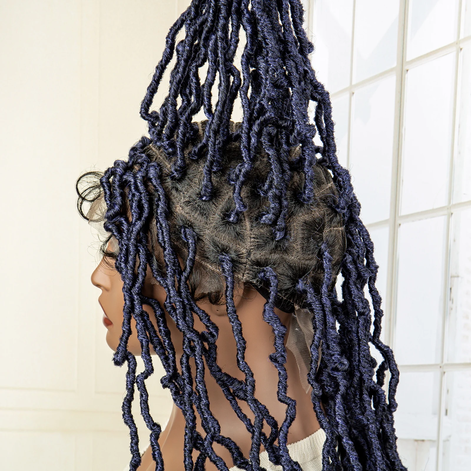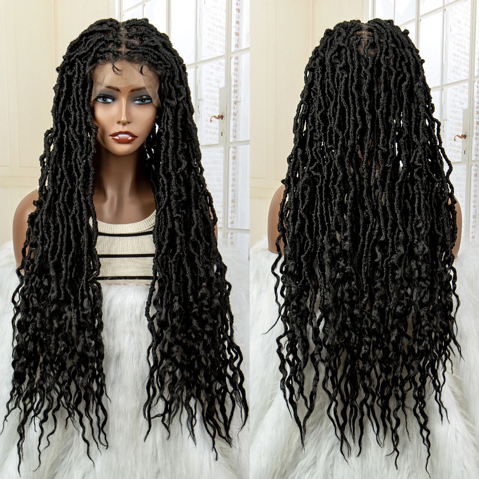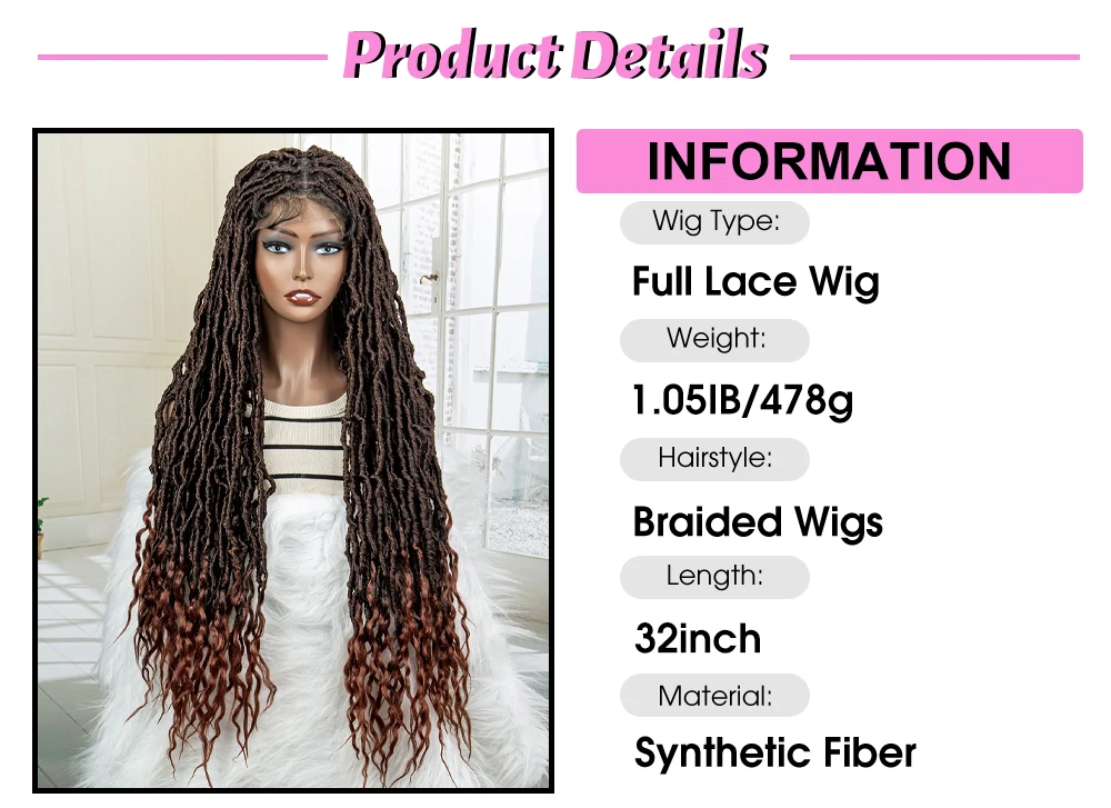Full Lace Knotless Braided Wigs Synthetic Box Dreadlocks Wigs for Black Women with Baby Hair 32 Inches Long Hair Wig Wave Ends