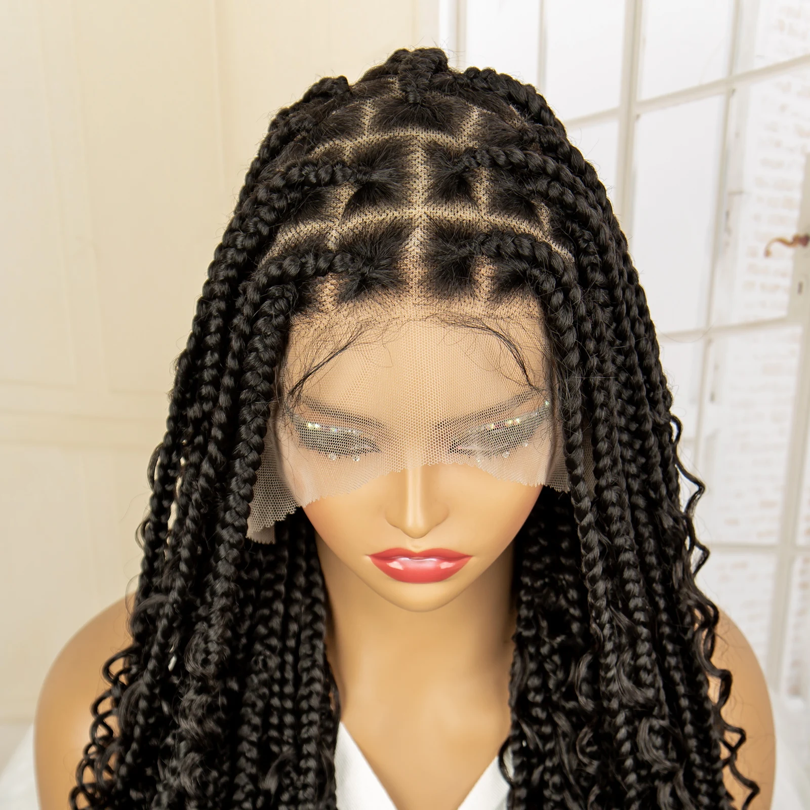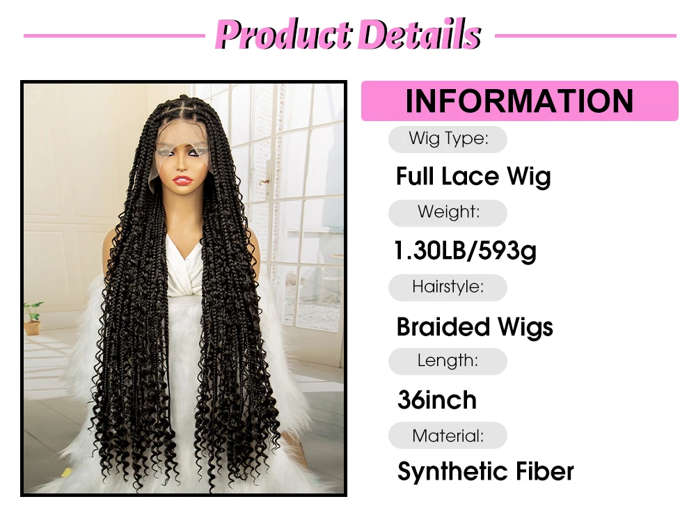 Full Lace Synthetic Boho Braided Wigs with Baby Hair Long Curly Hair Wig with Braids 36 Inches Braiding Wig for Black Women