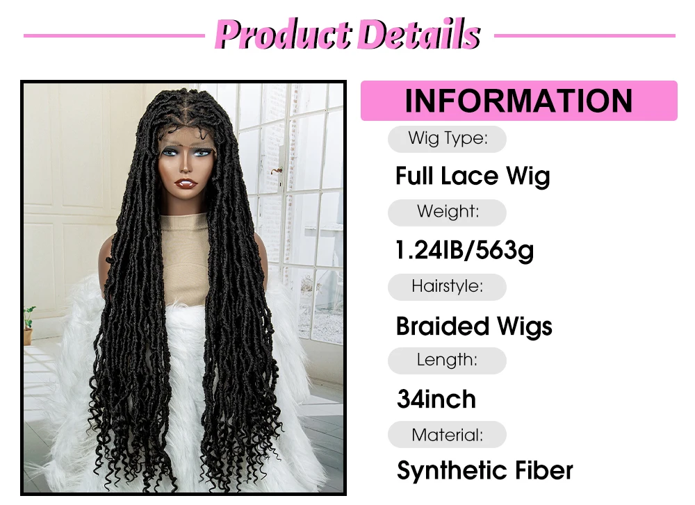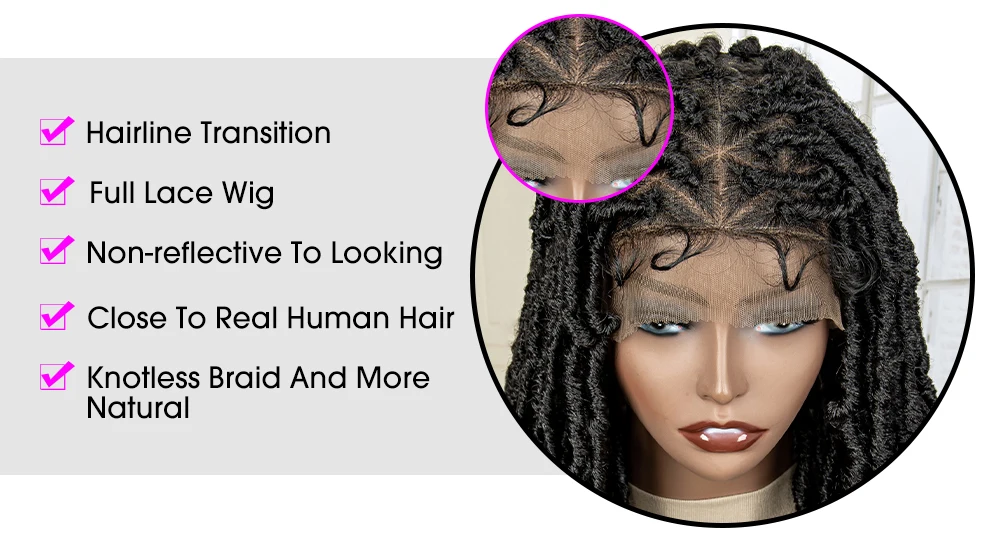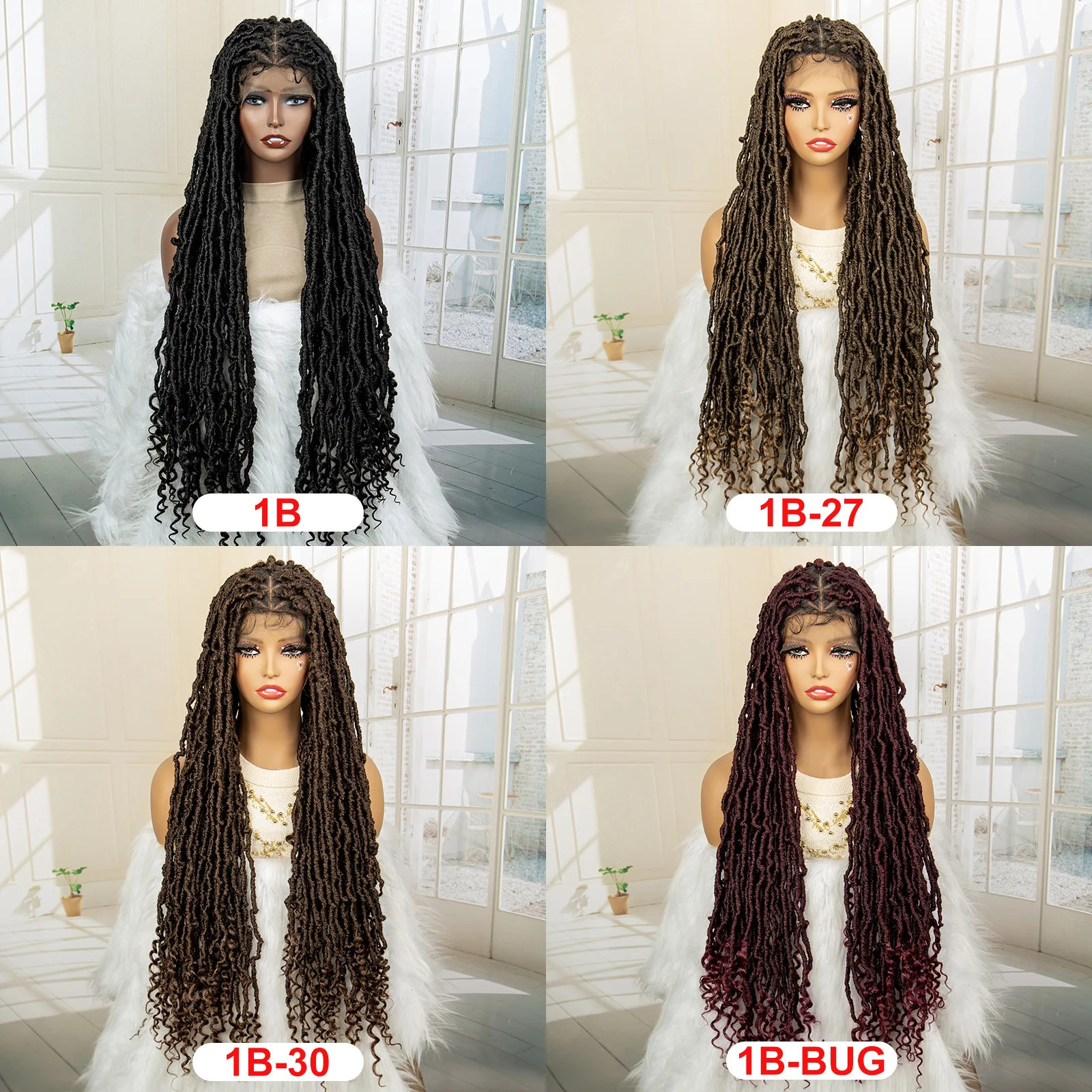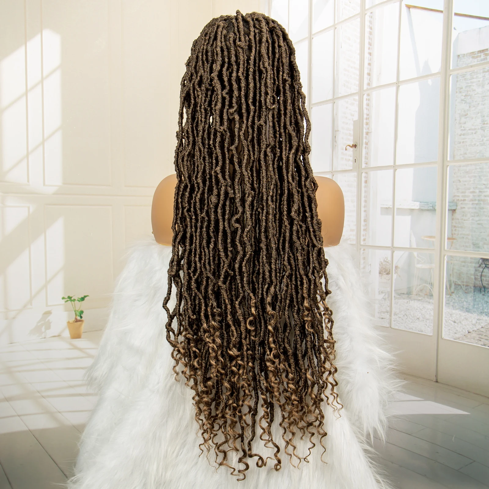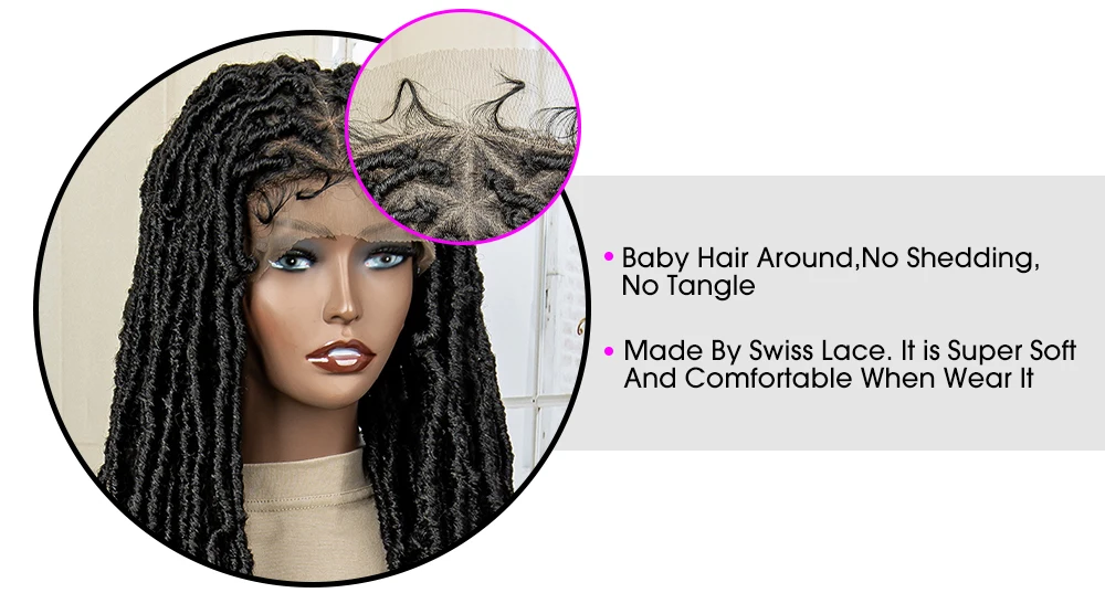 Full lace Wig Synthetic Braided Wig Lace Front Braided Wig 34 Inch African Wig with Baby Hair Long Dreadlocks Wig 1B/30 Color