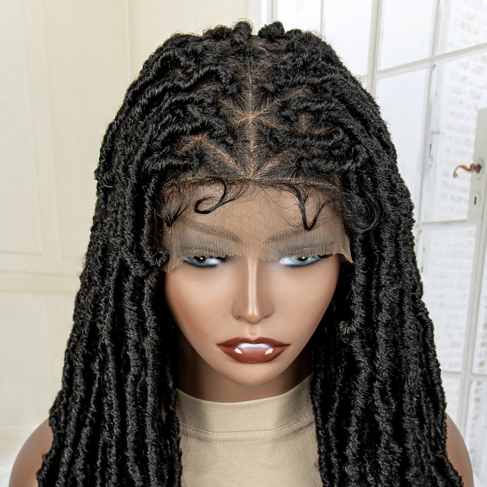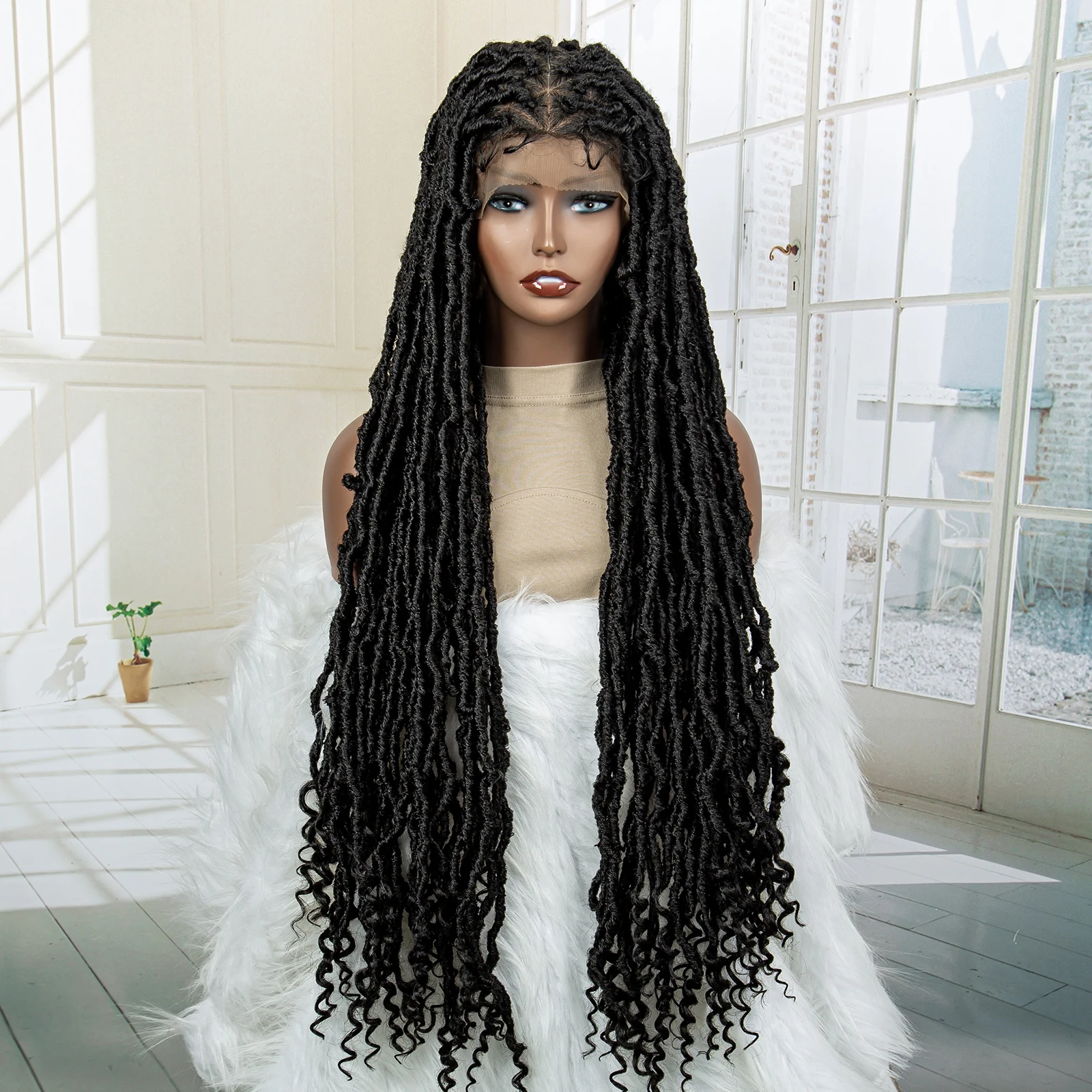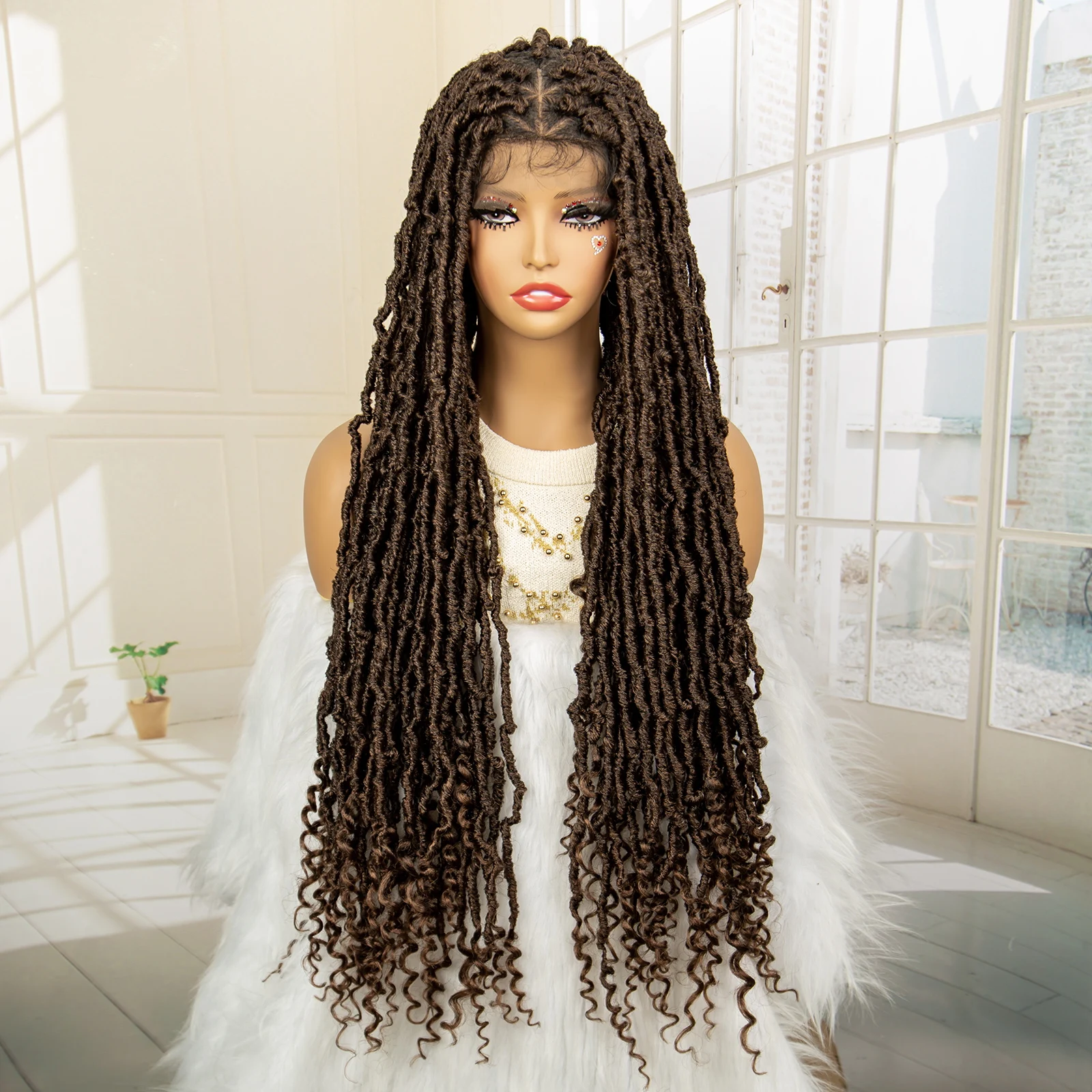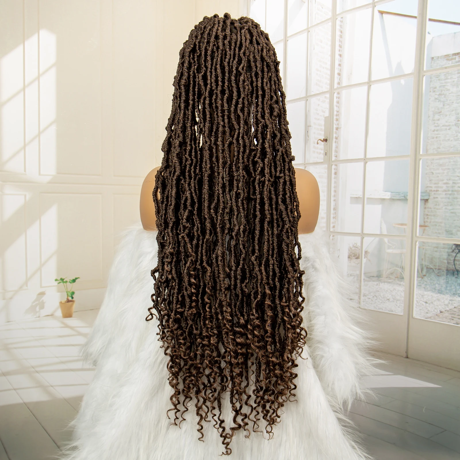 Full lace Wig Synthetic Braided Wig Lace Front Braided Wig 34 Inch African Wig with Baby Hair Long Dreadlocks Wig 1B/30 Color