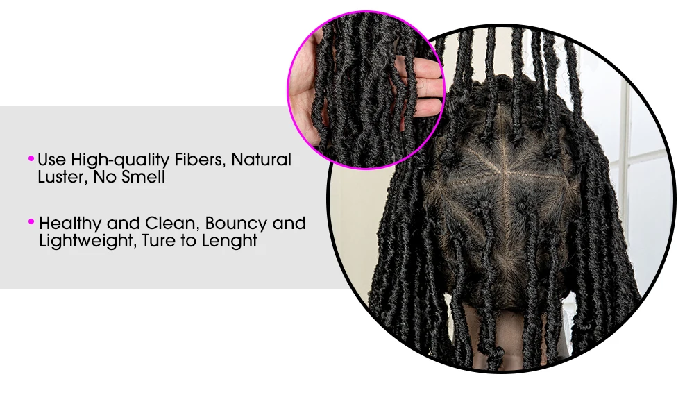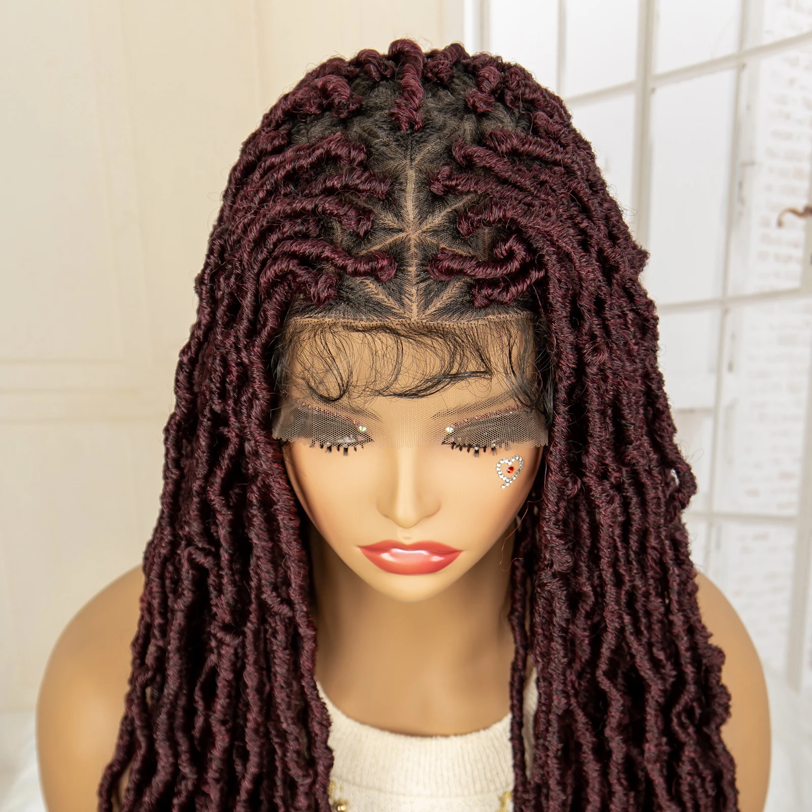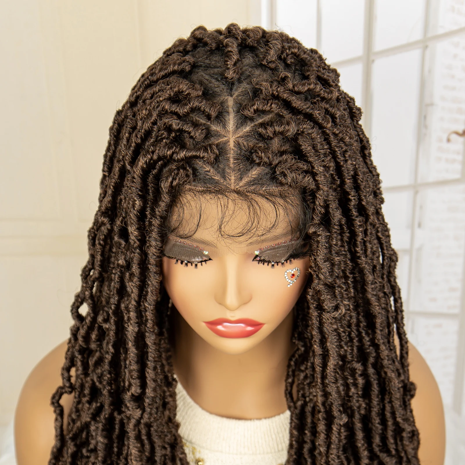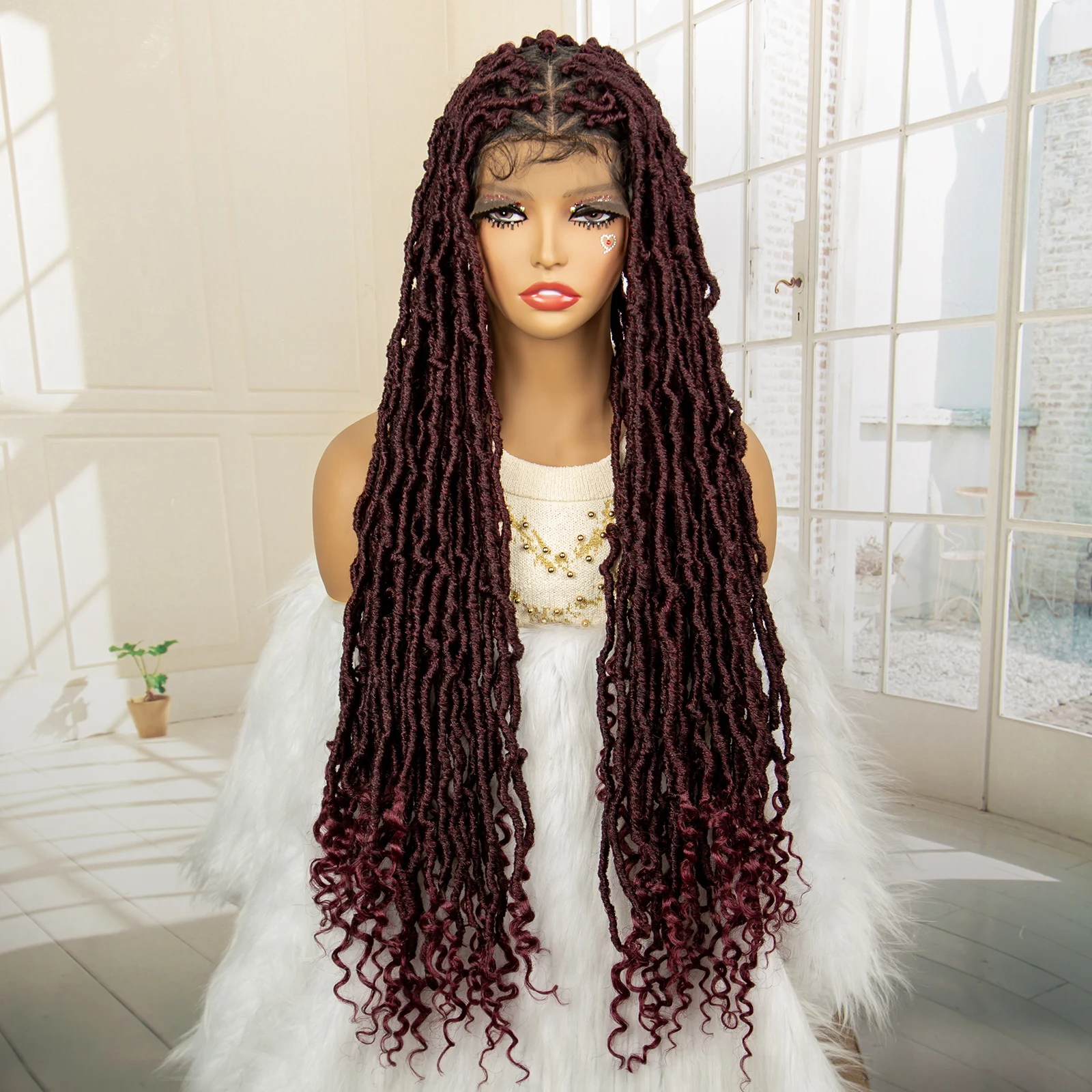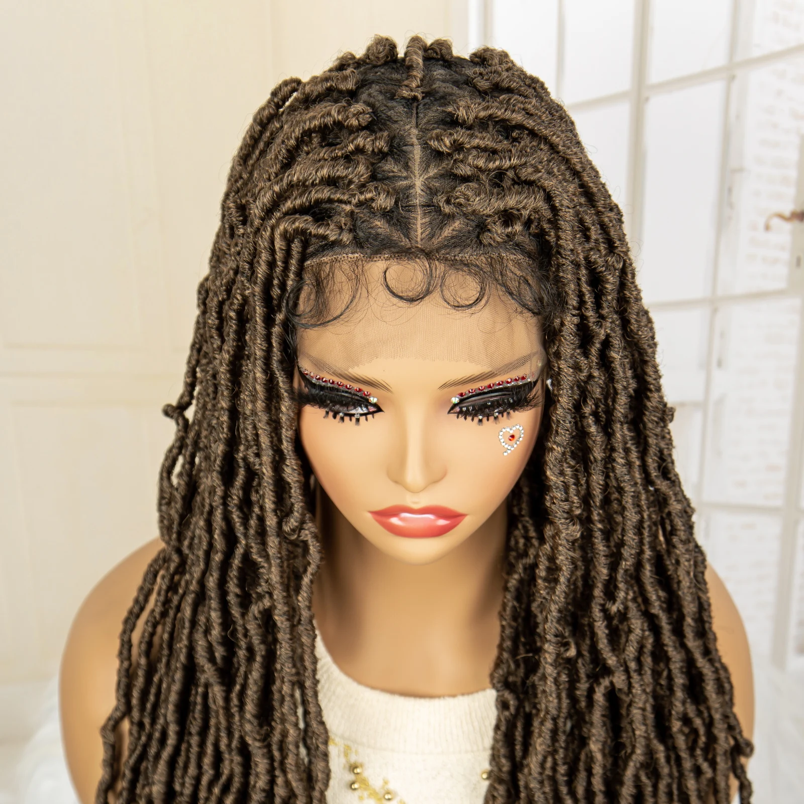 Full lace Wig Synthetic Braided Wig Lace Front Braided Wig 34 Inch African Wig with Baby Hair Long Dreadlocks Wig 1B/30 Color