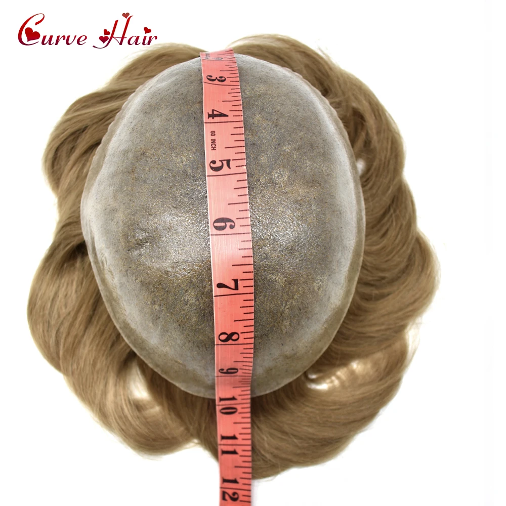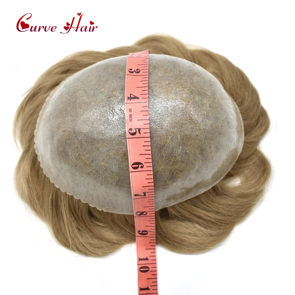 Full PU Men Hair Prosthesic 0.1-0.12mm Silicone Durable PU Capillary Toupee for Men Human Hair System 120% Density Mens toupee