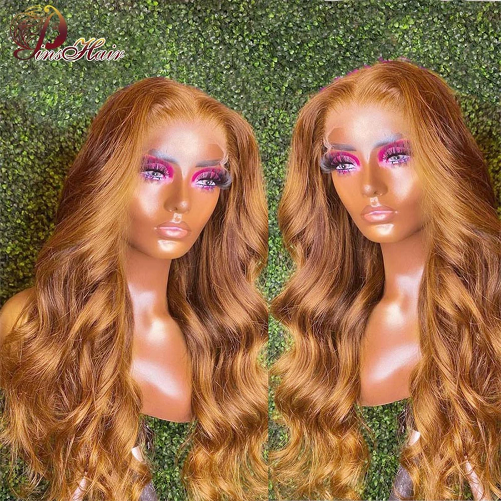 Ginger Brown 13x6 Lace Front Human Hair Wigs Body Wave Lace Frontal Wig #30 Blonde Color Lace Front Wig For Women Remy Hair 34''