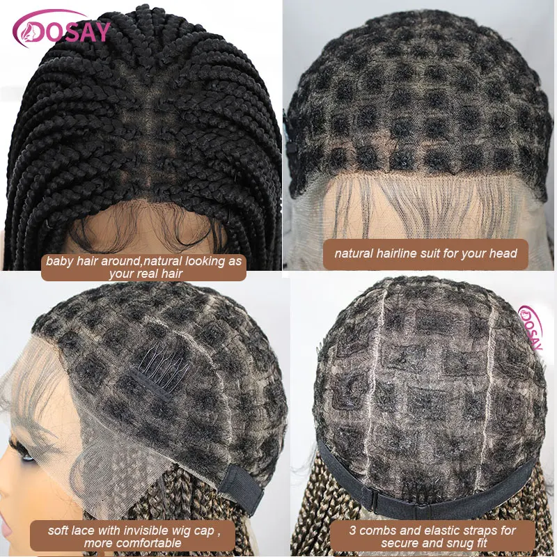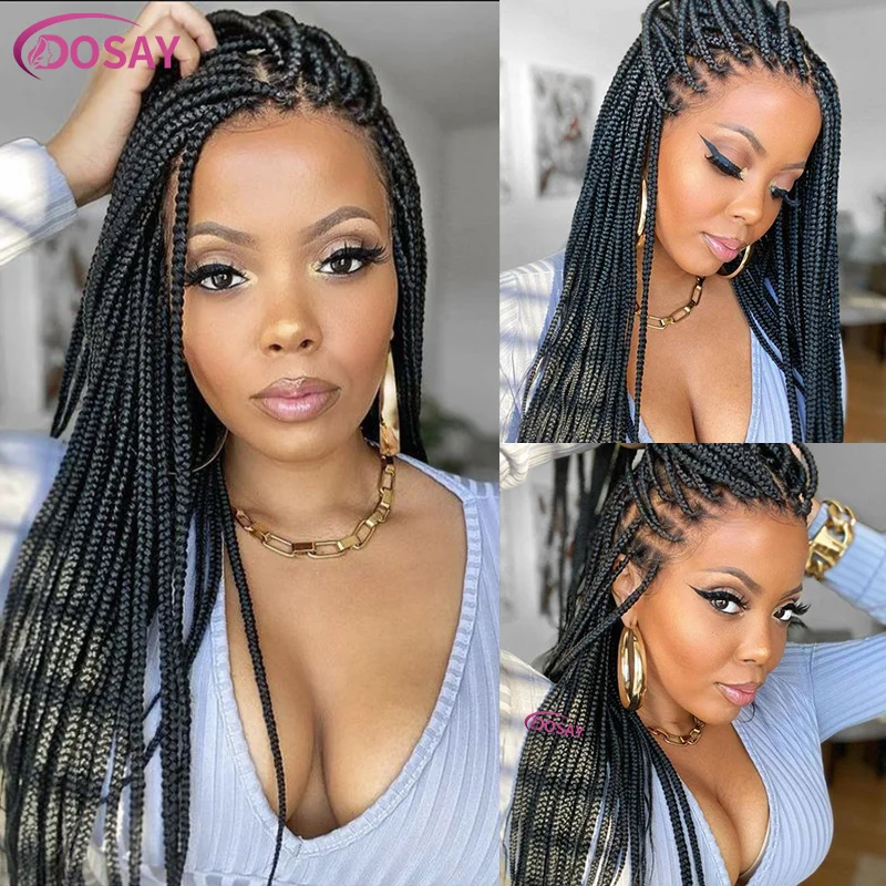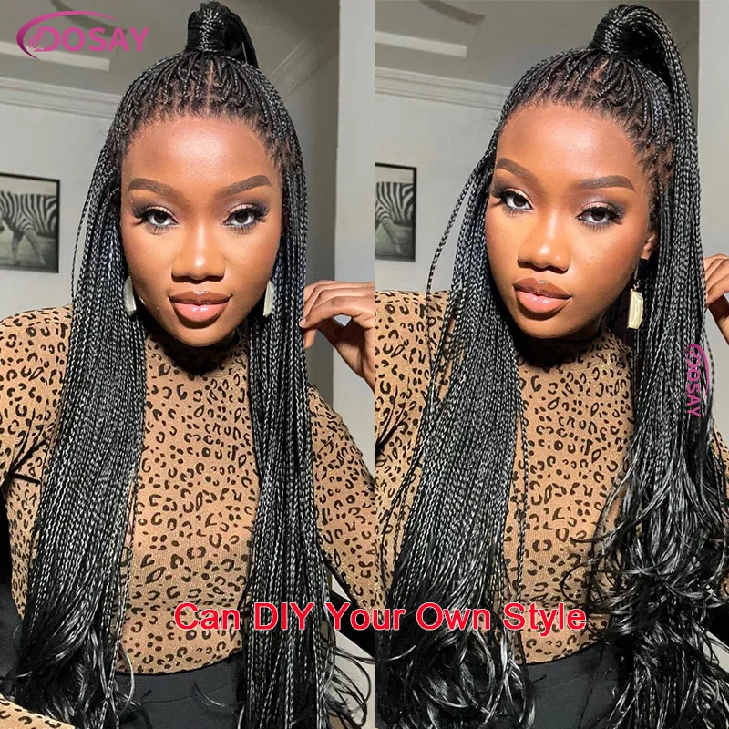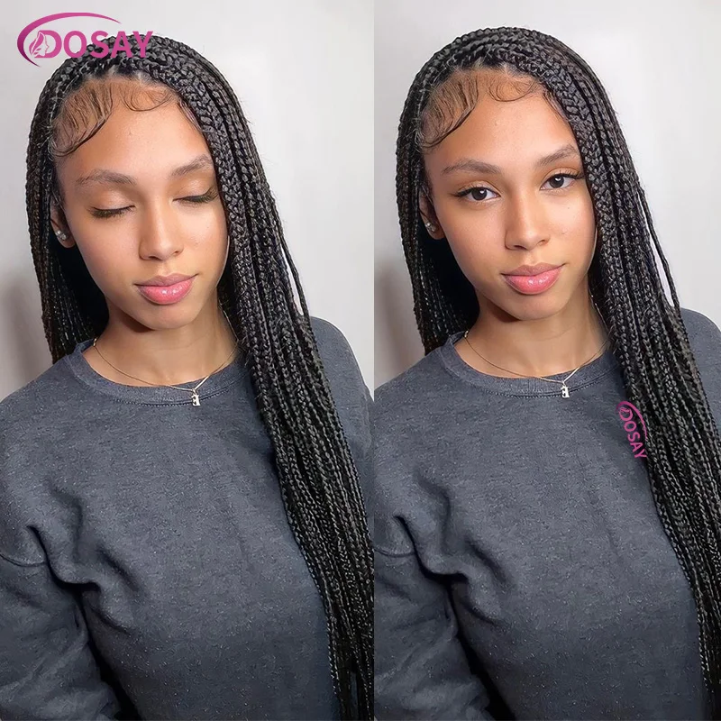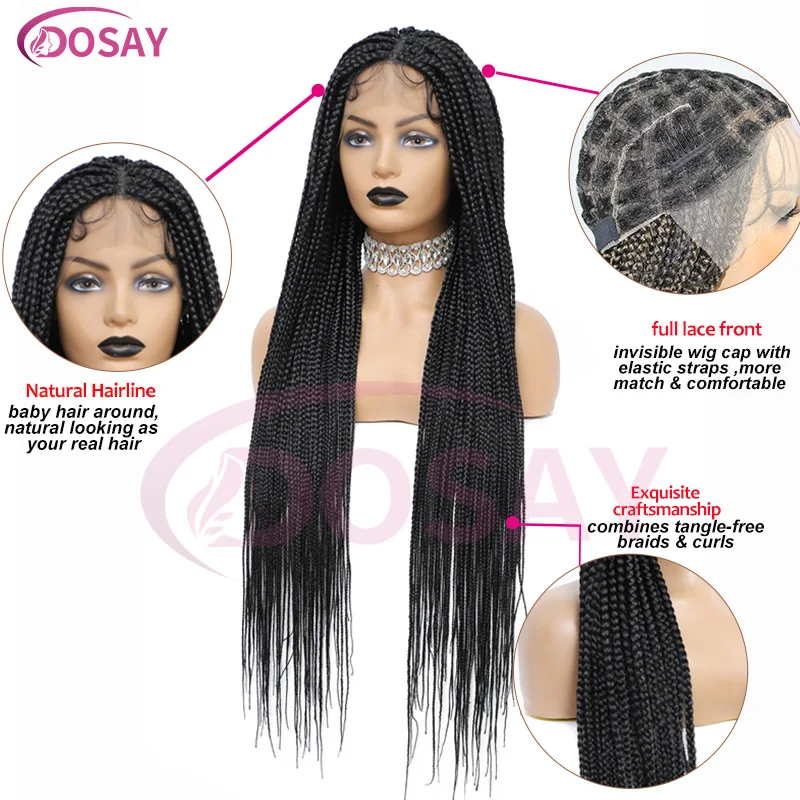 Glueless Square Box Braids Wig Long 36 Inch Synthetic Full Lace Braided Wig Natural Black Three Cornrows Braiding Hair For Women