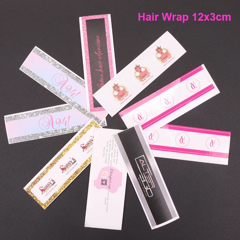 1.Hair Wrap 200Pcs With Your Own Logo , Size 12x3Cm , Self-adhesive Sticker For Hair Bundles ;